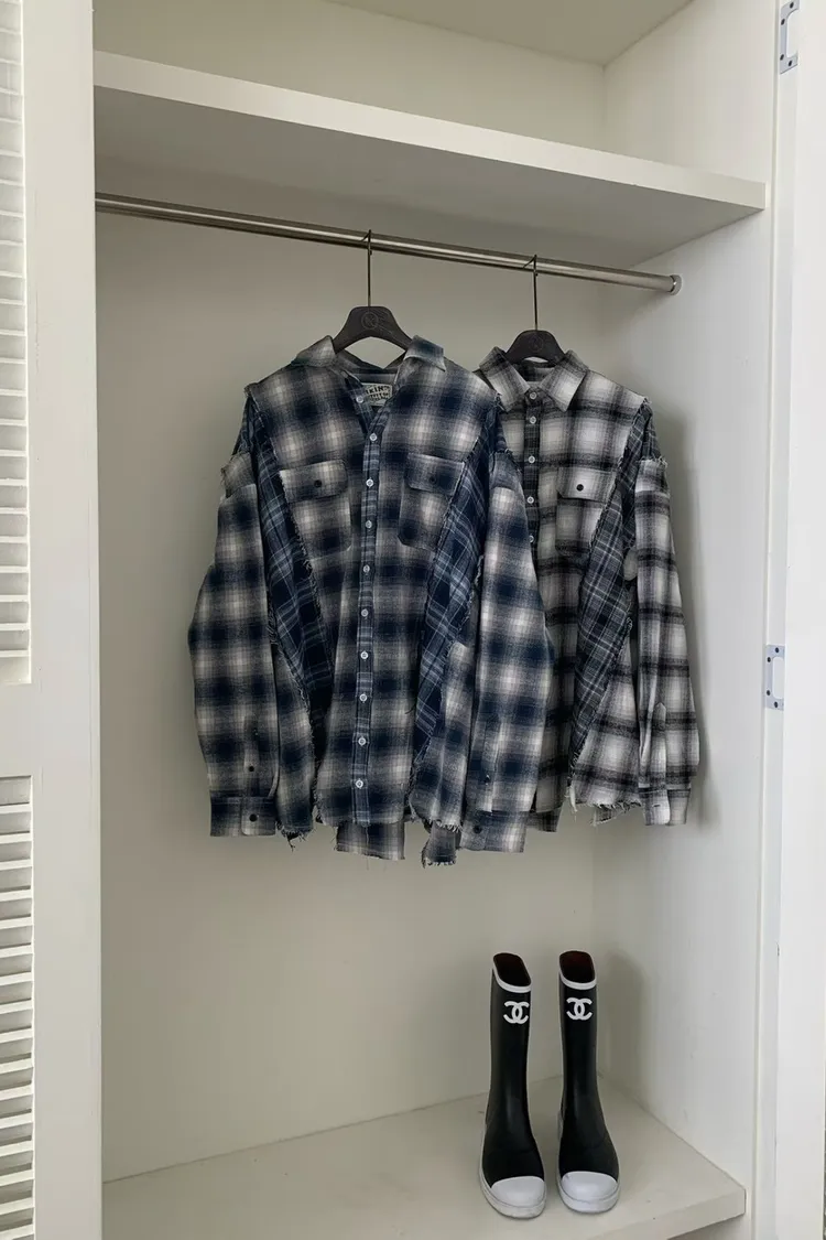 棉 拚色抽鬚 隨性設計 率性帥氣 可上衣可外套 視覺造型十足