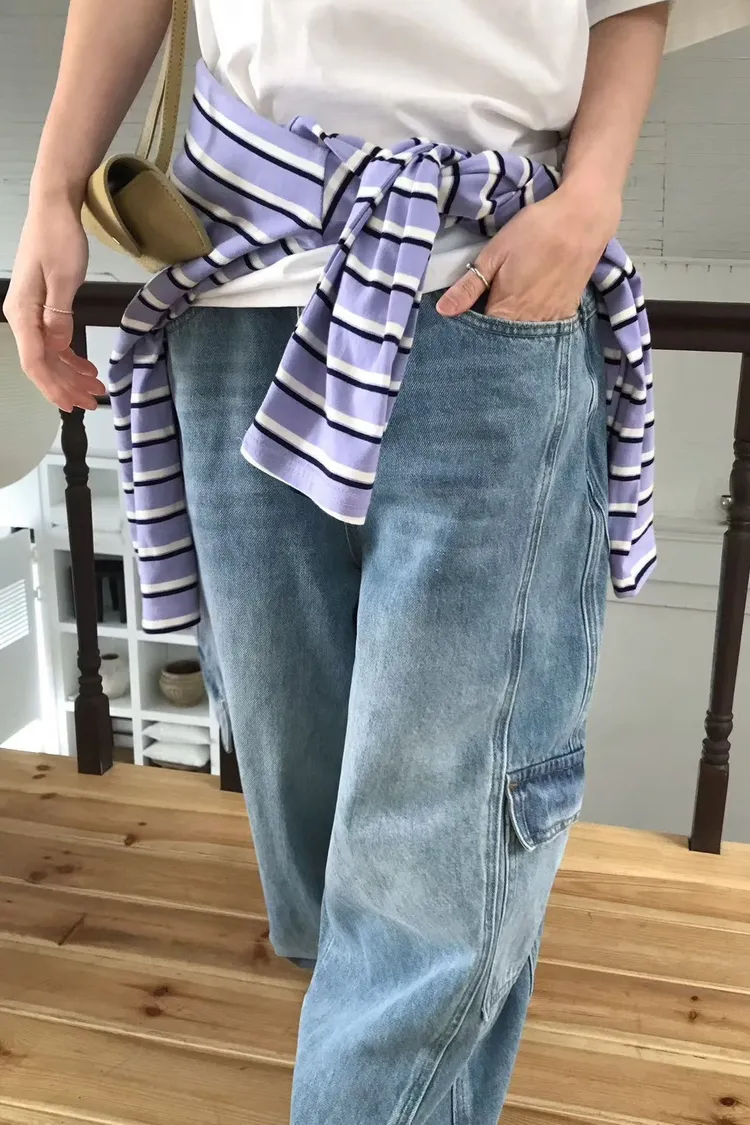 淺藍=牛仔,白和深藍是棉質,有口袋
