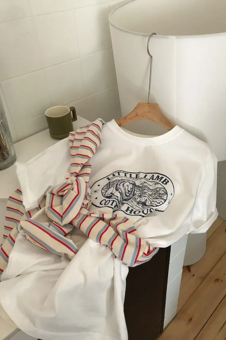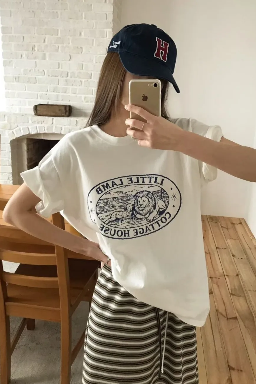 棉 薄款透氣 滑順舒適 圖章橢圓 可愛獅子小羊