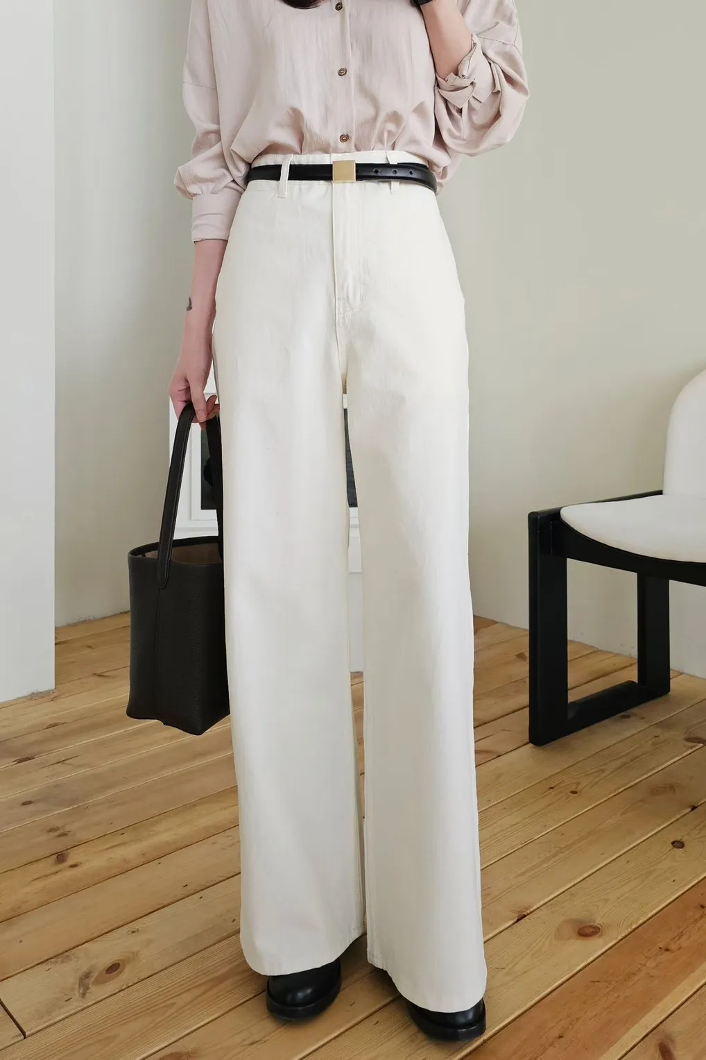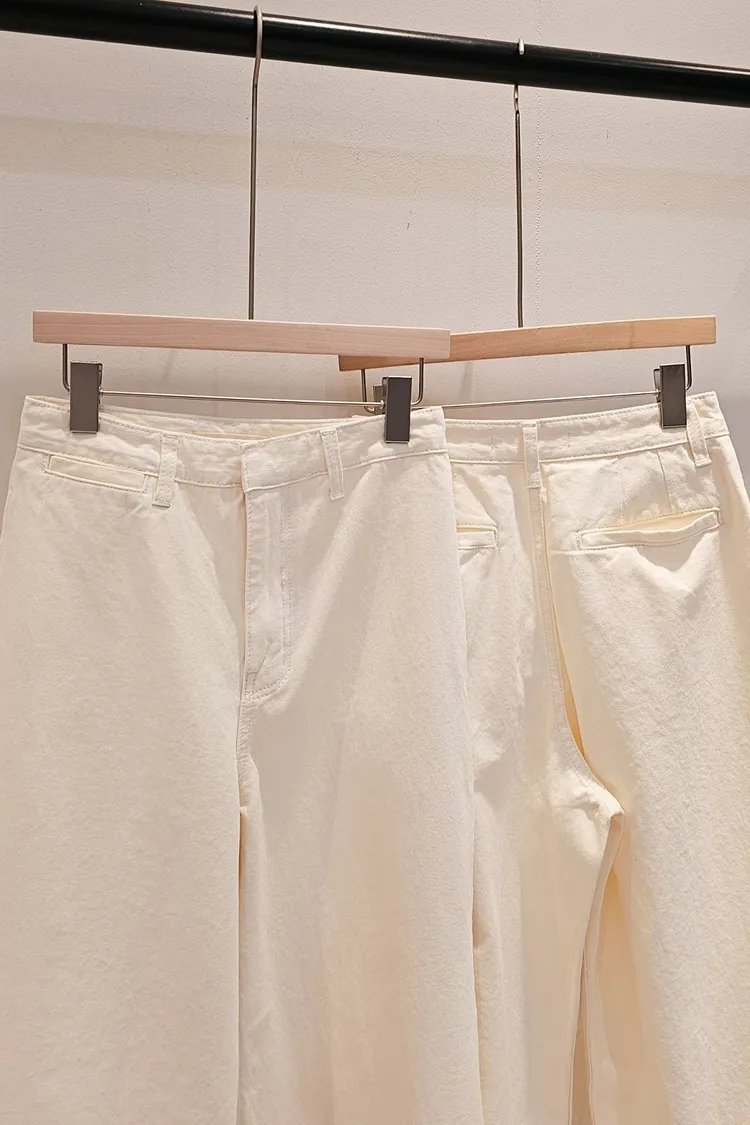 精梳棉 中腰設計 直筒長腿修飾 細緻支數面料 暗釦有口袋 四季款厚度