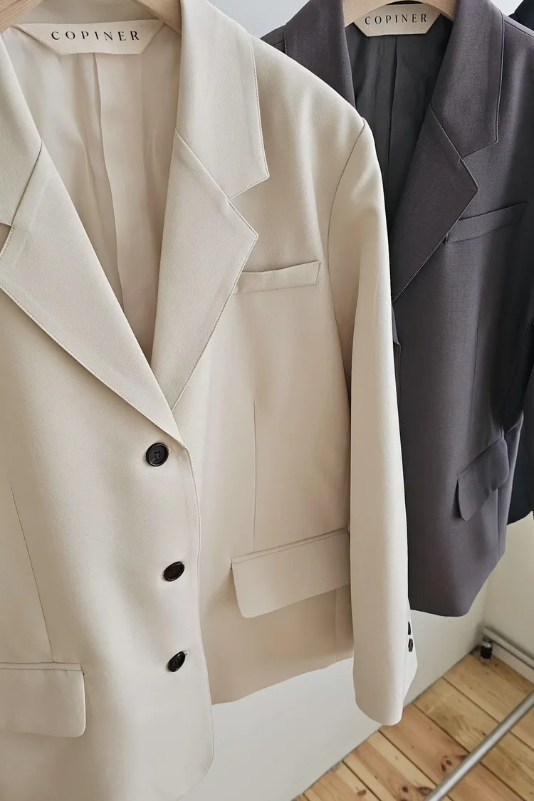西裝面料 時髦精緻版型 觸感細緻 薄而挺版型 微微薄墊肩