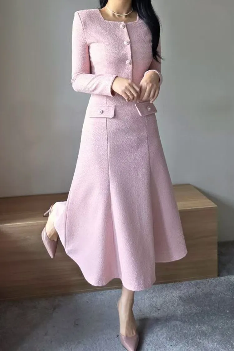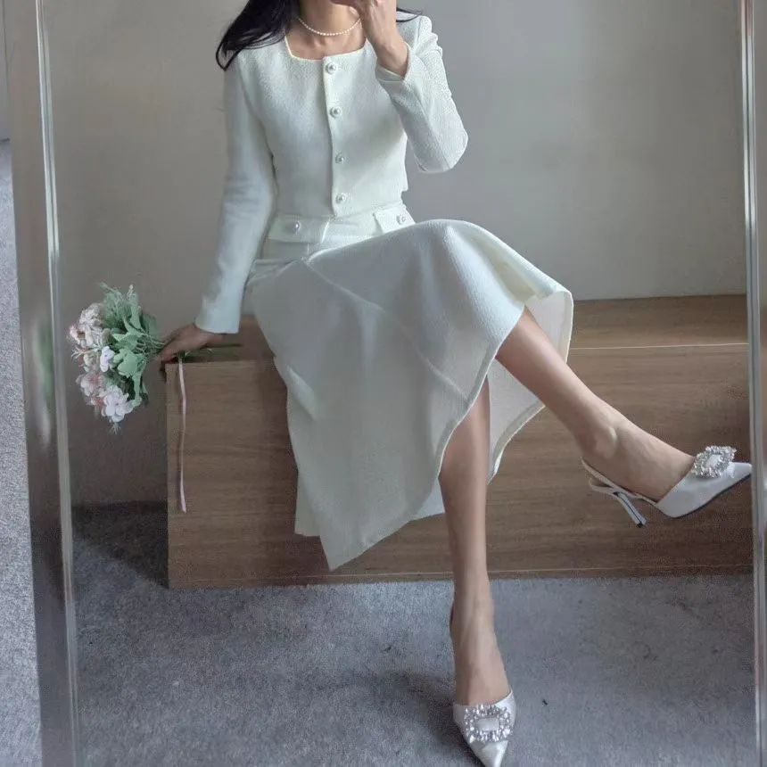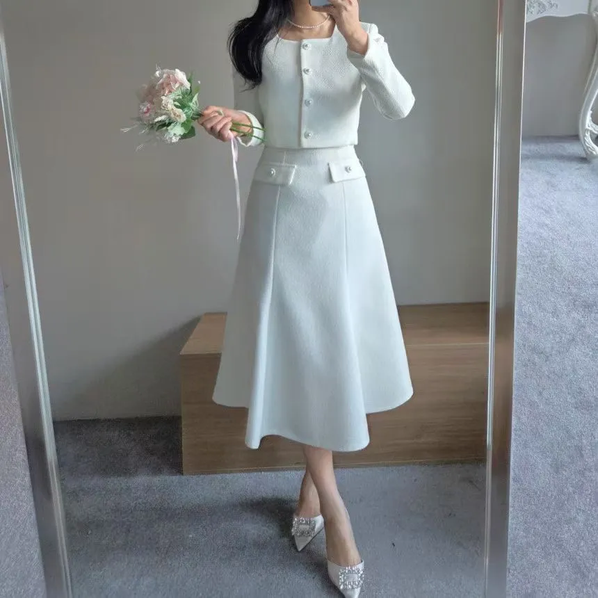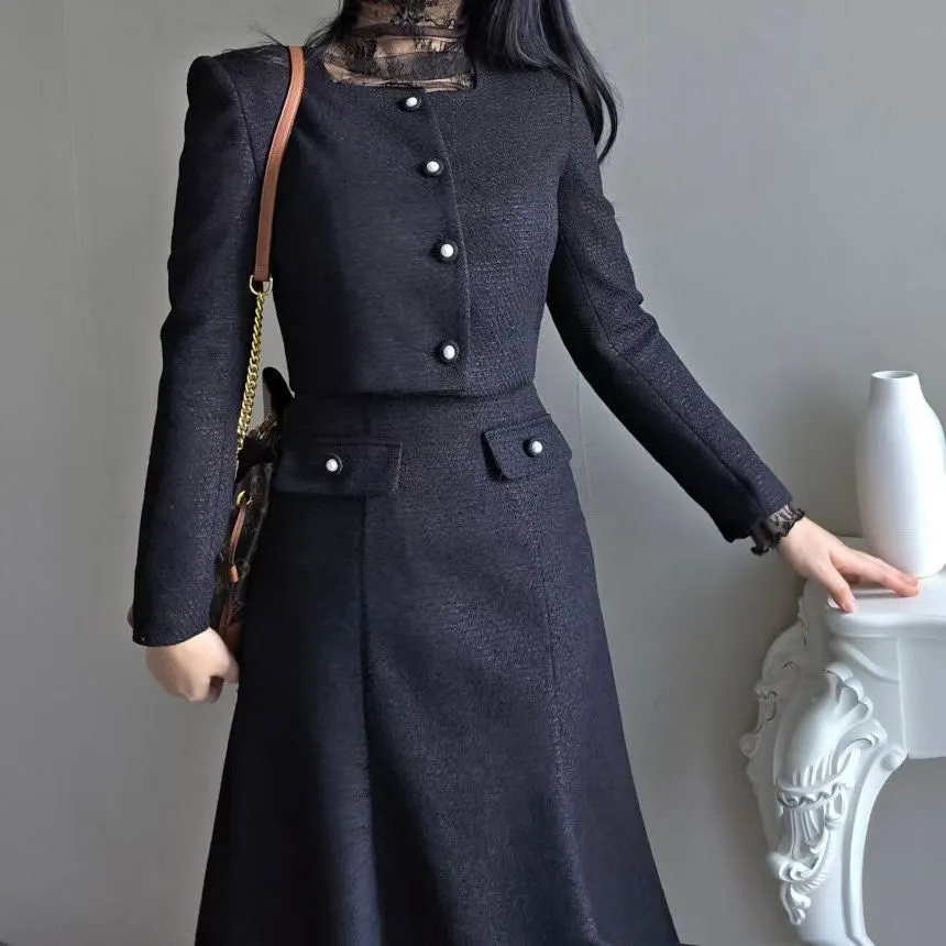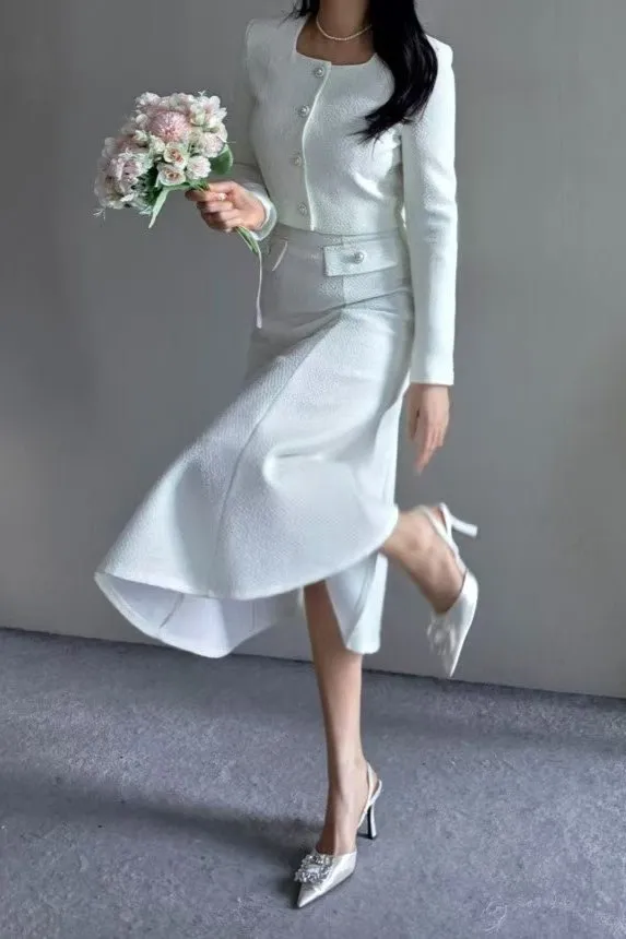 棉+聚酯 珍珠釦 小香風典雅面料 細閃銀絲線 短版好比例 珍珠釦