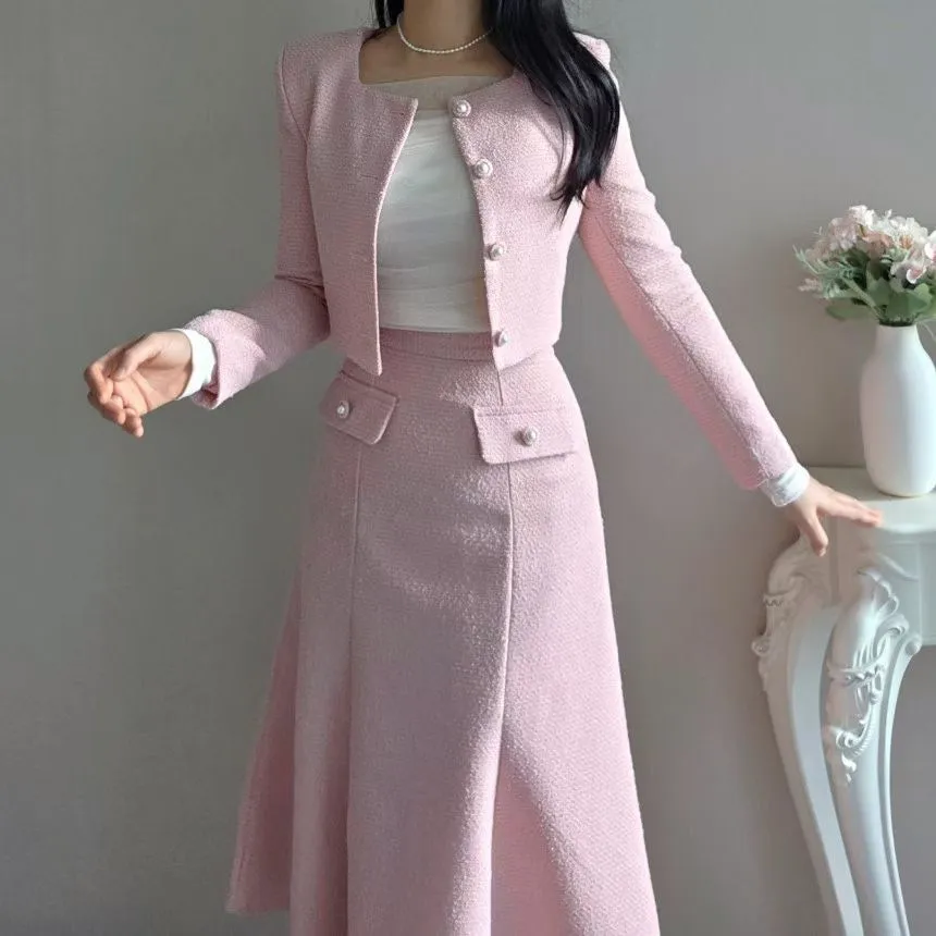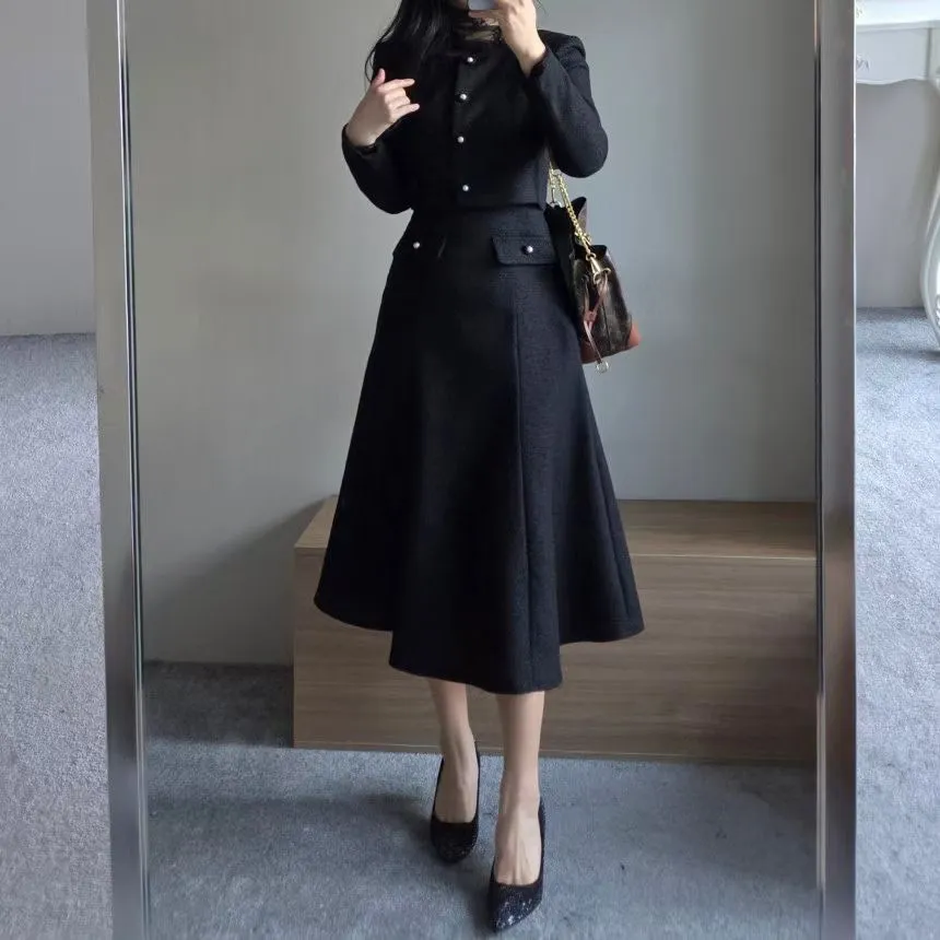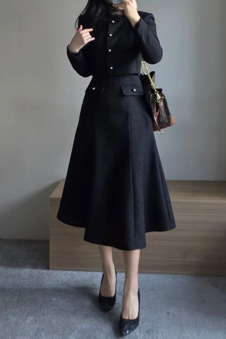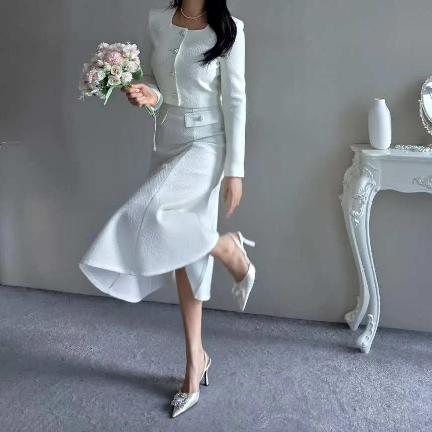 棉+聚酯 小香風典雅面料 細閃銀絲線 微高腰版 面料偏薄款 側拉鍊穿脫