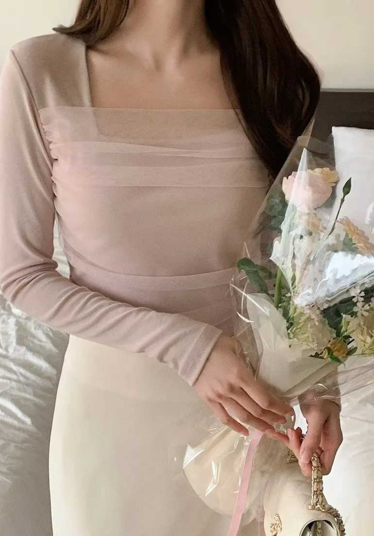 人造絲+彈力 推薦款 舒適親膚 有彈性 視覺胸型up 網紗不刺癢