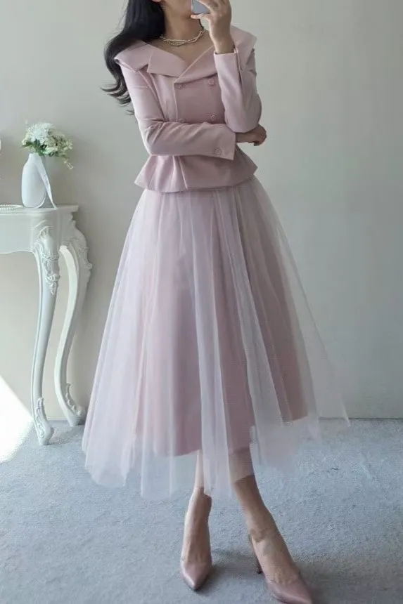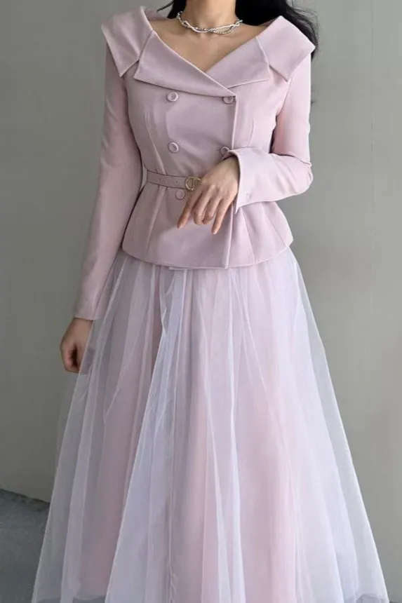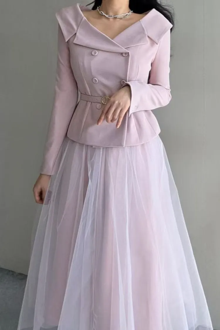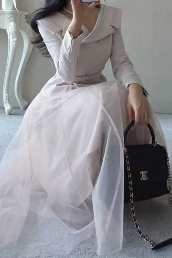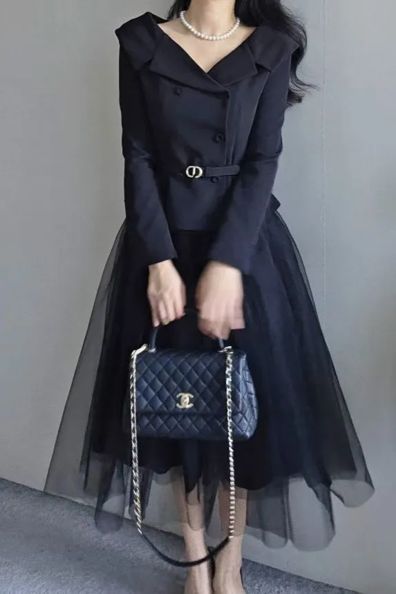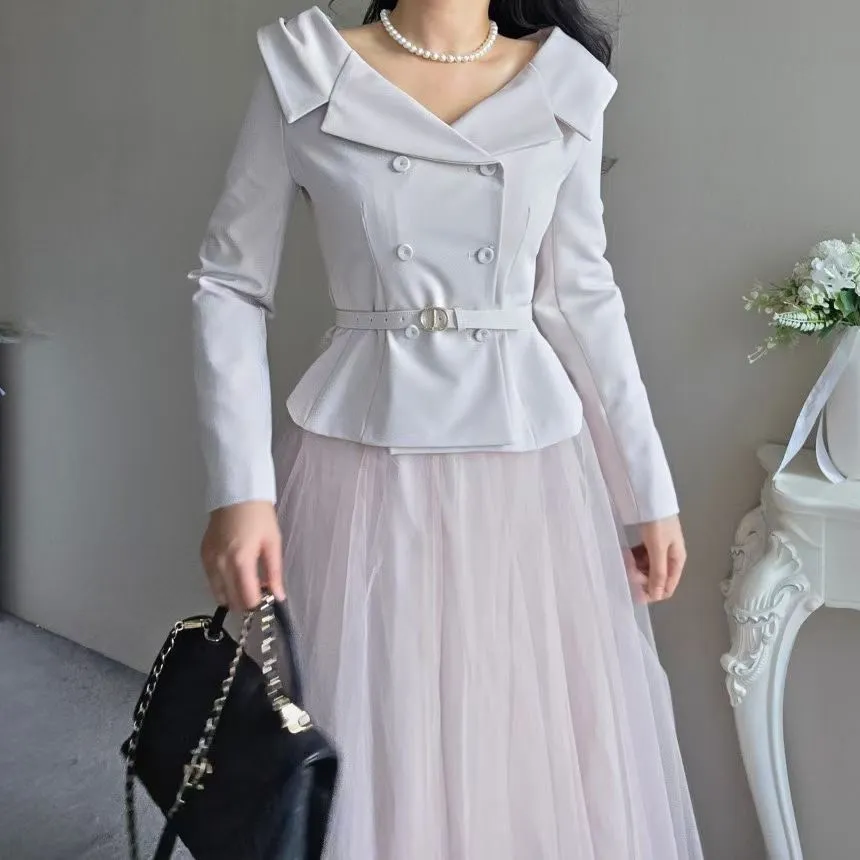 聚酯 有內裡 都市風格雙排釦 開襟小露鎖骨 腰身剪裁 附腰帶