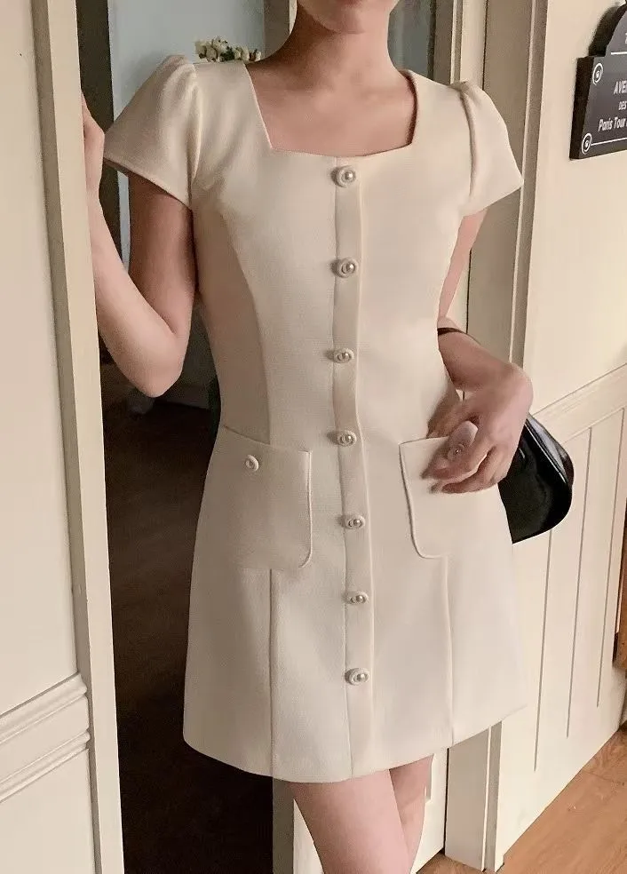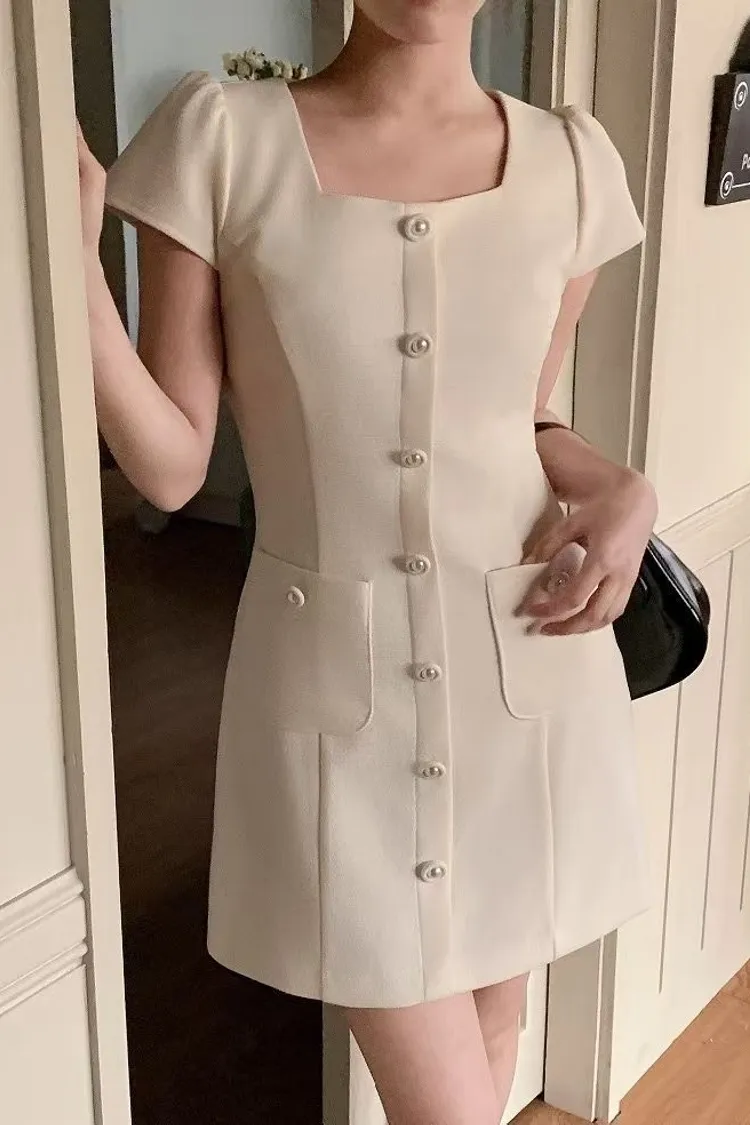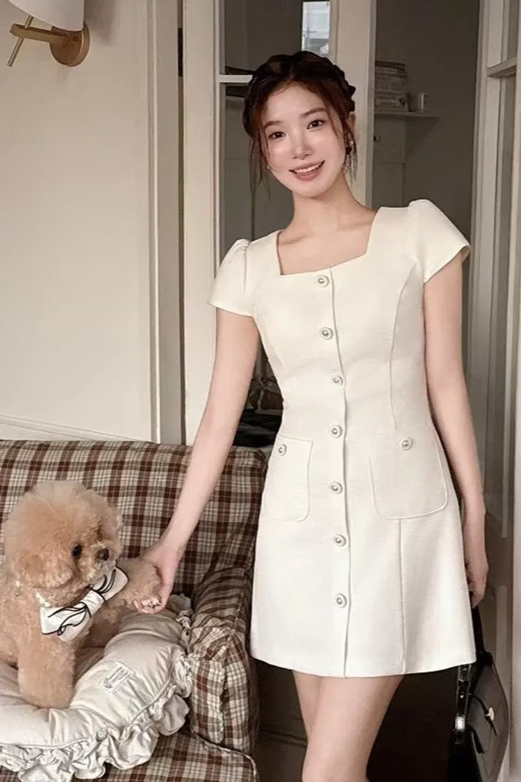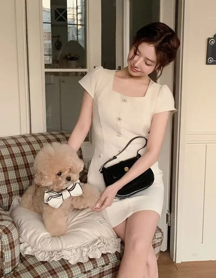 聚酯 薄款小香風面料 有內裡 拉鍊穿脫 細細銀繡線