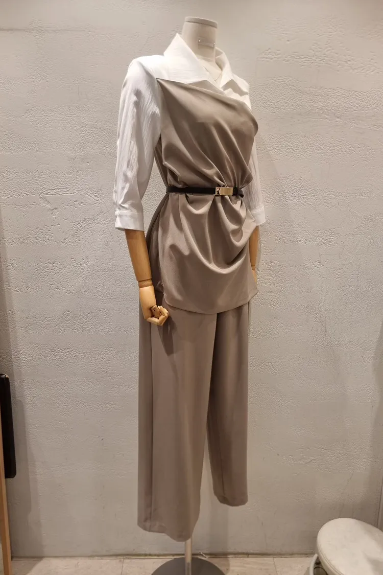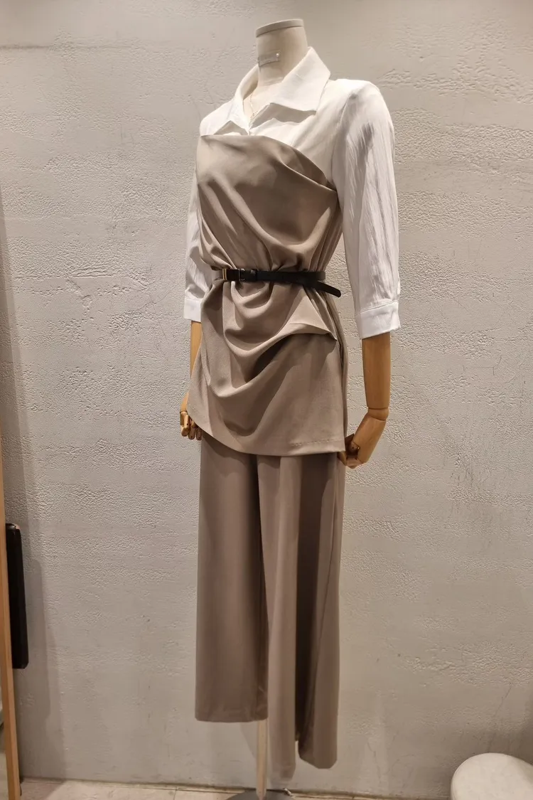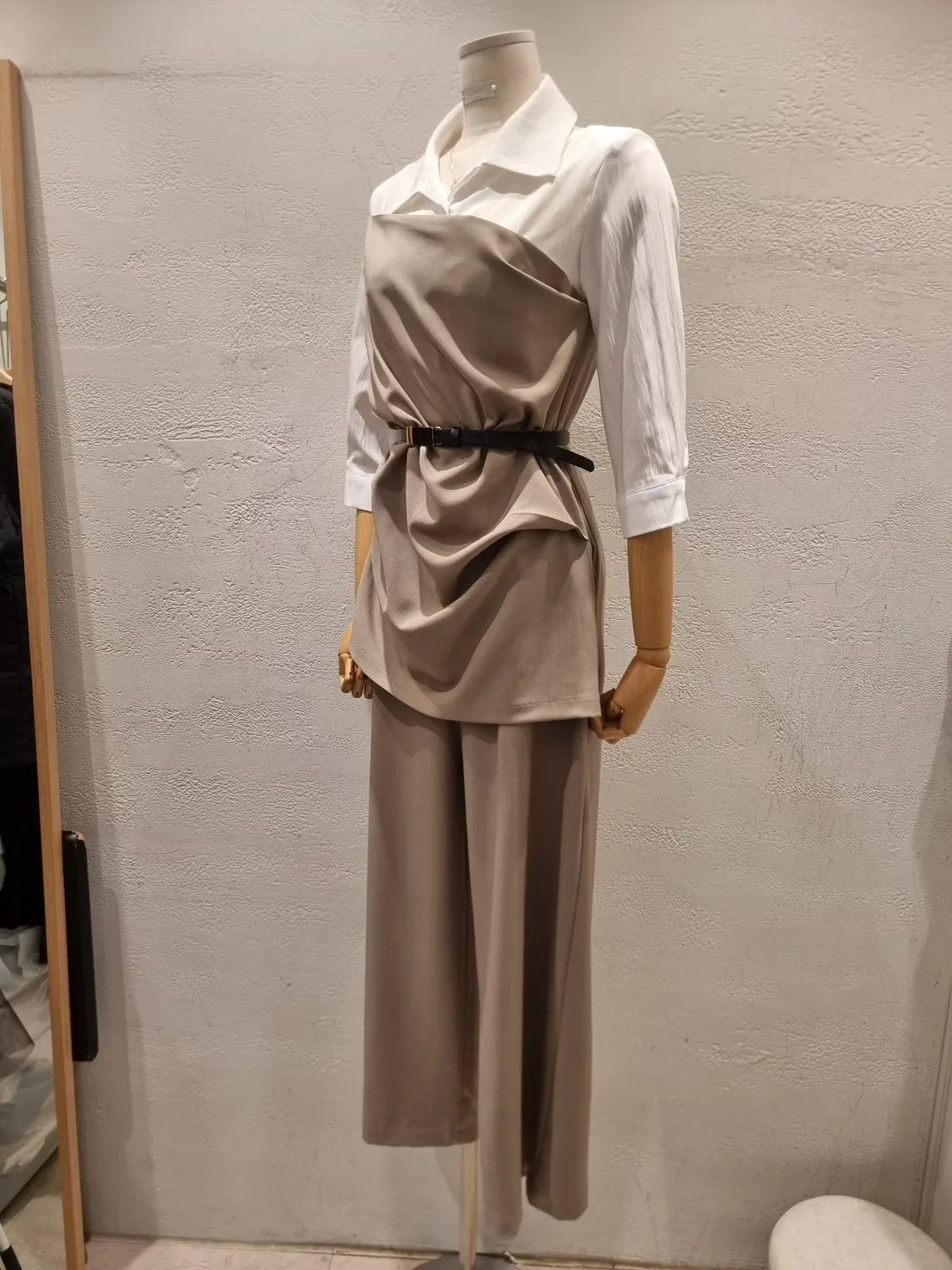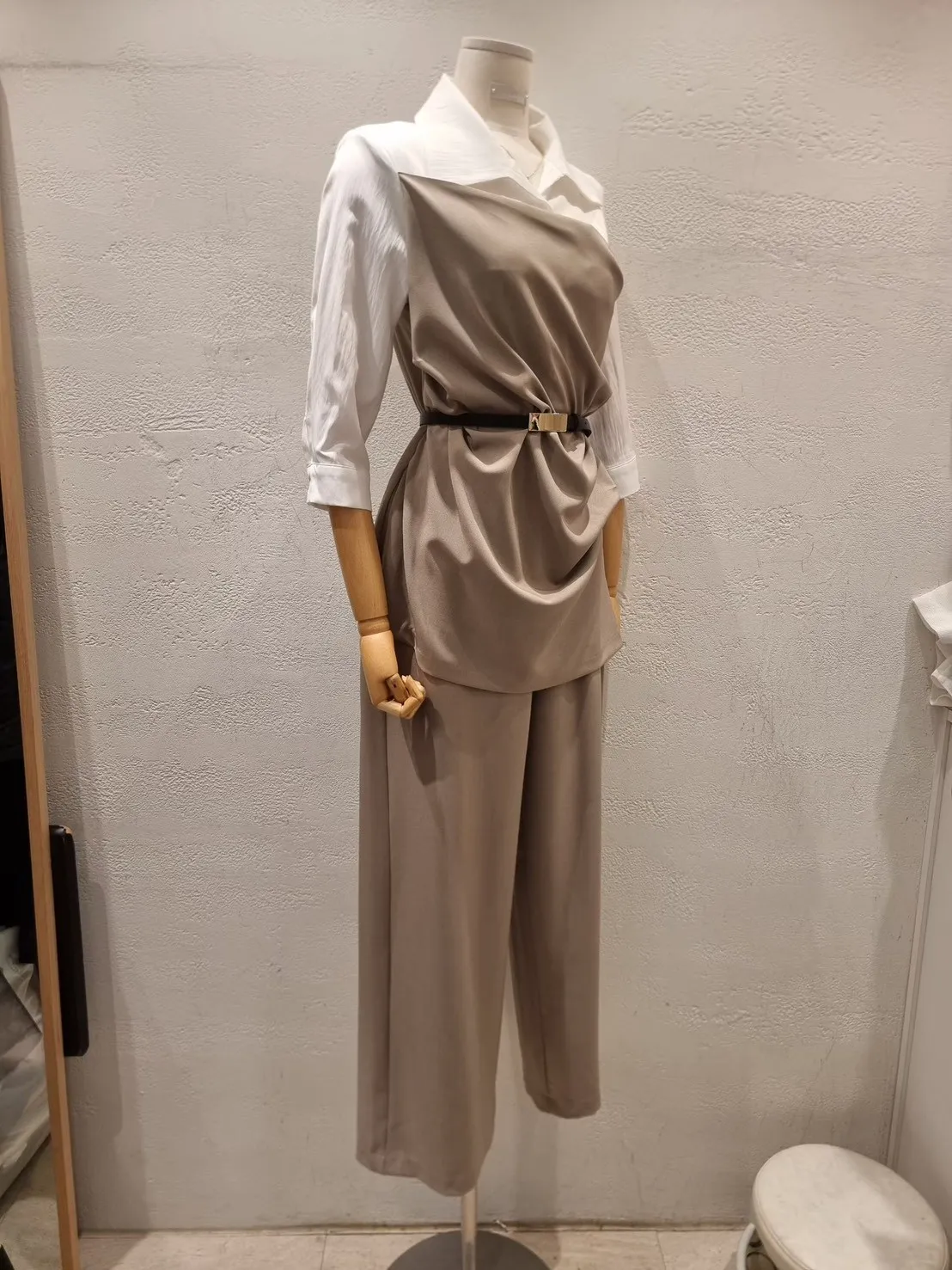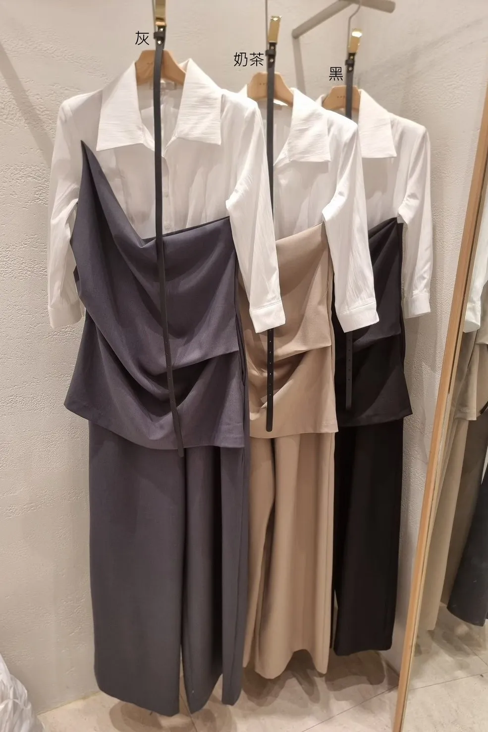 棉+聚酯 上衣和褲子是連身款 不可拆開 非常小的短墊肩