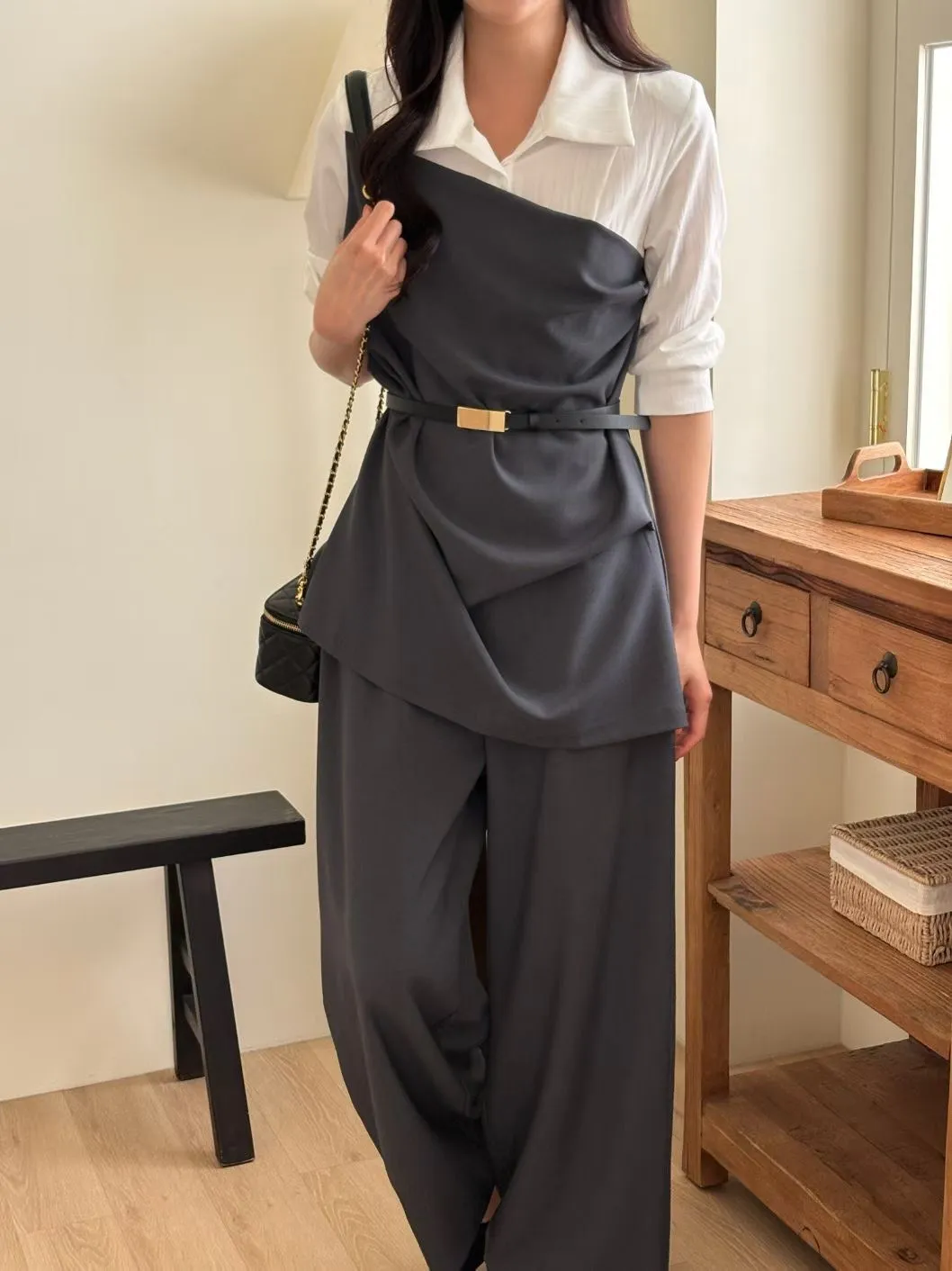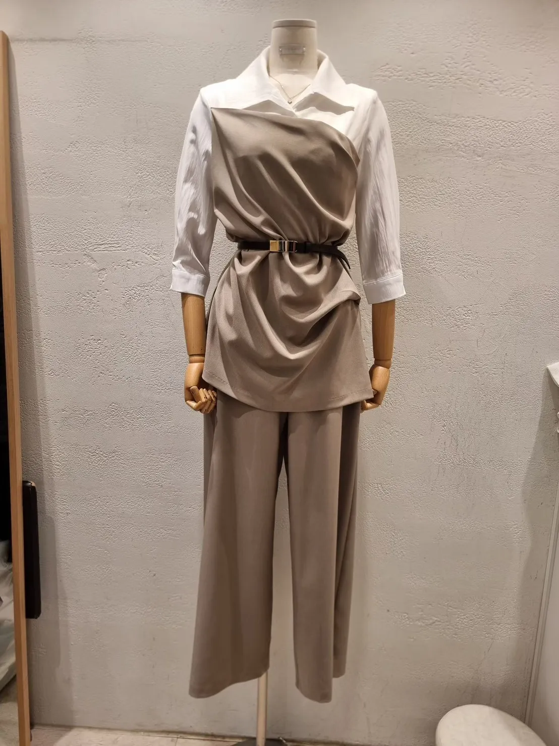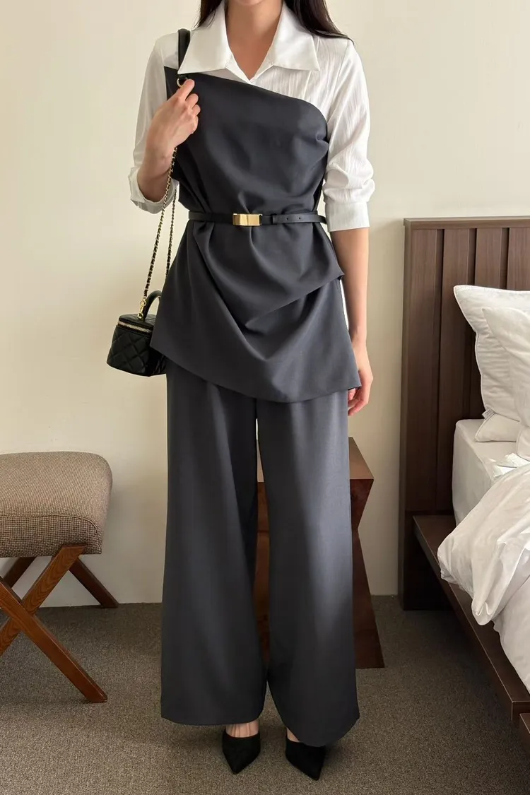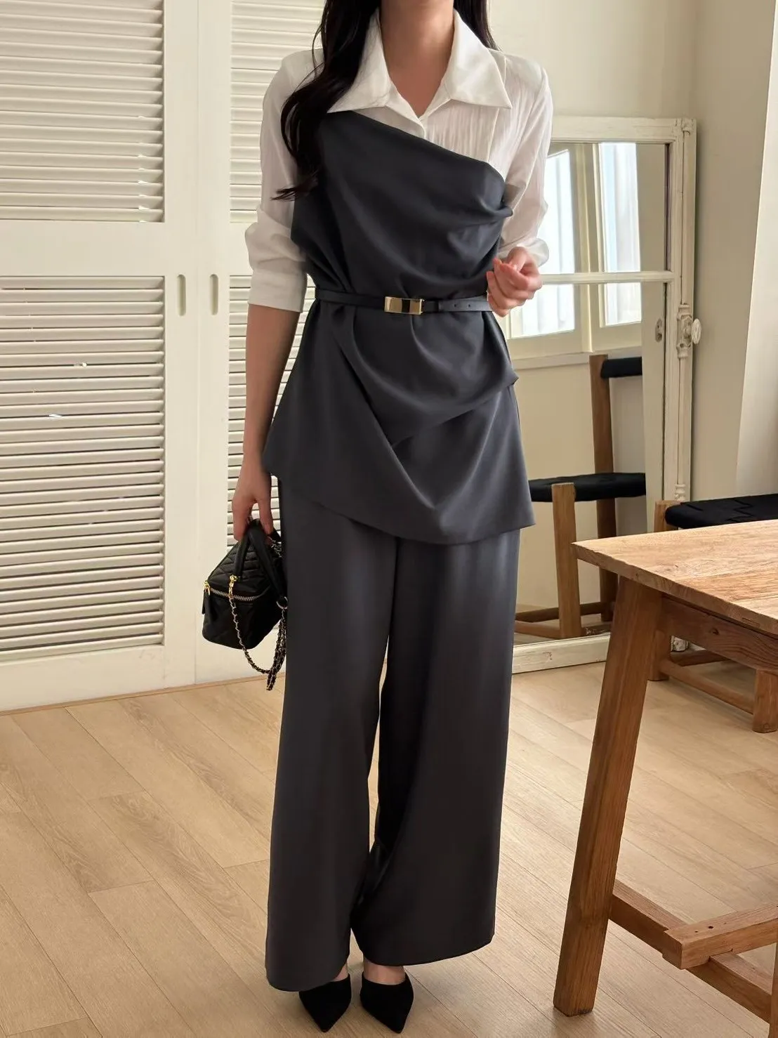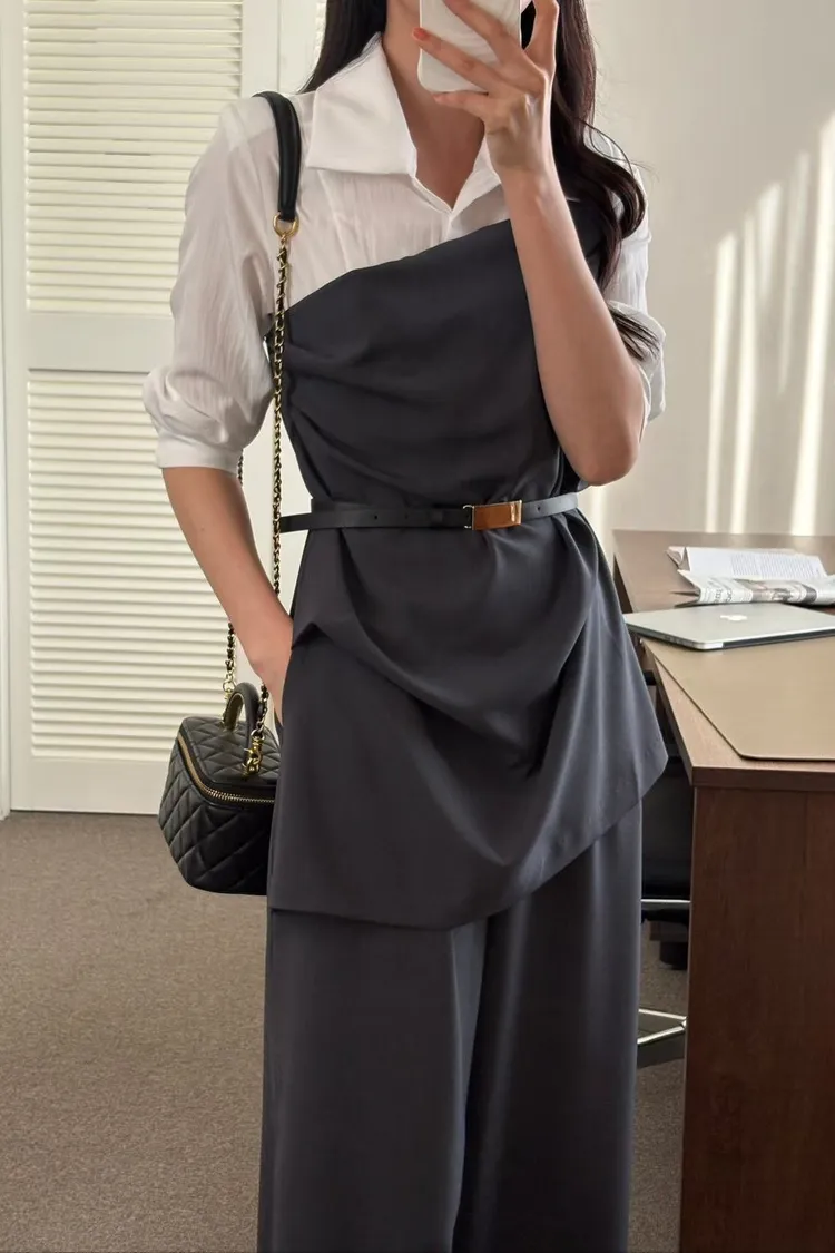棉+聚酯 上衣和褲子是連身款 不可拆開 非常小的短墊肩