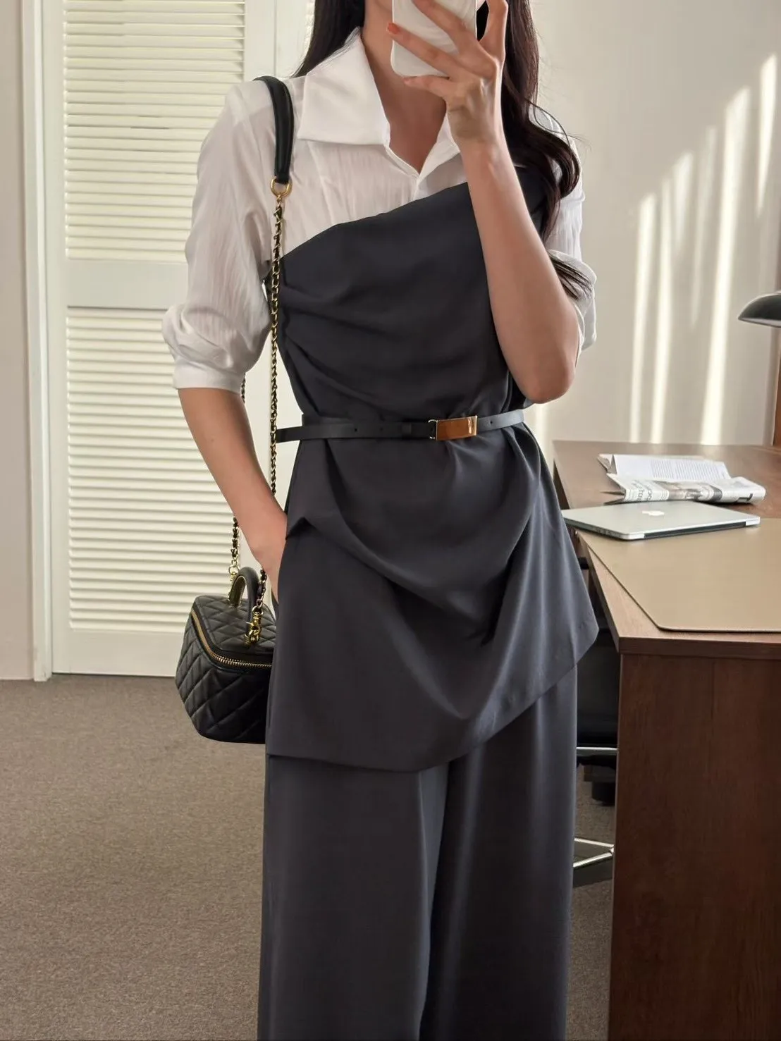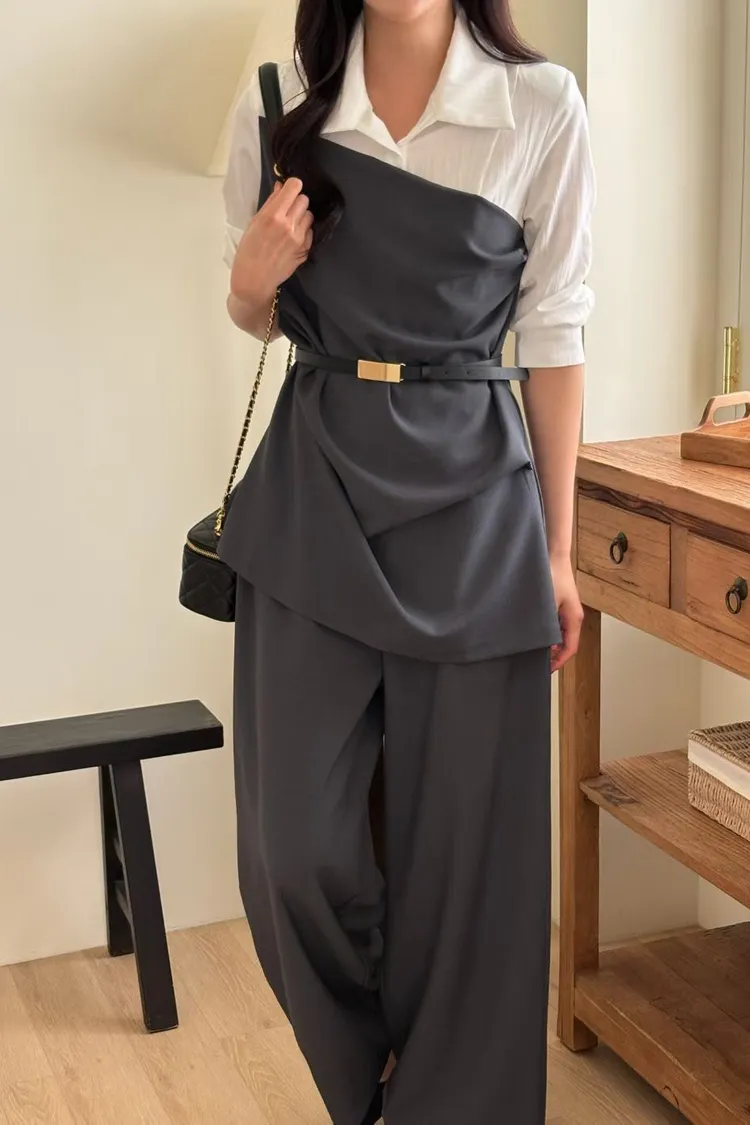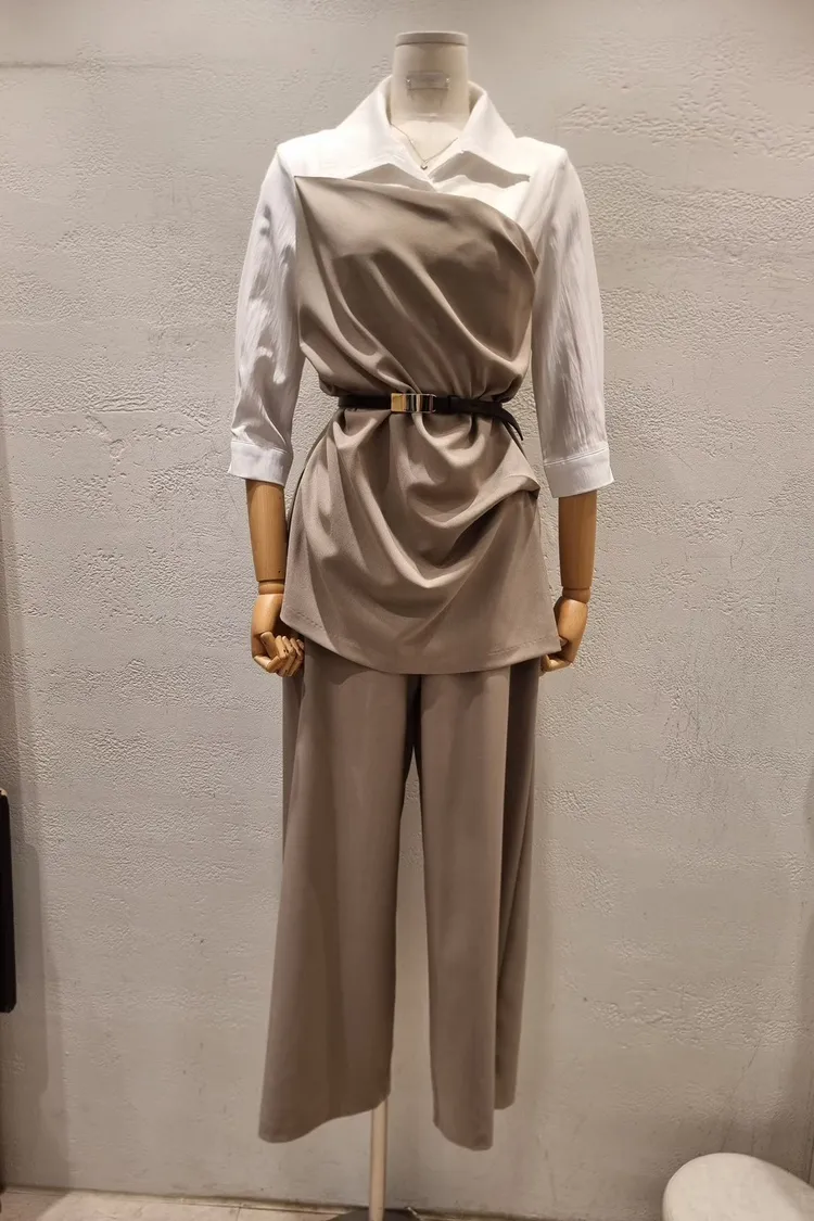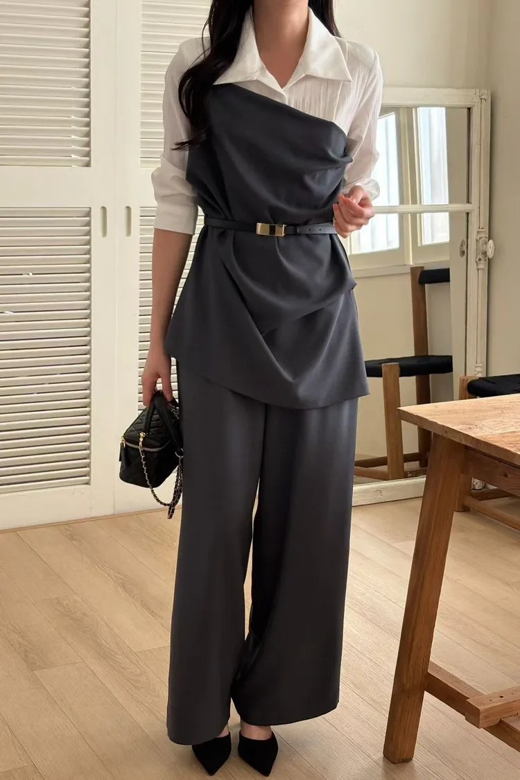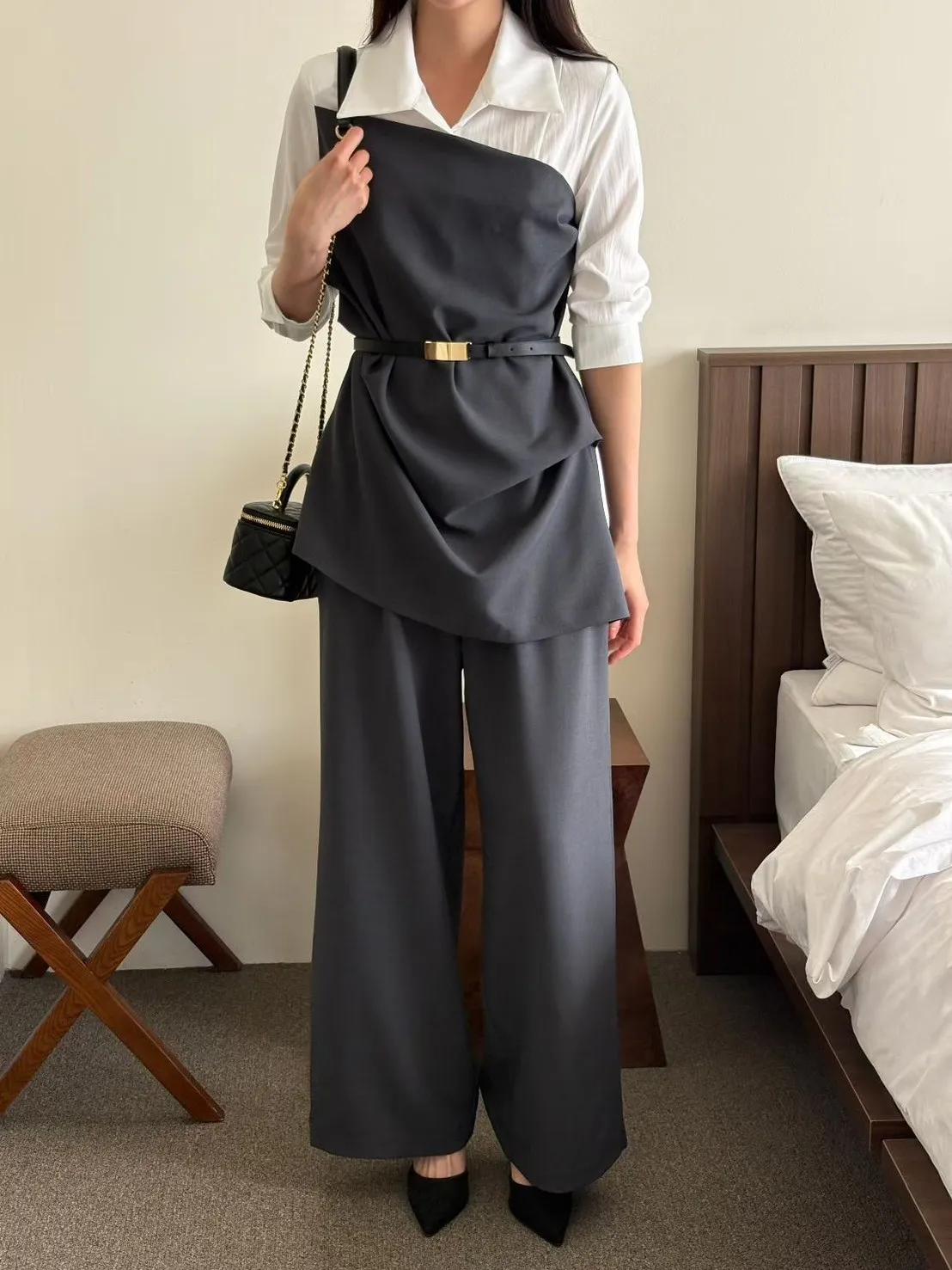 棉+聚酯 上衣和褲子是連身款 不可拆開 非常小的短墊肩