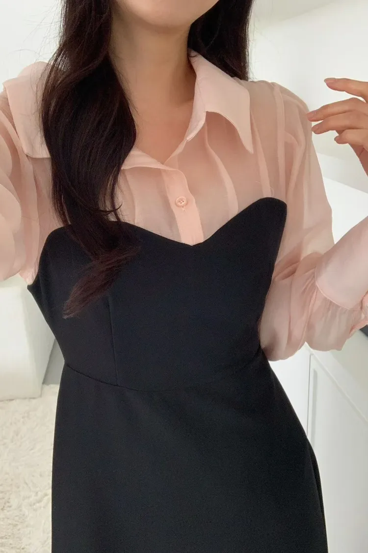聚酯 輕盈薄款 光澤感面料 開襟翻領 上身微透光