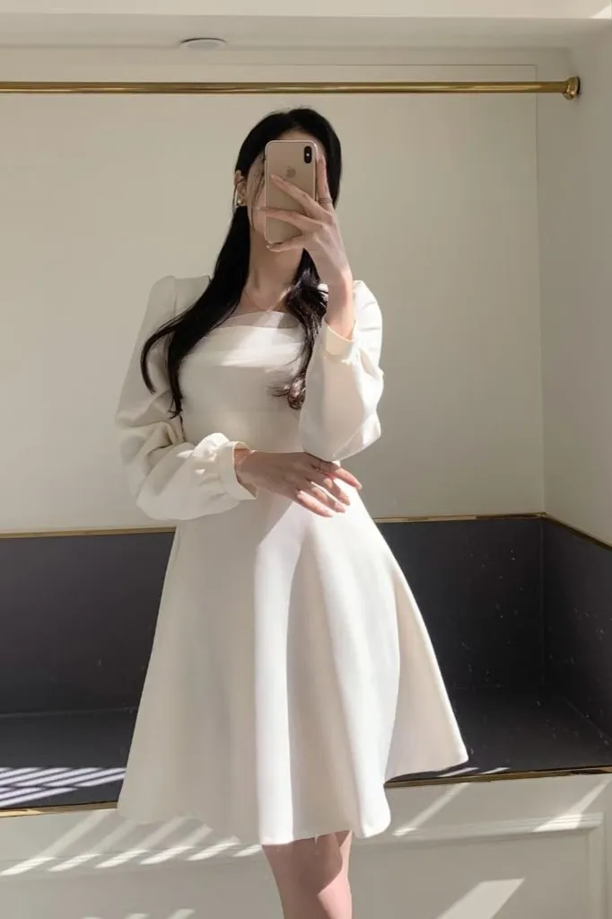 👉 短裙/長裙+👉 短袖/七分袖/長袖