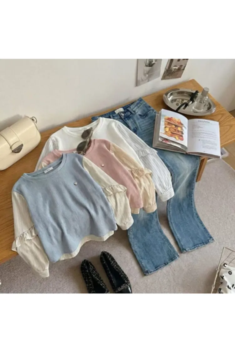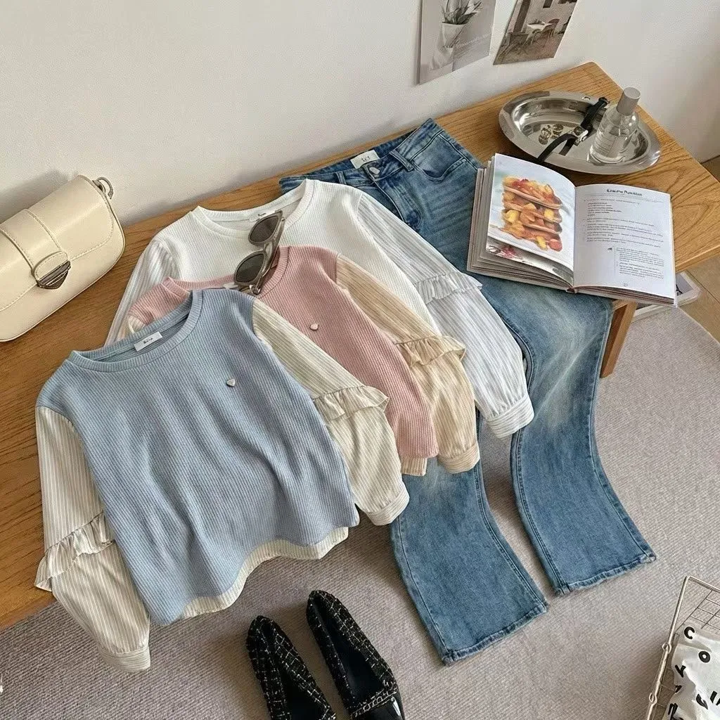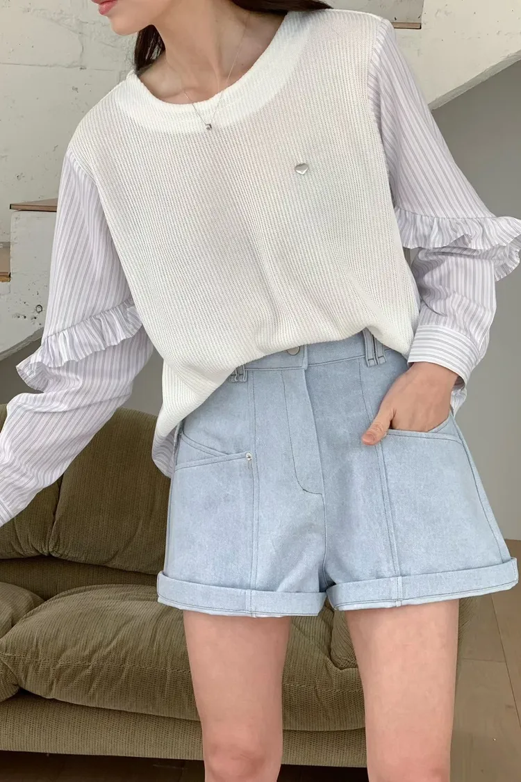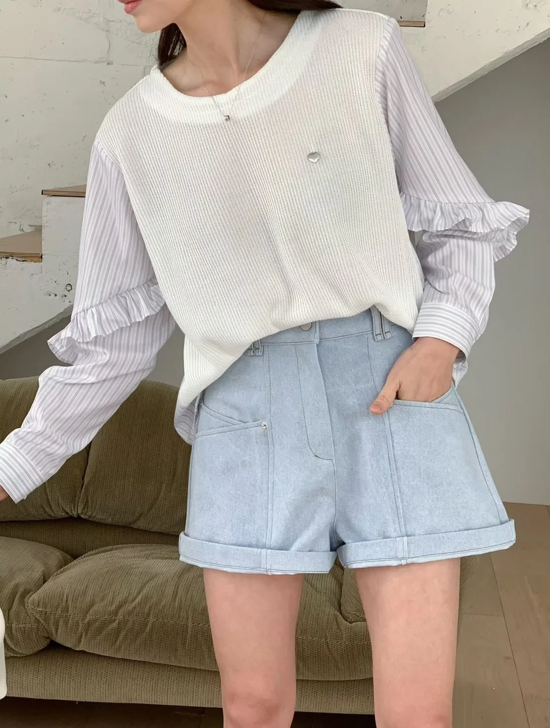 天絲+聚酯 親膚舒適 薄款坑條棉 細條紋理 荷葉手肘 小銀標