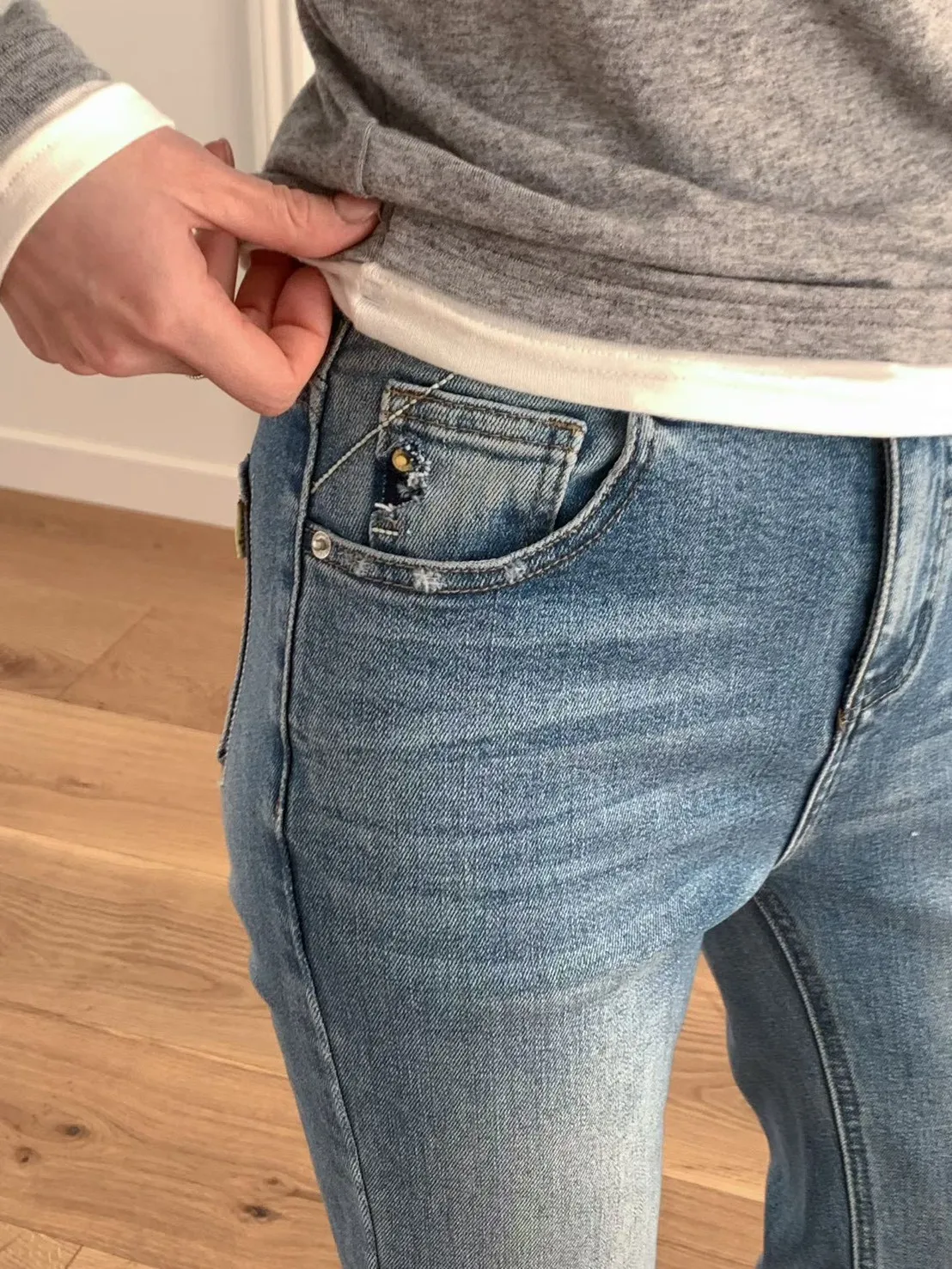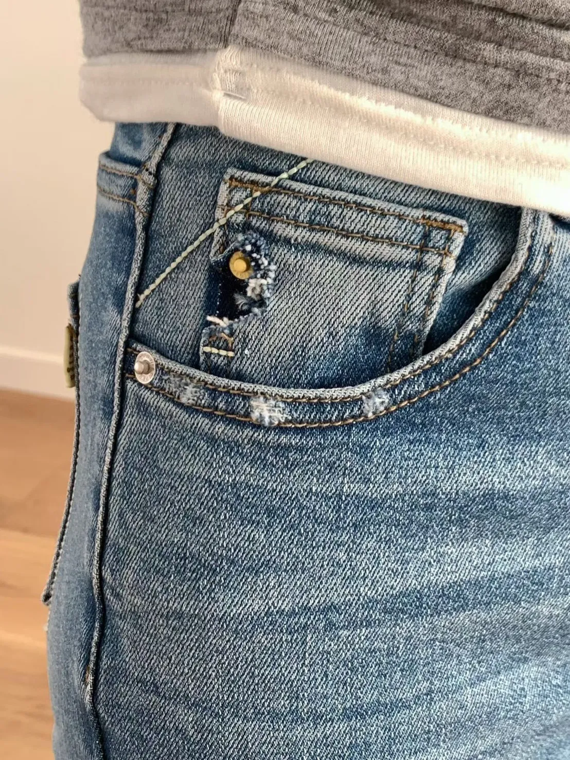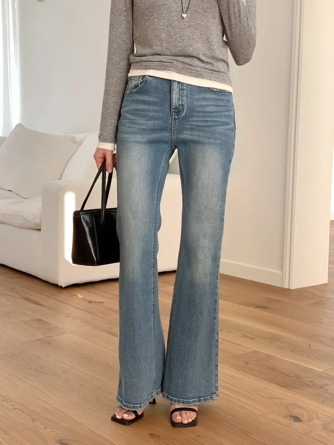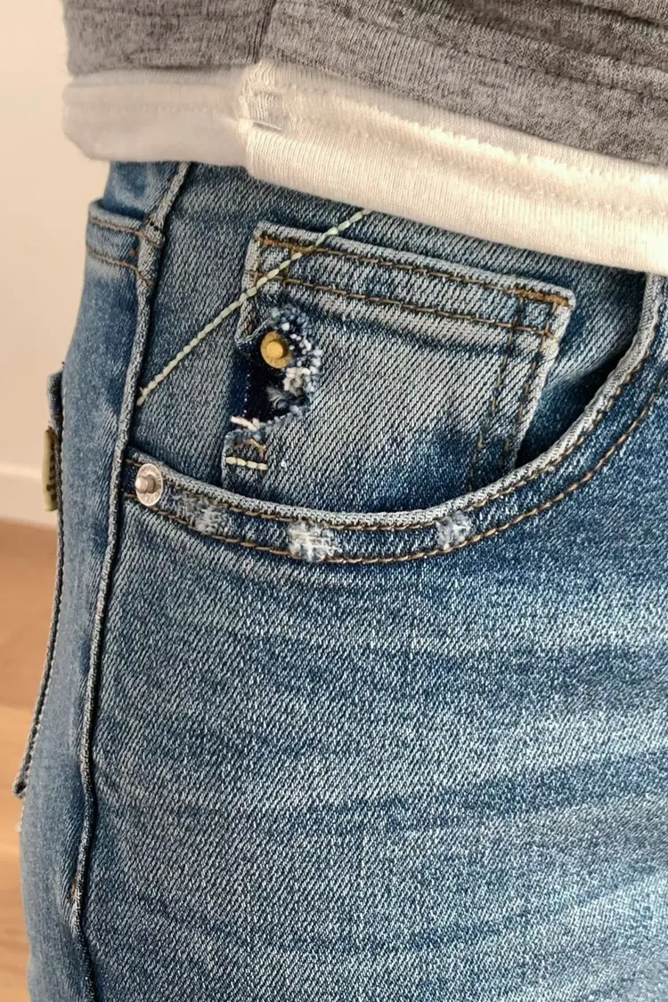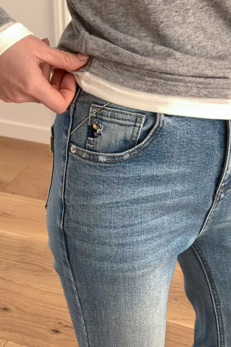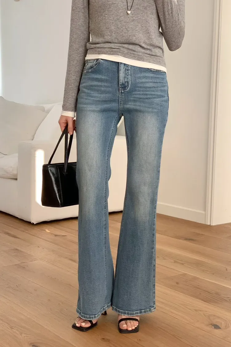 棉+彈力 中高腰版型 細腿版型 復古刷色 有彈性 有口袋 偏薄四季款