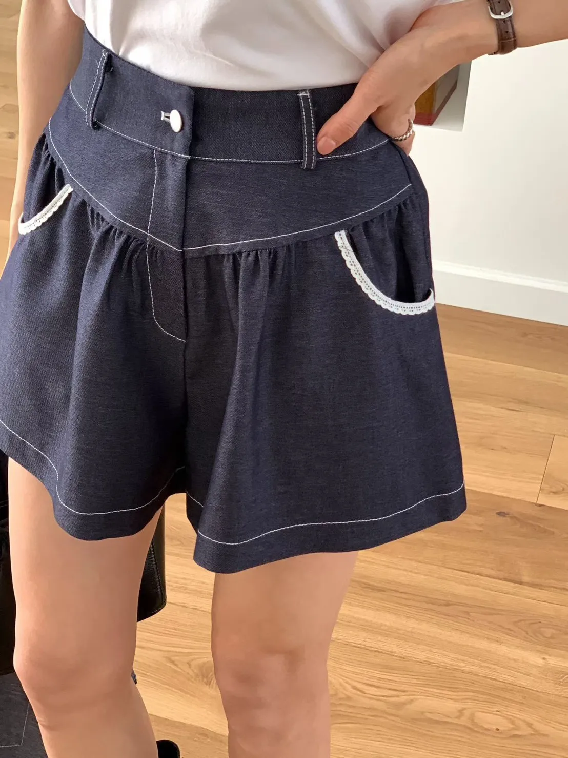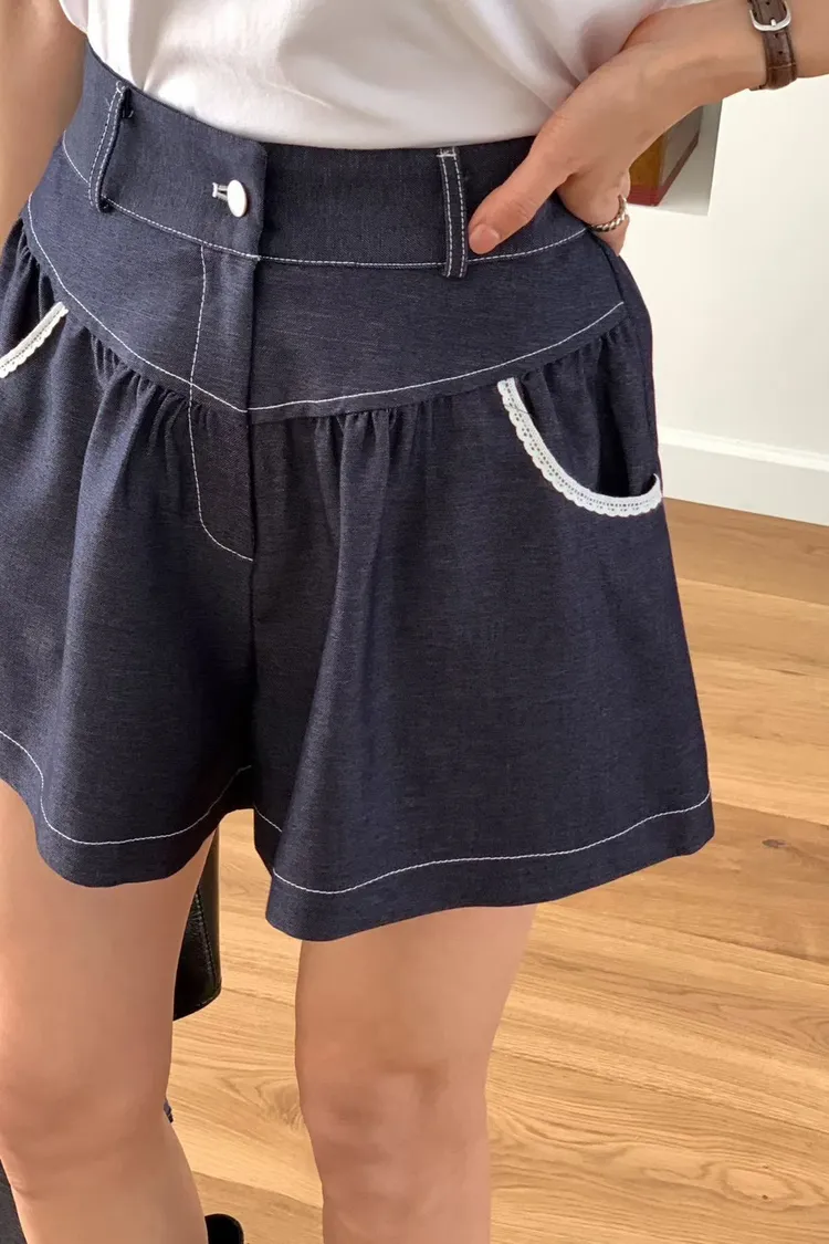 縲縈+聚酯,薄款輕盈 絲滑觸感 蕾絲滾邊口袋 適合夏天
