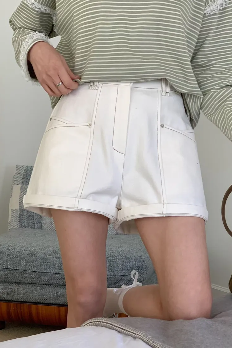 棉,立體剪裁車線 後腰鬆緊 有口袋 可反摺 Aline顯瘦 釦鍊穿脫