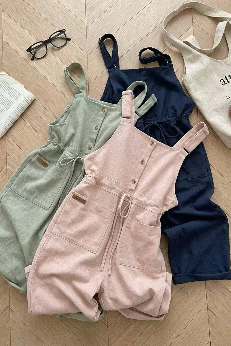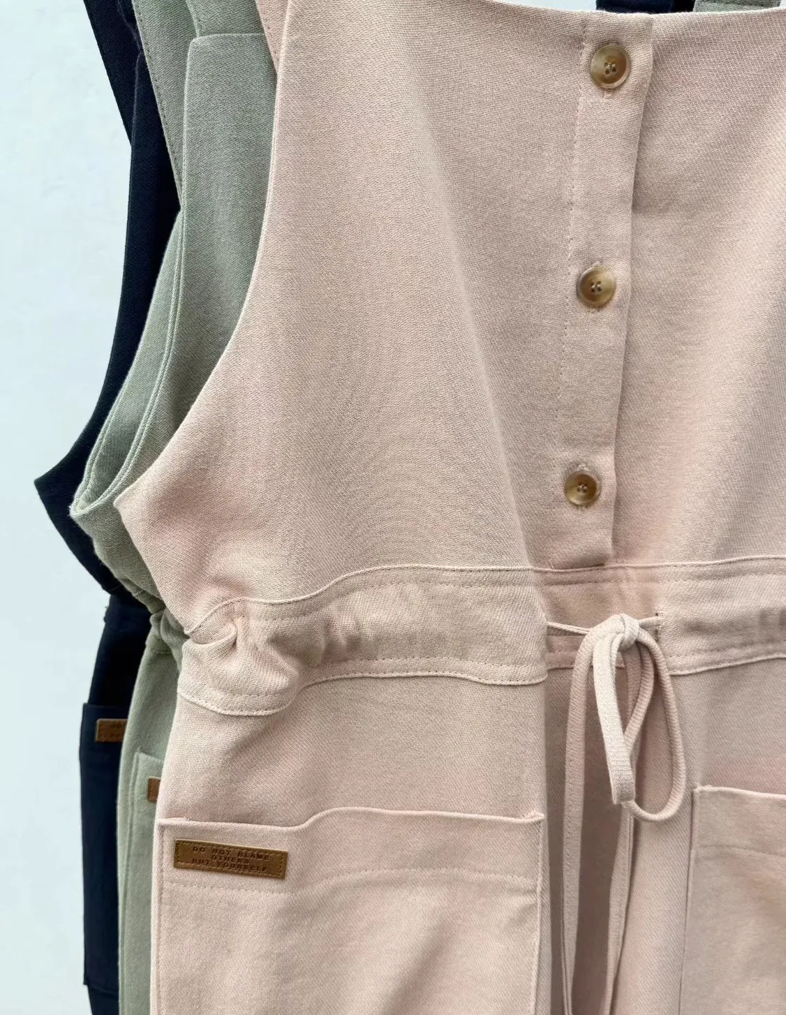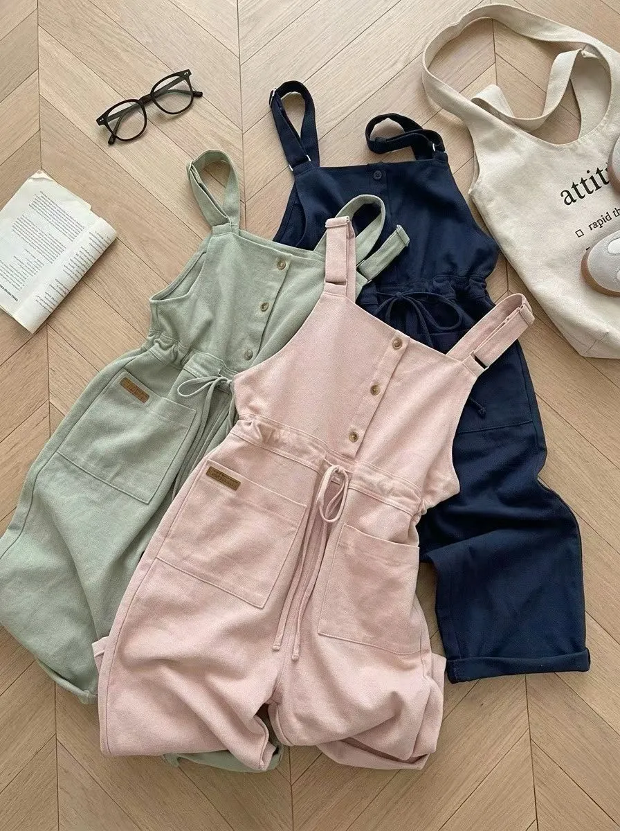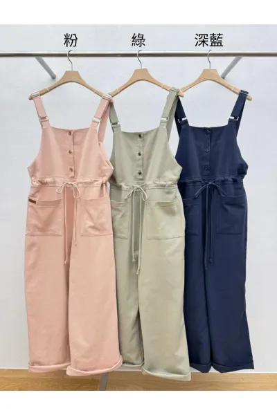 棉 柔軟材質 非常舒服 釦子穿脫 細腰抽繩 有口袋 褲管可反摺 肩帶可調