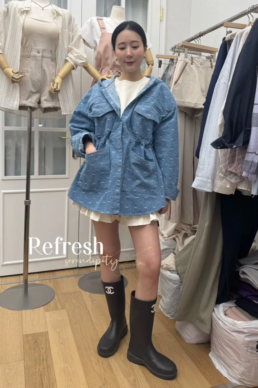 棉 無內裡 內側細腰抽繩 微微立體小蝴蝶結 連帽設計 有口袋
