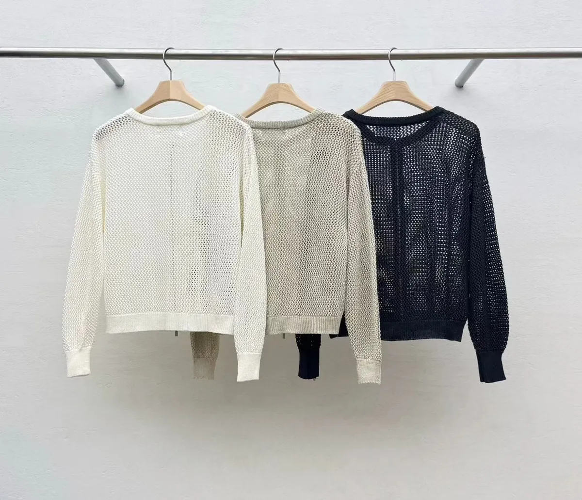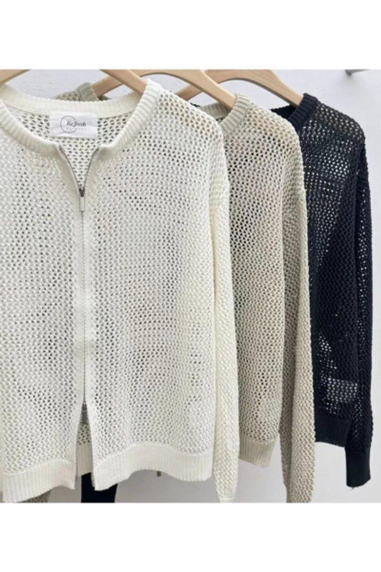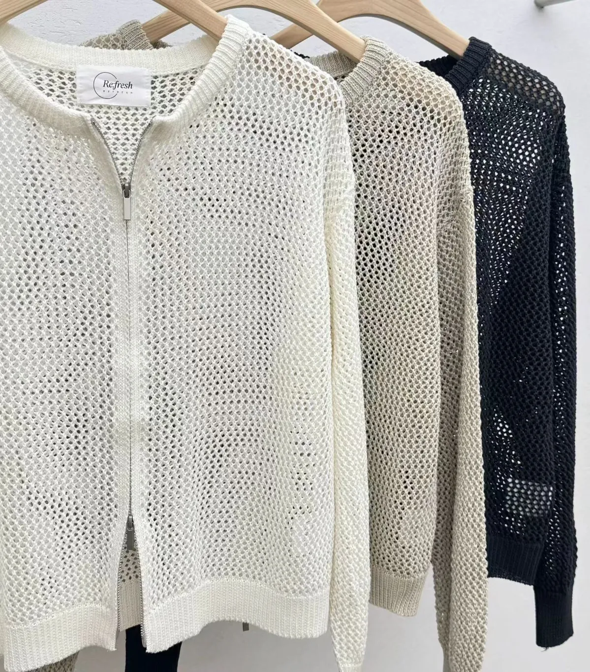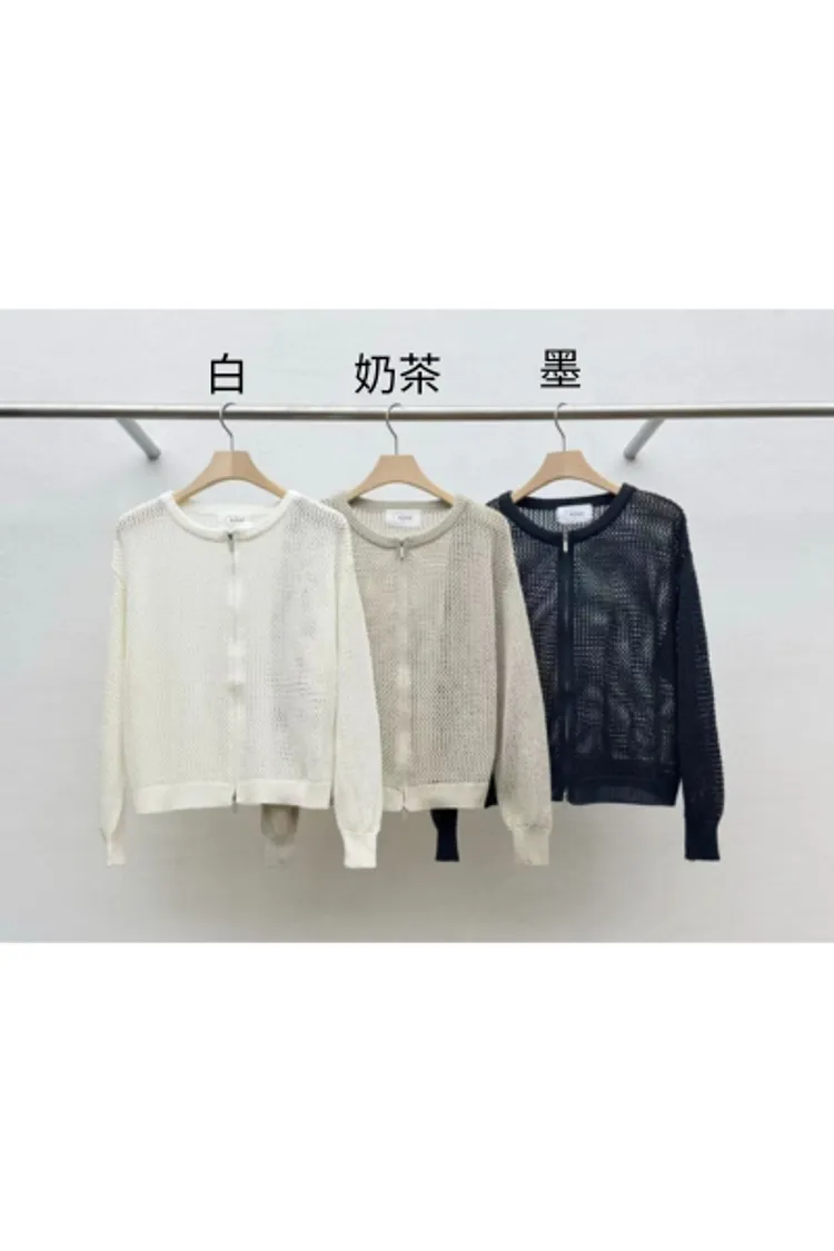 天絲30%+亞麻20%+壓克力 雙頭拉鍊 洞洞簍空織線 可上衣可外套