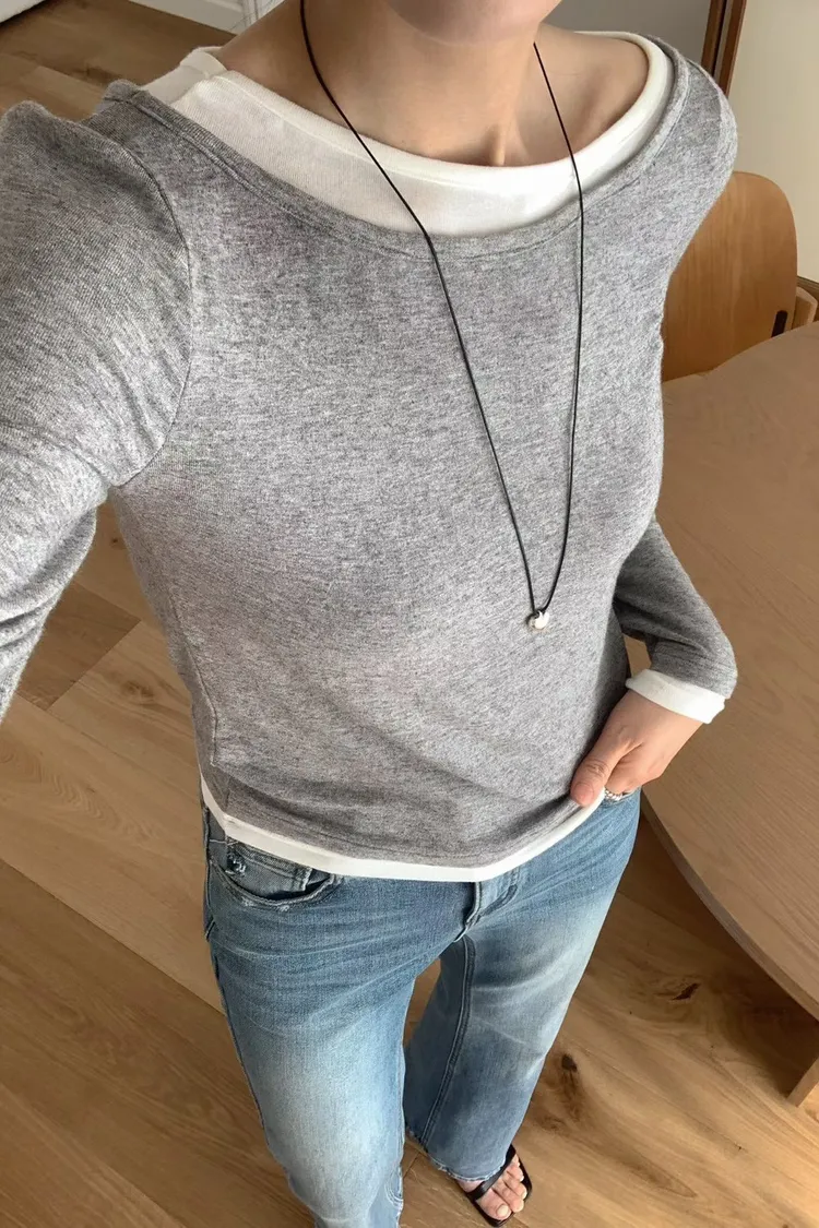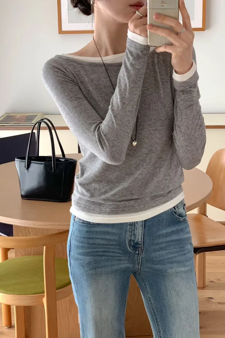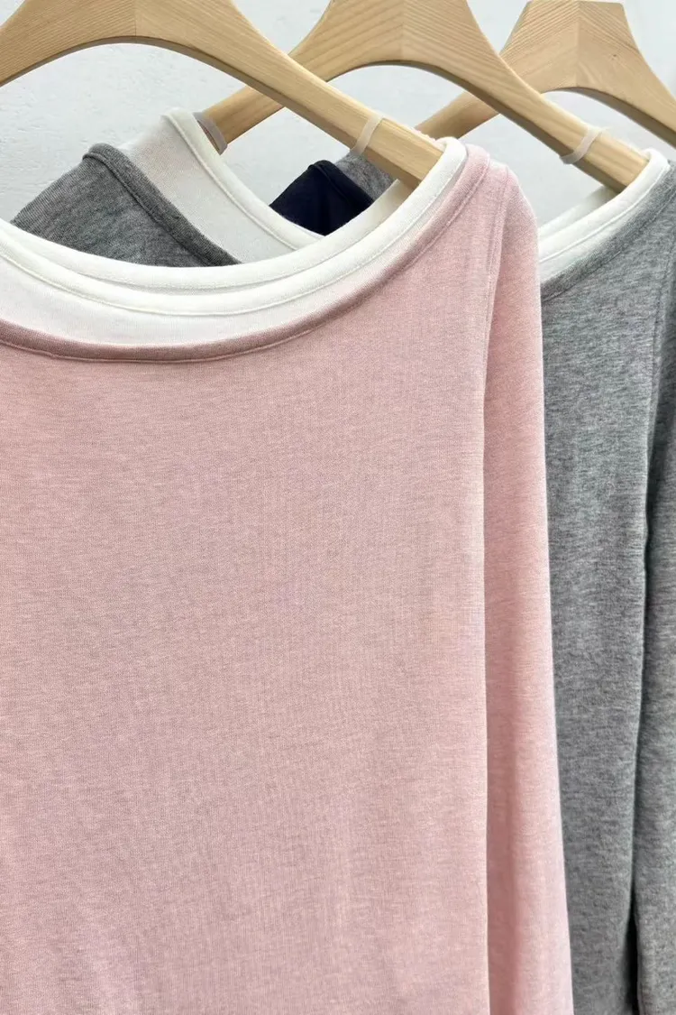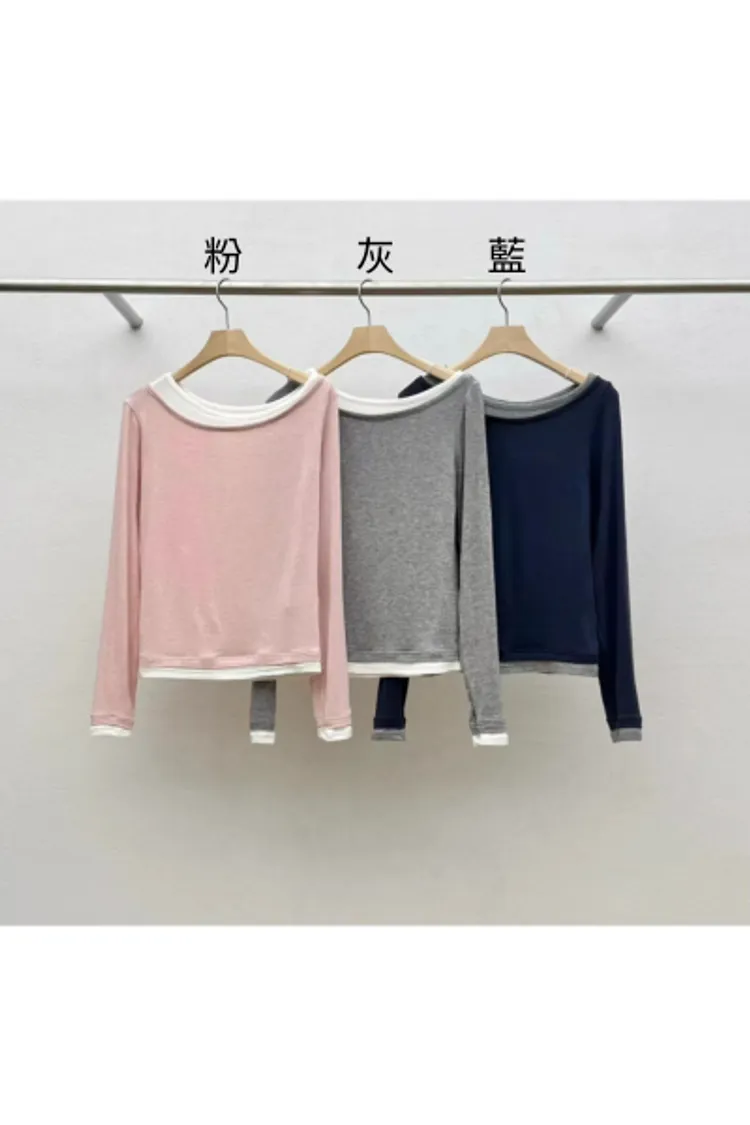 羊毛15%+縲縈+彈力 舒適柔軟Q彈 假兩件不可拆 設計不對稱雙層領口