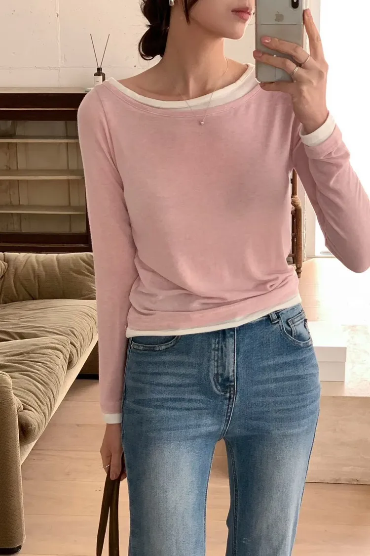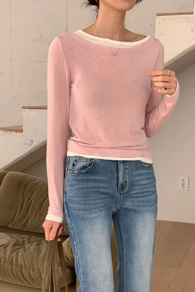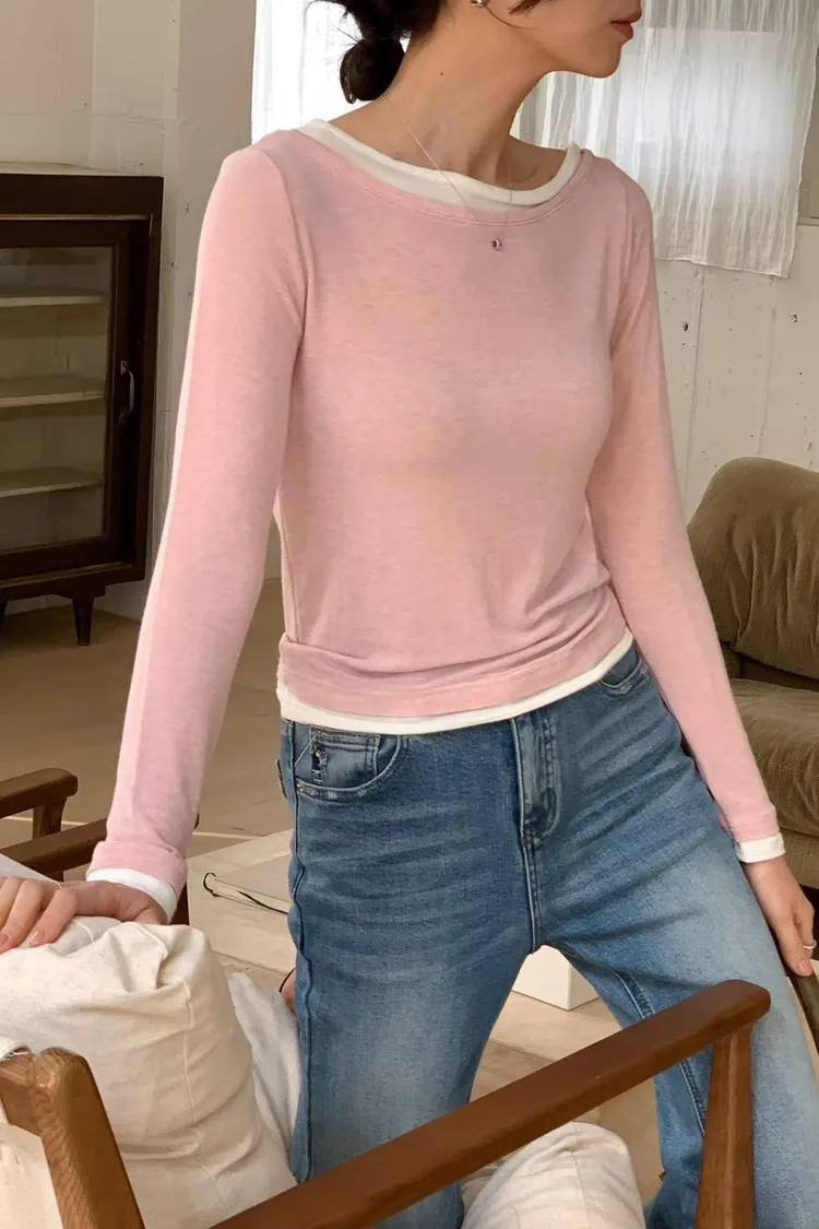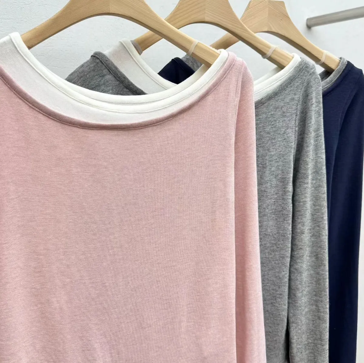 羊毛15%+縲縈+彈力 舒適柔軟Q彈 假兩件不可拆 設計不對稱雙層領口