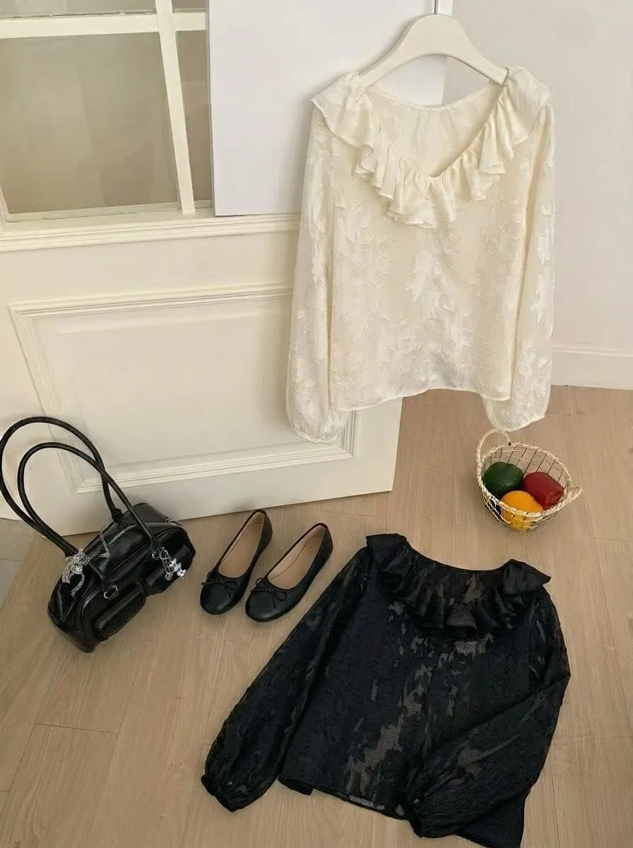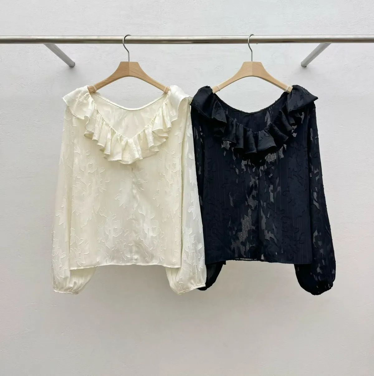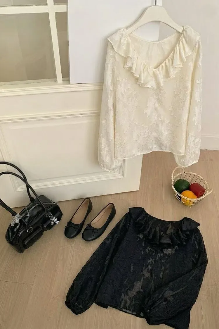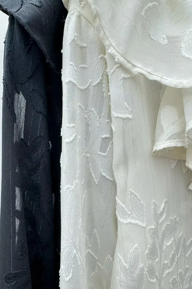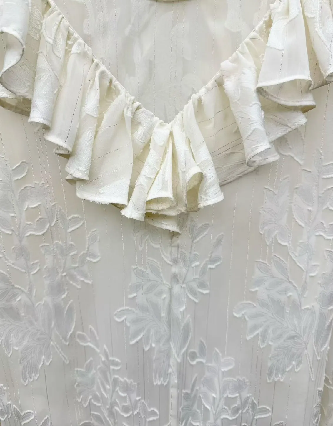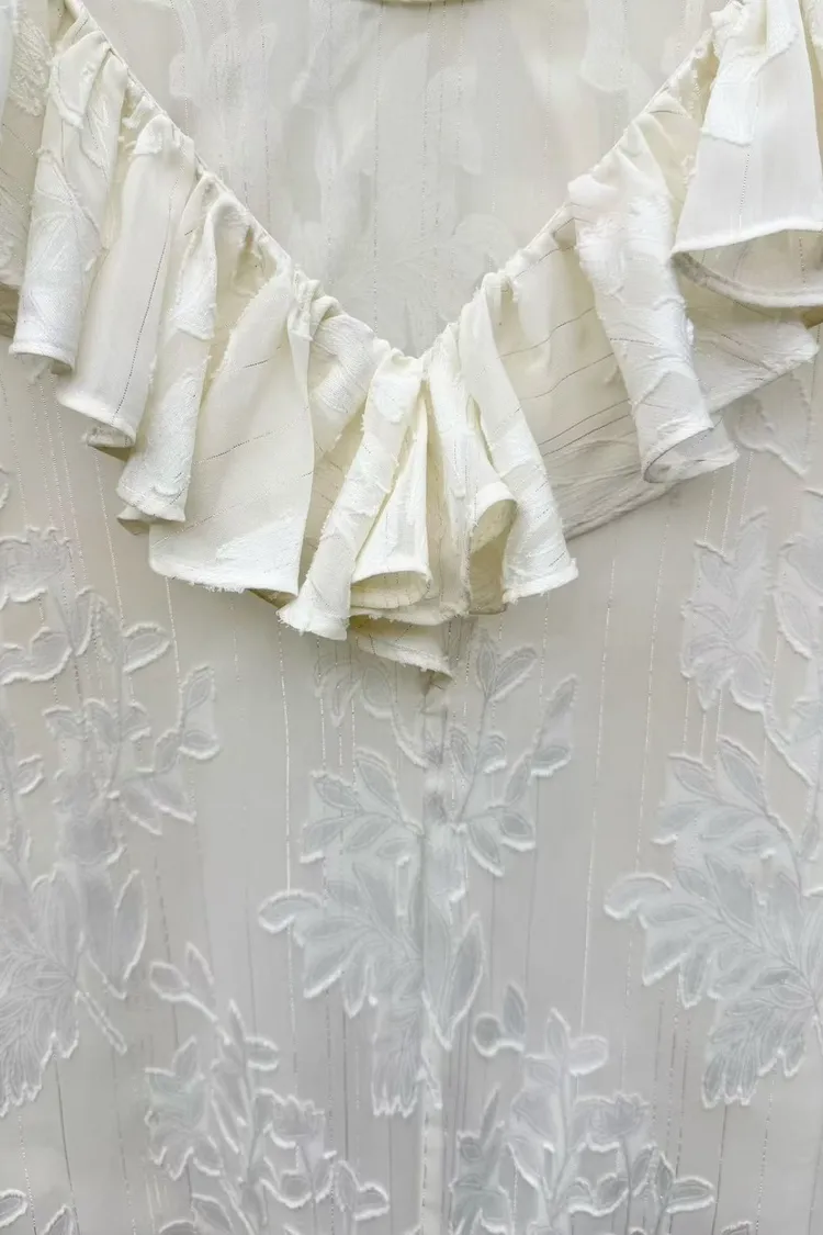 聚酯 薄款不刺癢 回頭率高 荷葉滾邊領口 透光視覺 極美隱約花卉