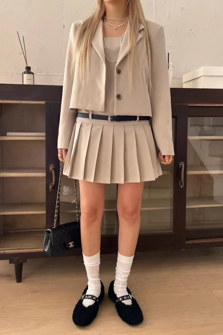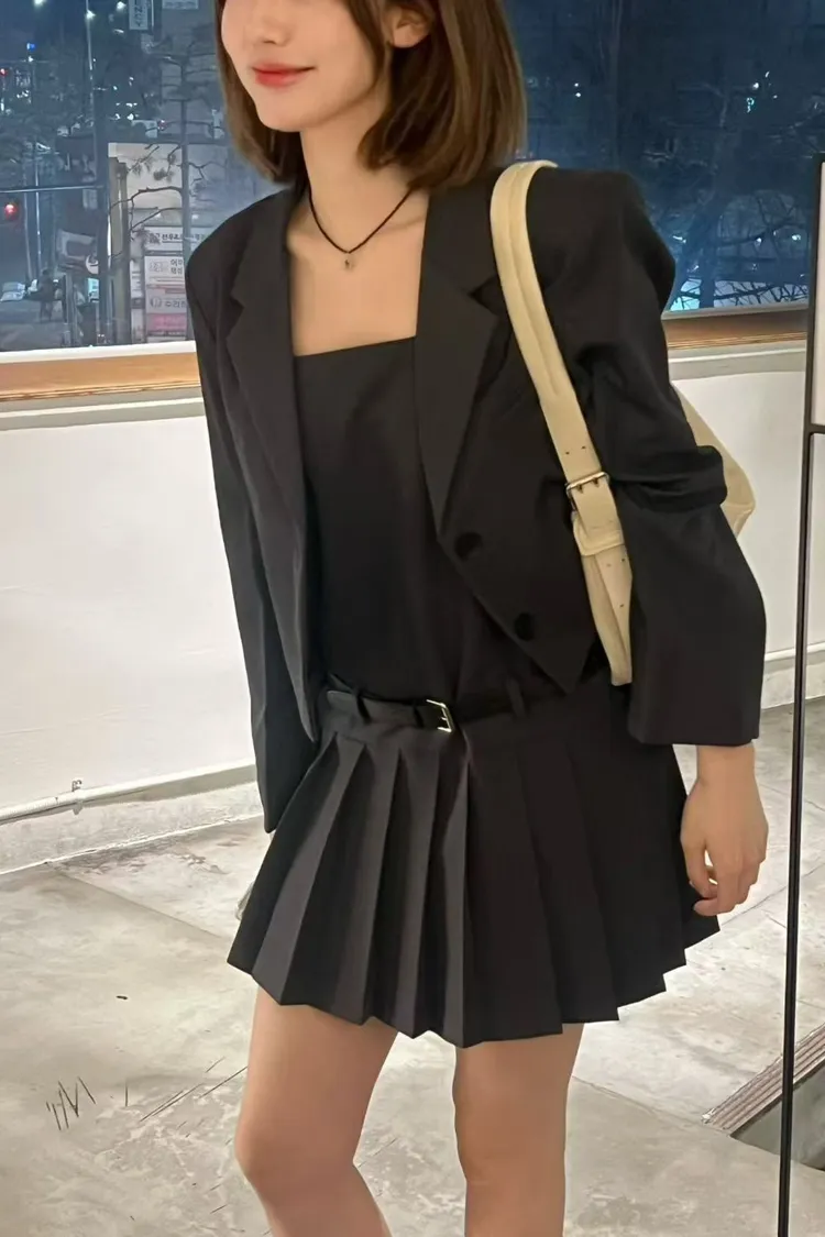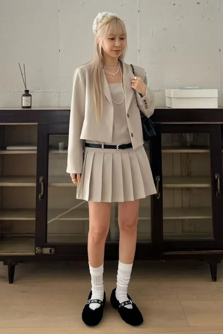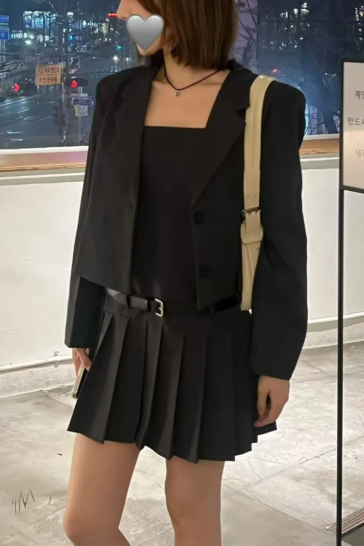 西裝面料 雙釦設計 短版好比例 挺度剪裁 推薦給小個女孩