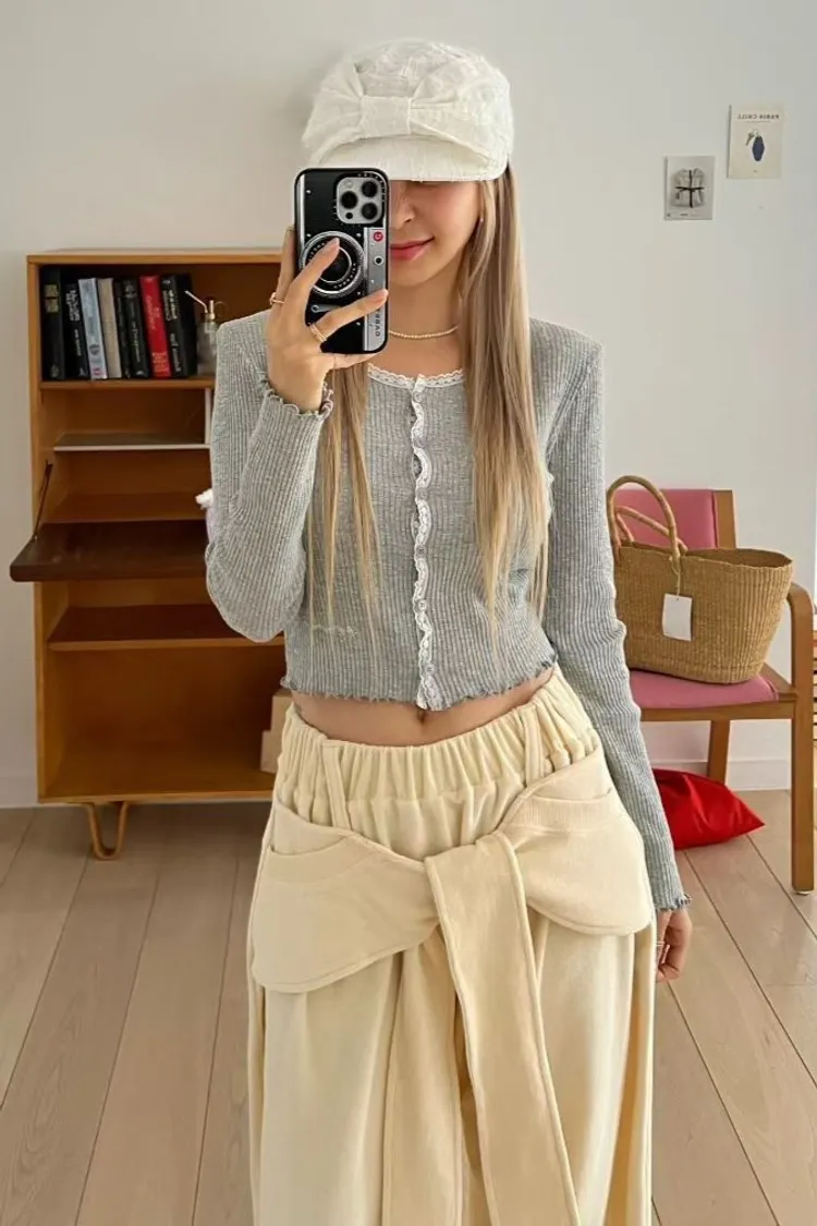 棉+聚酯 細細蕾絲捲邊 排釦穿脫 可上衣可罩衫 微彈性