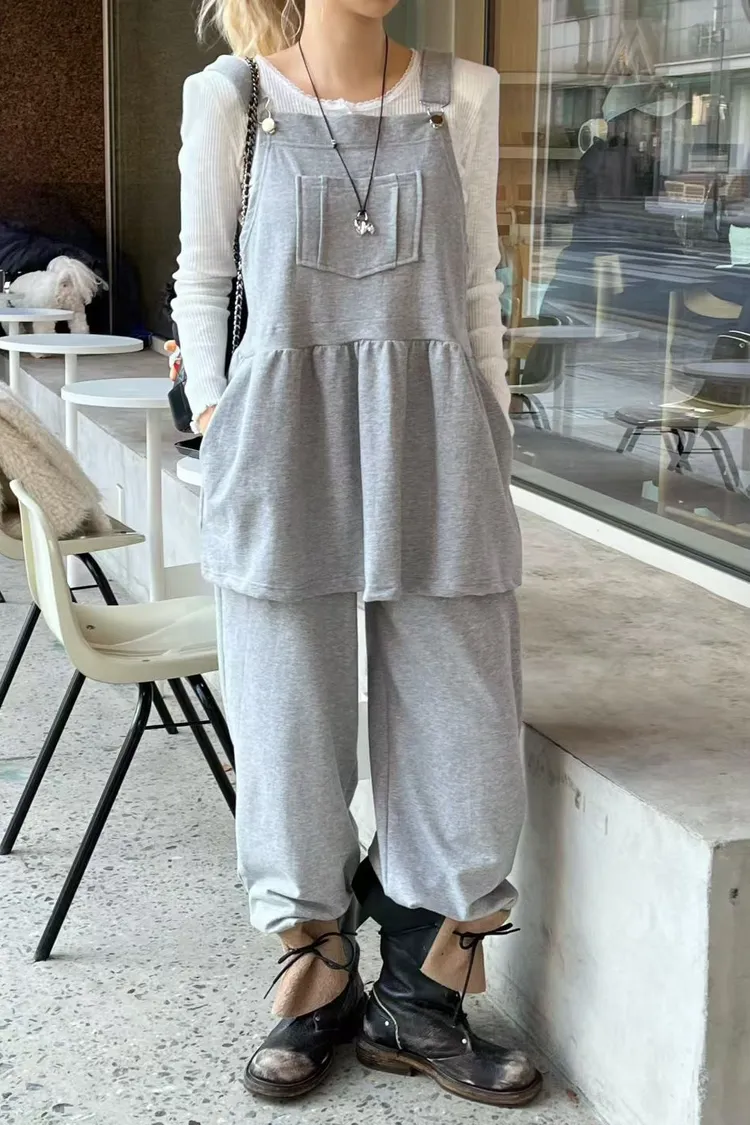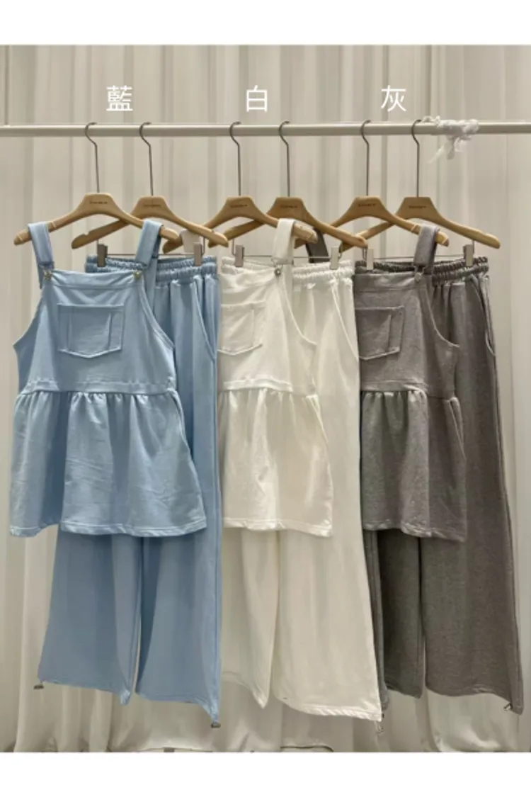 棉 薄款面料 肩帶可調 腰有鬆緊 衣服褲子都有口袋 適合台灣夏天