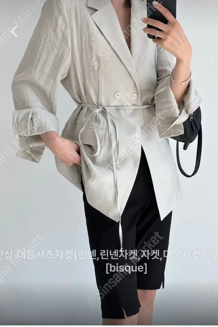 人造絲+麻 極度薄款輕盈 腰有綁帶 墊肩可拆 自然亞麻雜質 尺寸友善