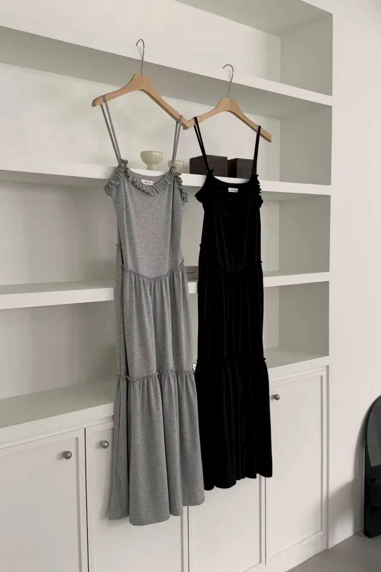 莫代爾棉+彈力 肩帶不可調 荷葉滾邊領口 有彈性 適合夏天