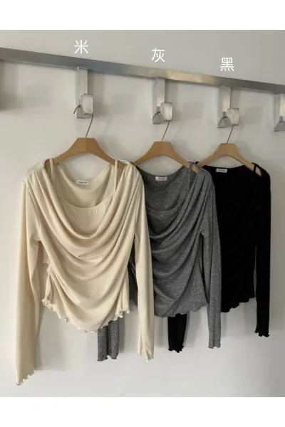 縲縈+聚酯 下擺木耳捲邊 有彈性 假兩件不可拆 L號有善