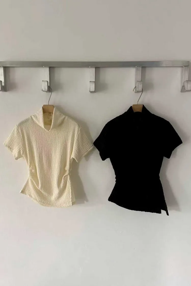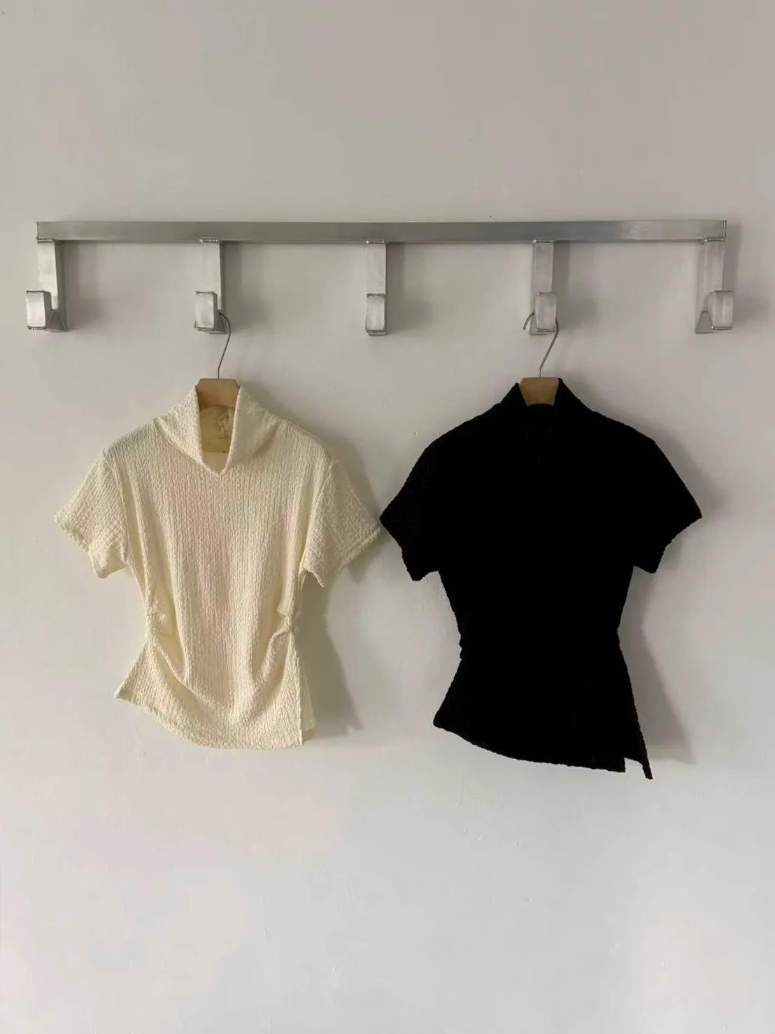 聚酯 側腰開叉 立體面料 不規則下擺 後背壓釦