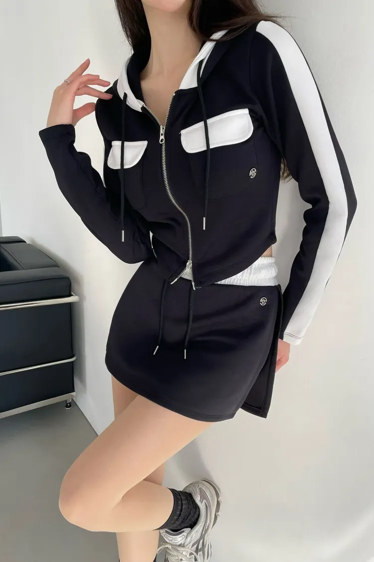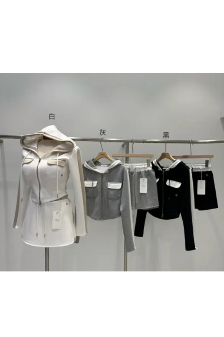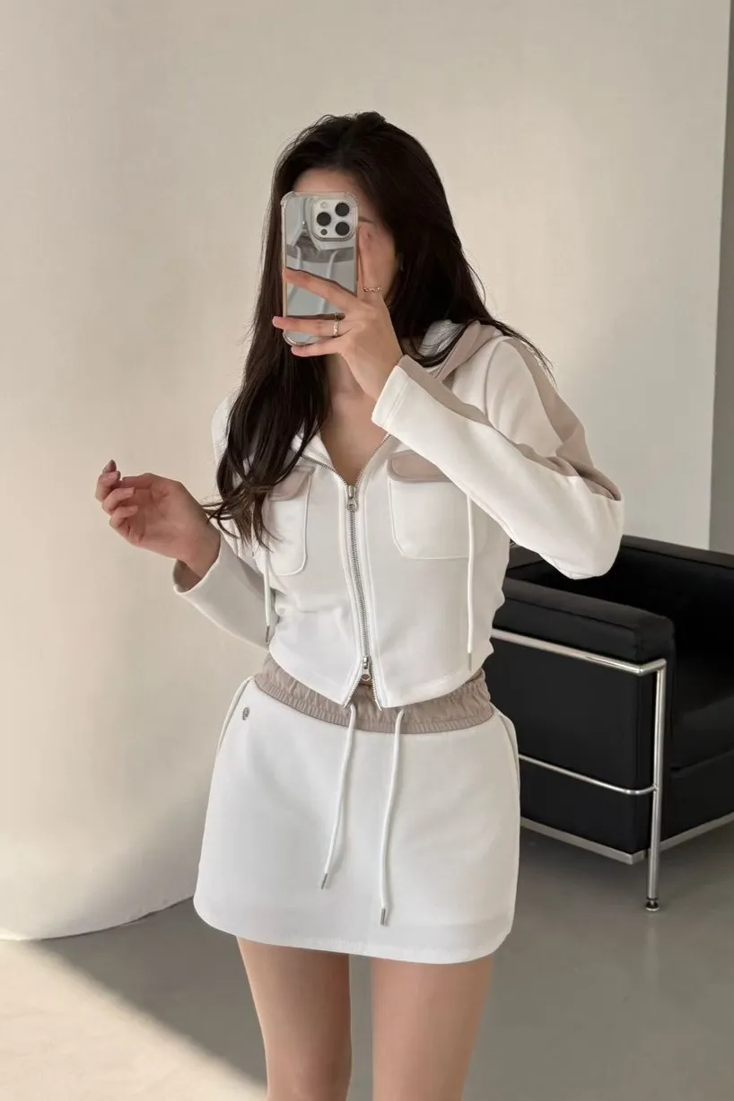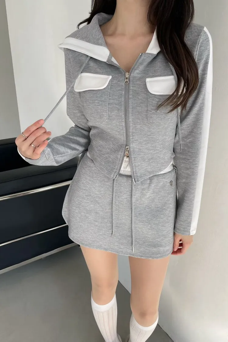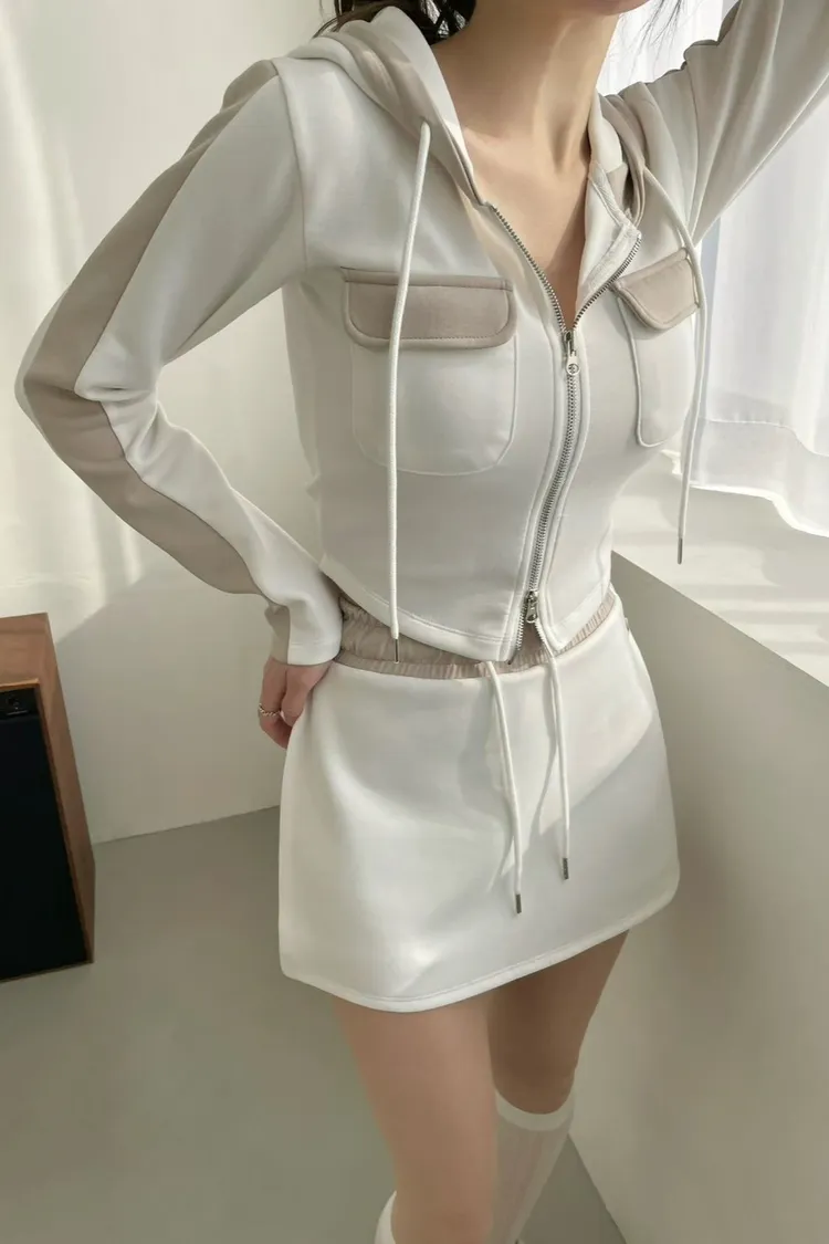 棉+聚酯+彈力 親膚薄款有彈性 拉鍊穿脫 連帽設計 是褲裙無口袋 夏天可穿