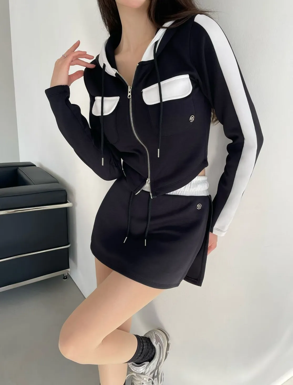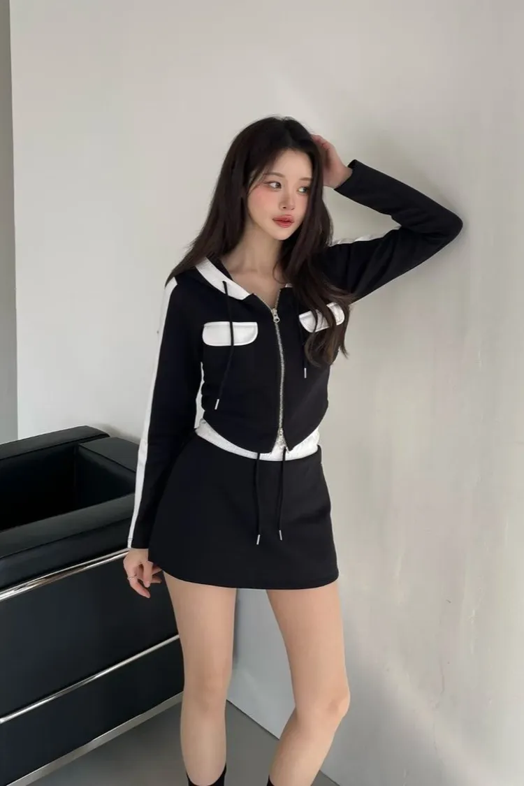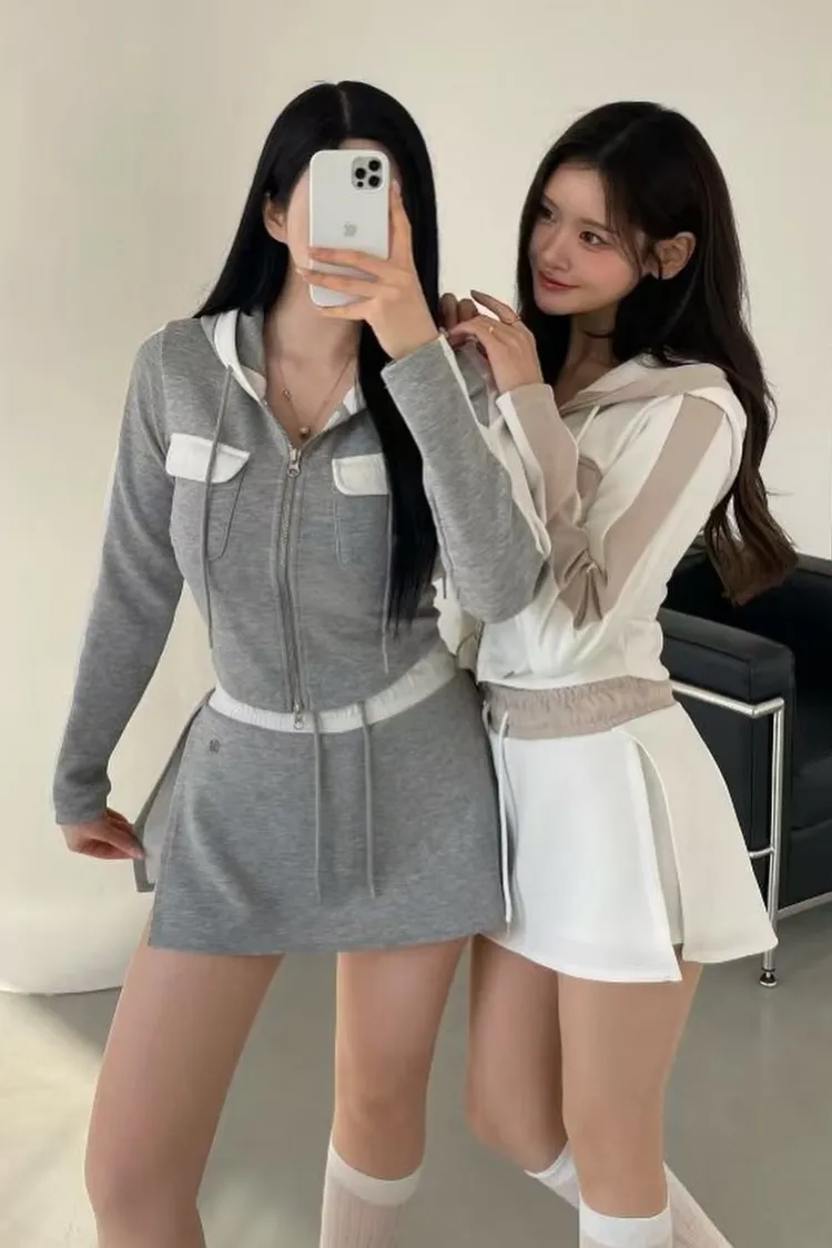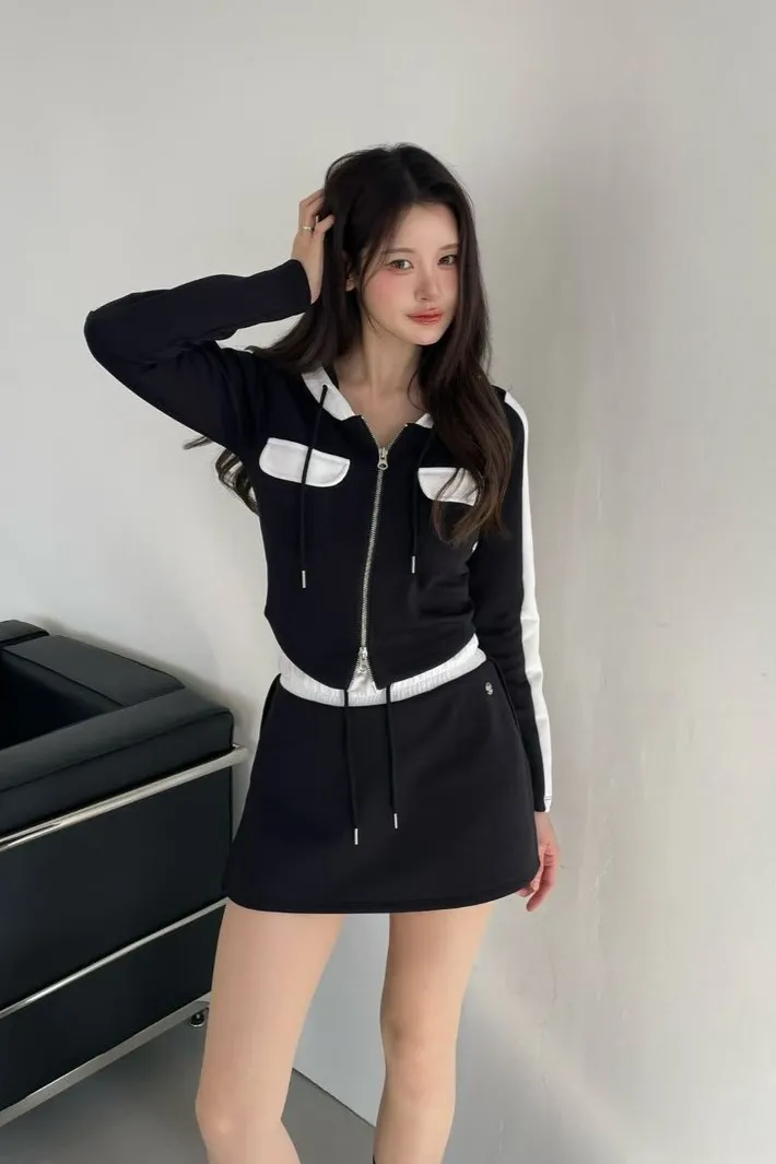 棉+聚酯+彈力 親膚薄款有彈性 拉鍊穿脫 連帽設計 是褲裙無口袋 夏天可穿
