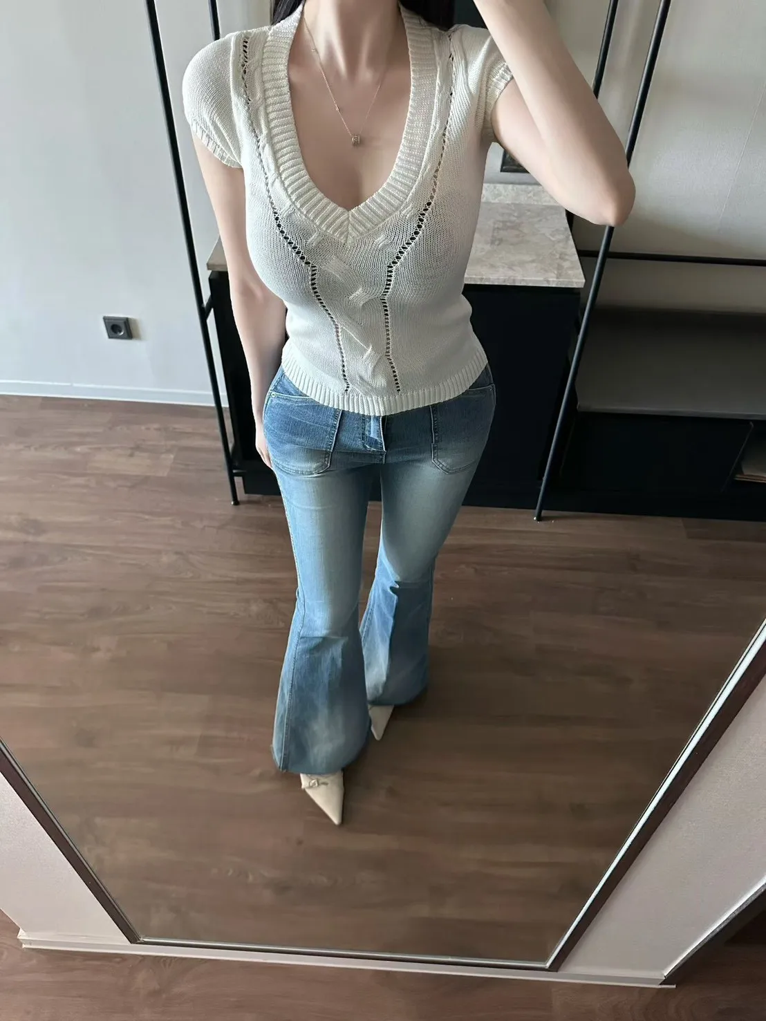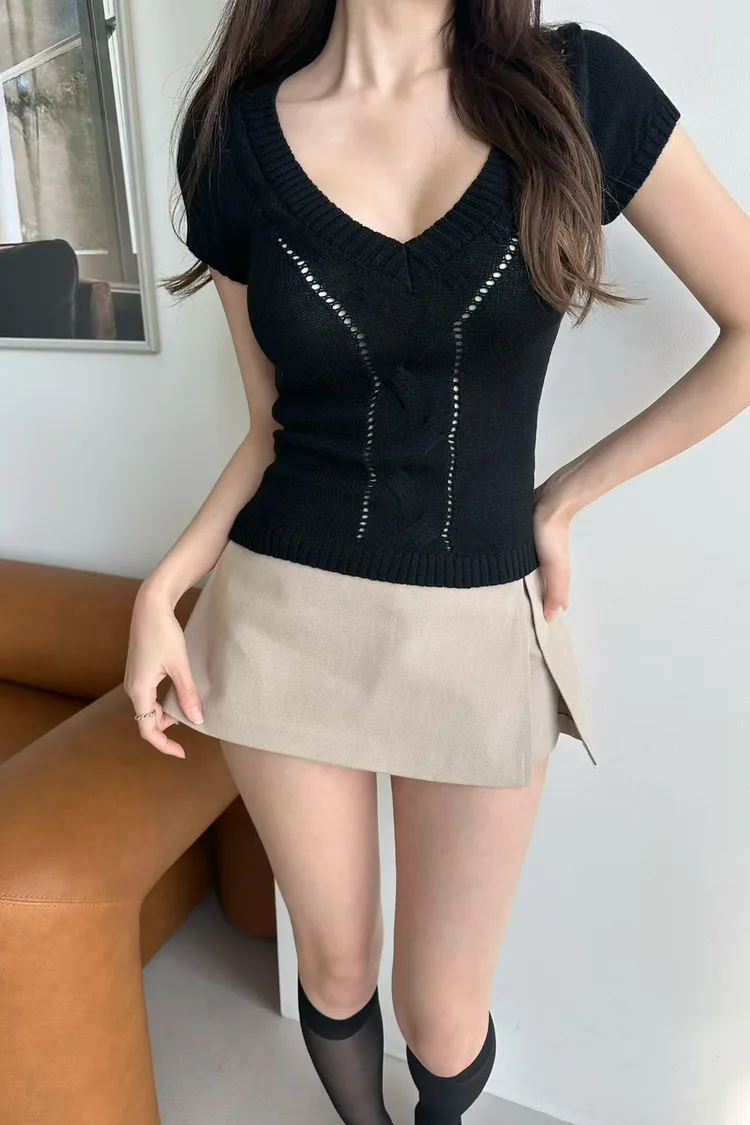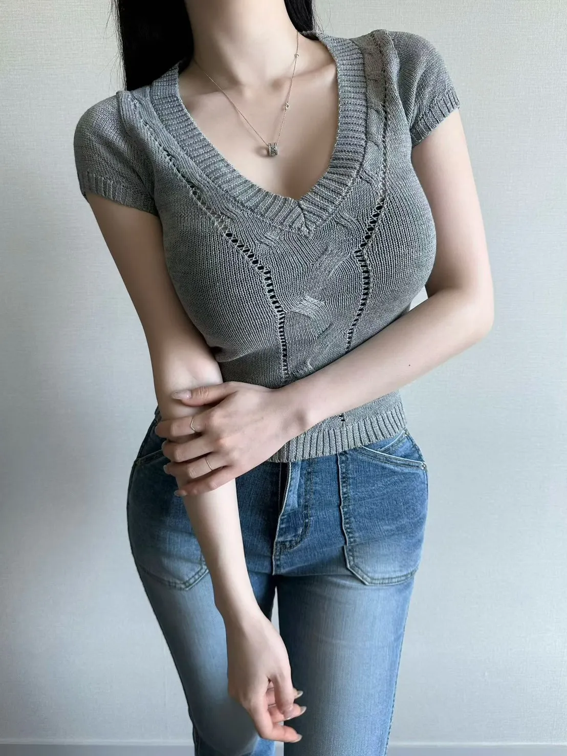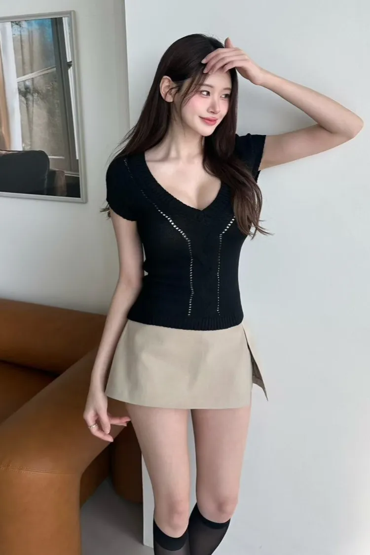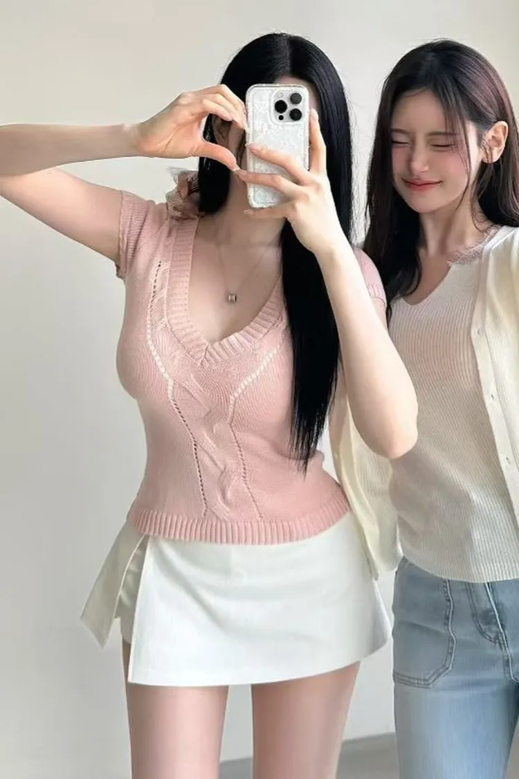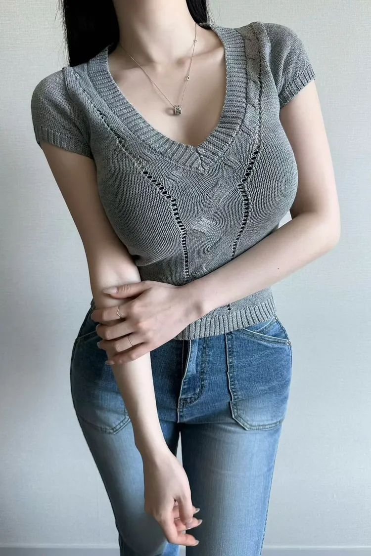 聚酯混紡 薄款親膚舒適 細洞透膚針織 彈性很大 穿到M號