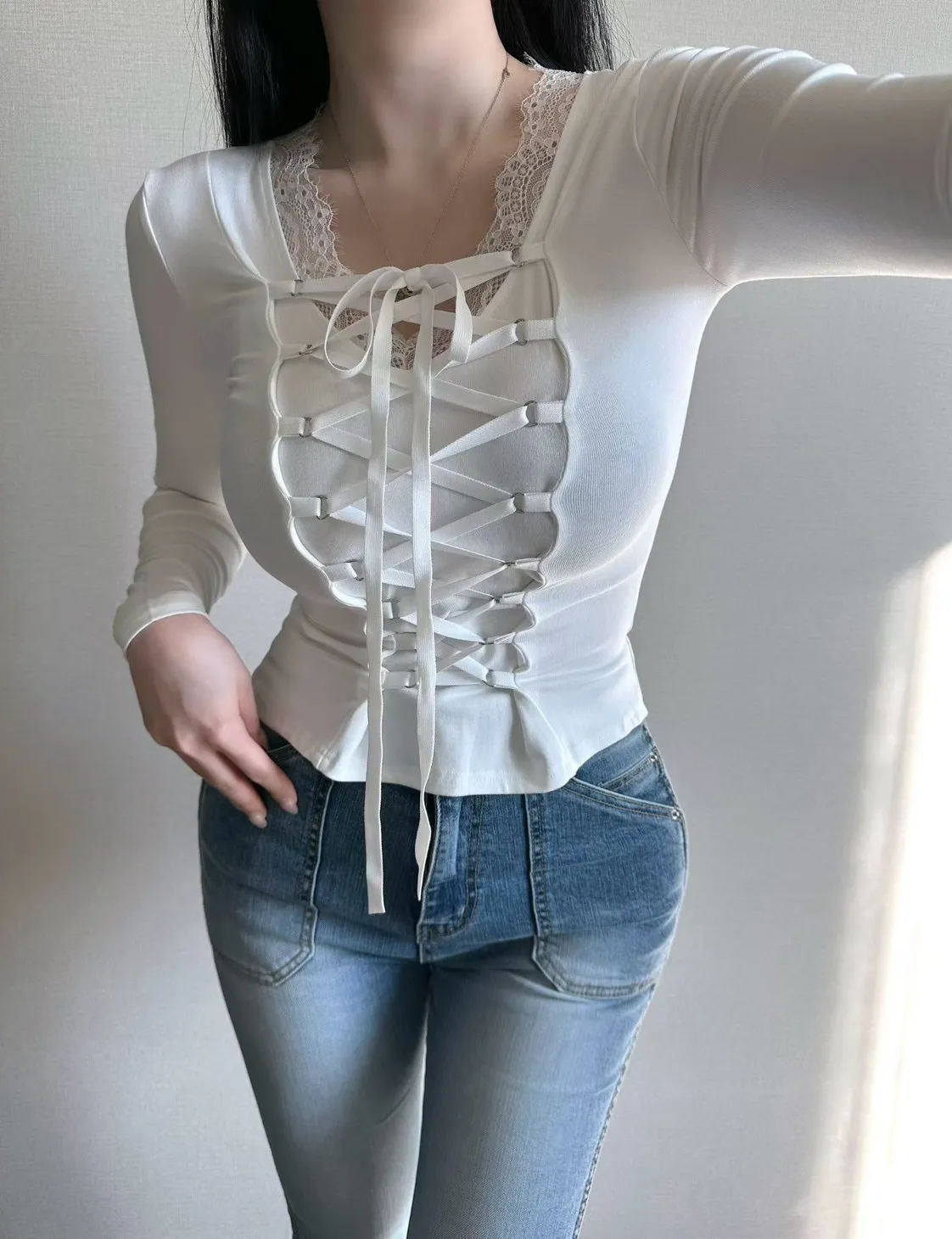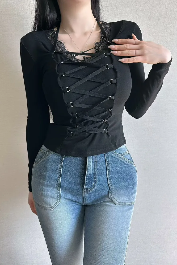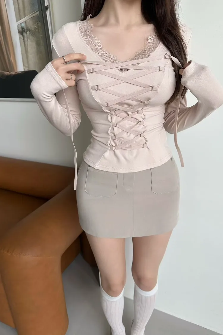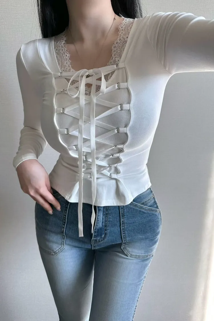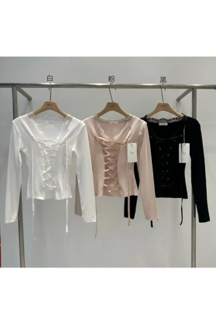 棉+聚酯彈力 薄款親膚 大彈性 胸口蕾絲 綁帶可調整鬆緊綁帶設計