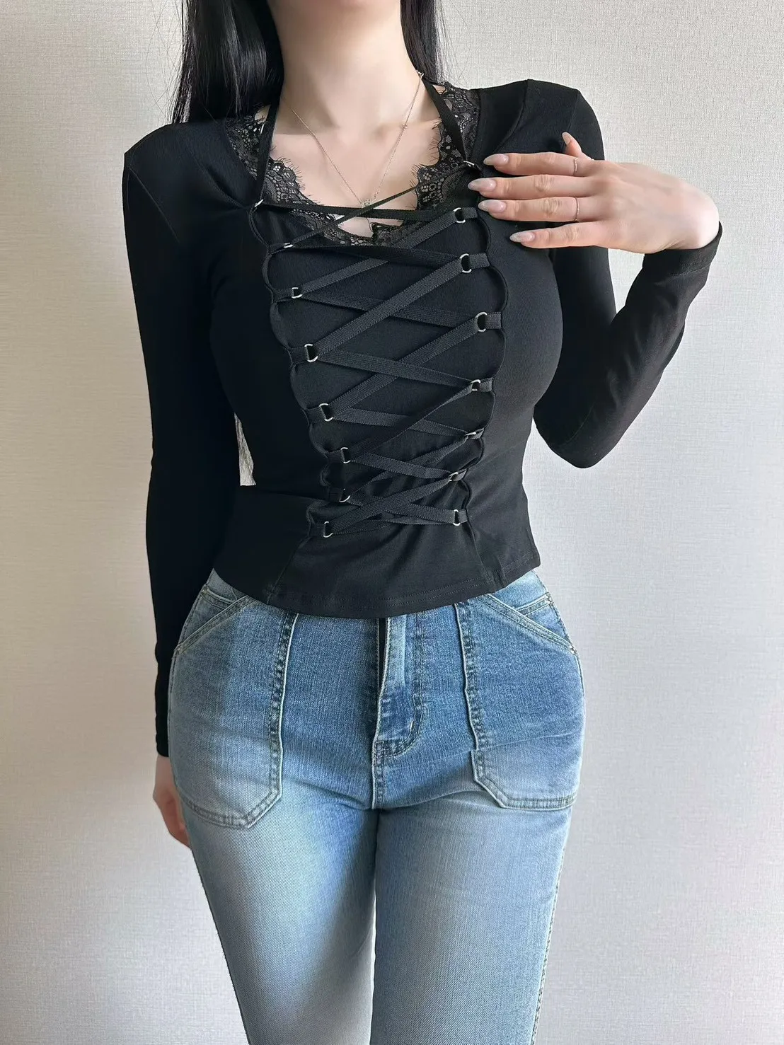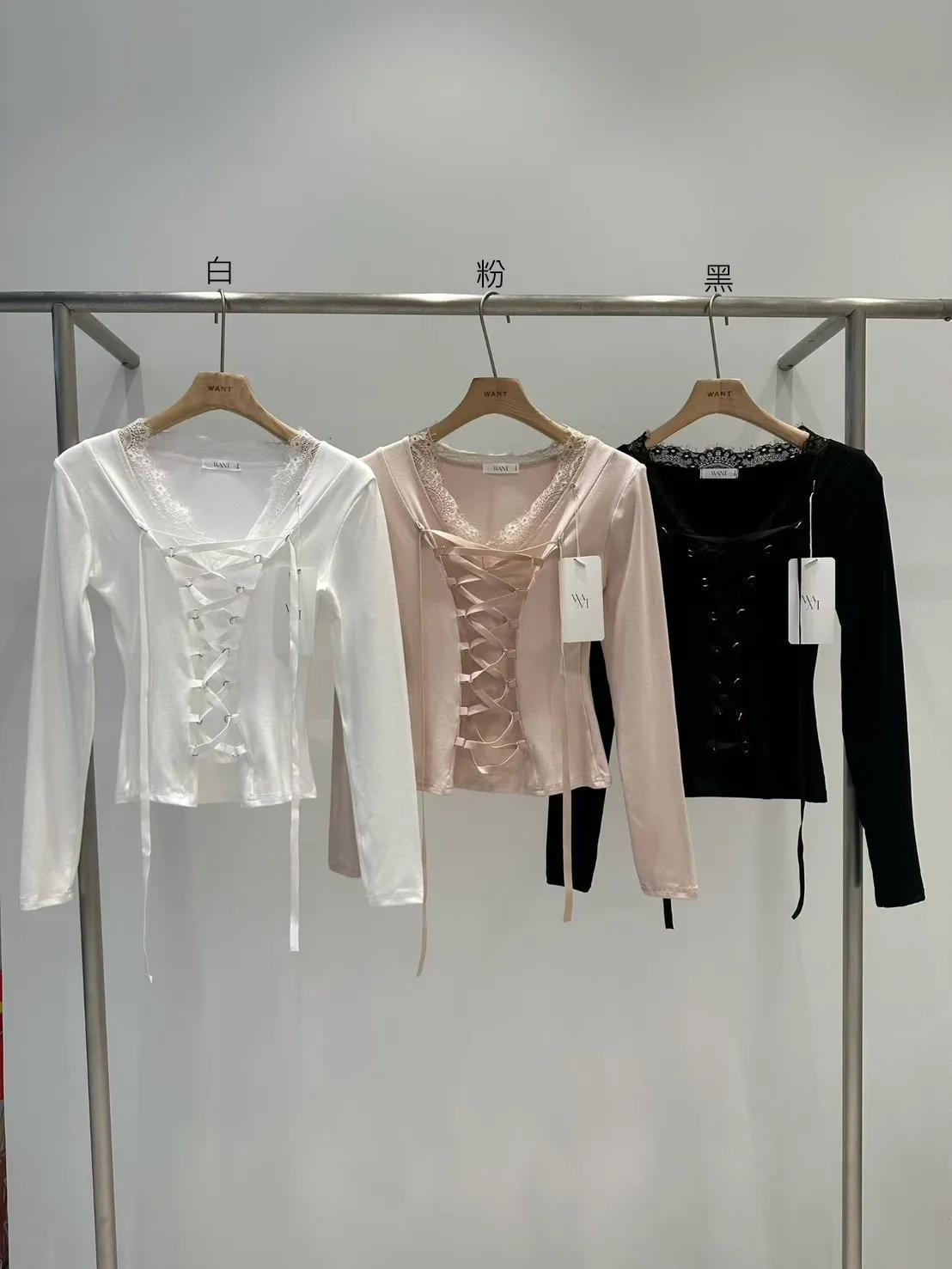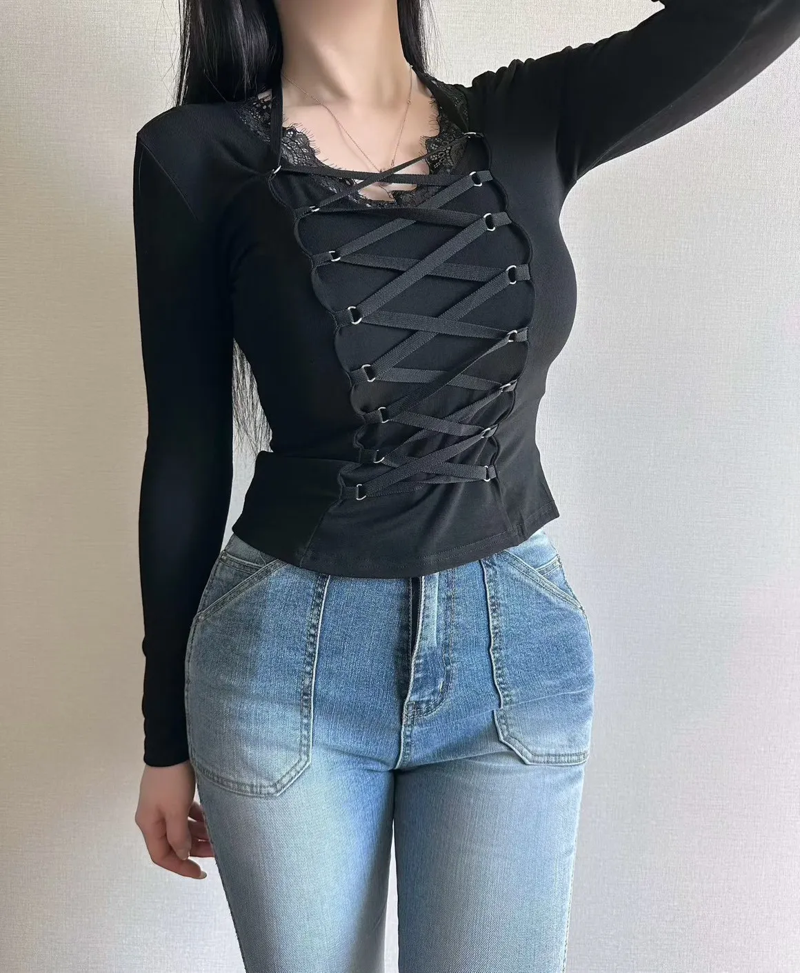 棉+聚酯彈力 薄款親膚 大彈性 胸口蕾絲 綁帶可調整鬆緊綁帶設計