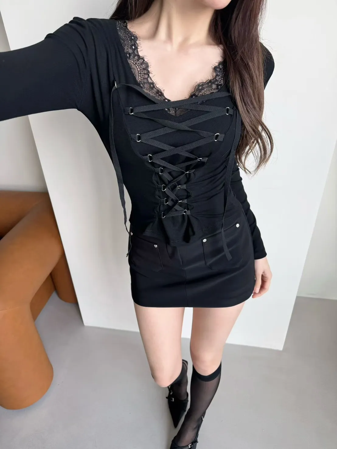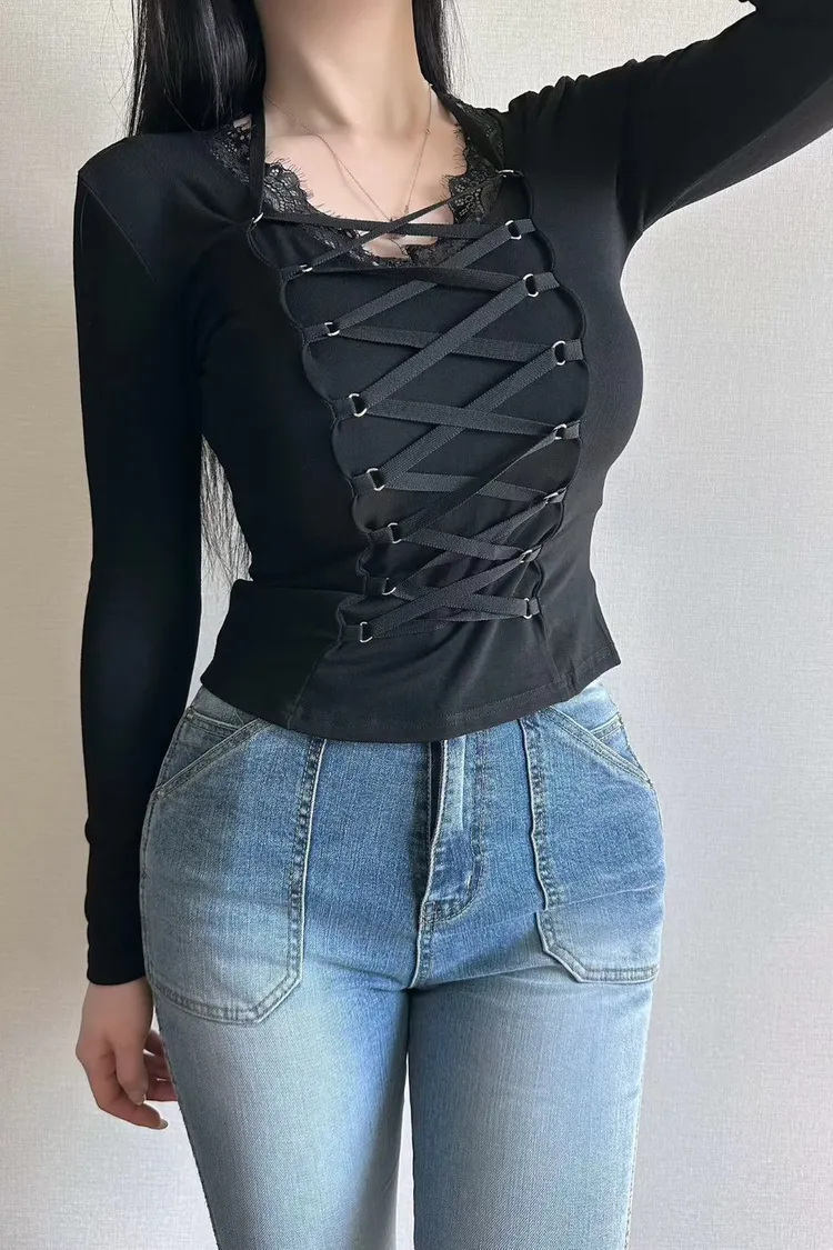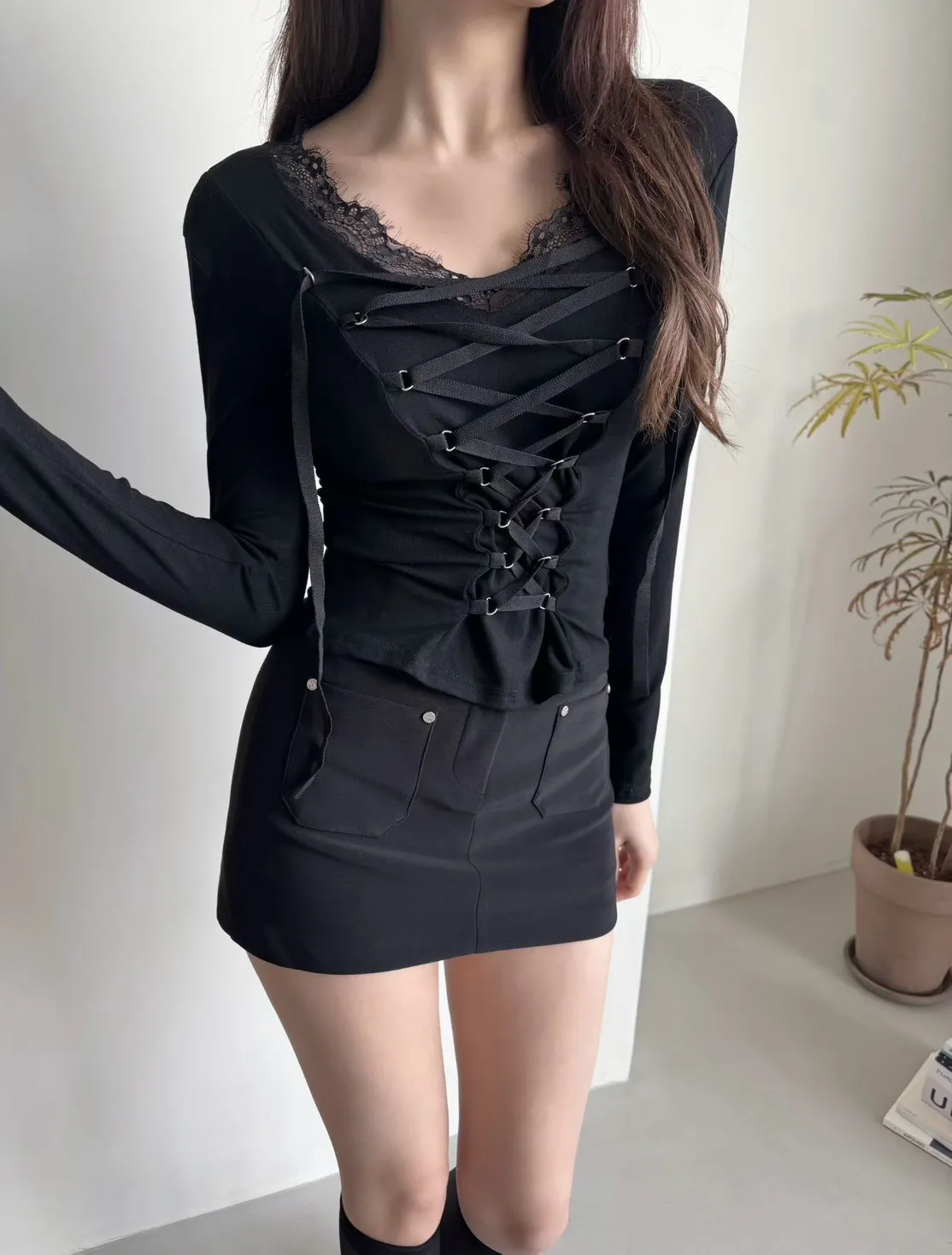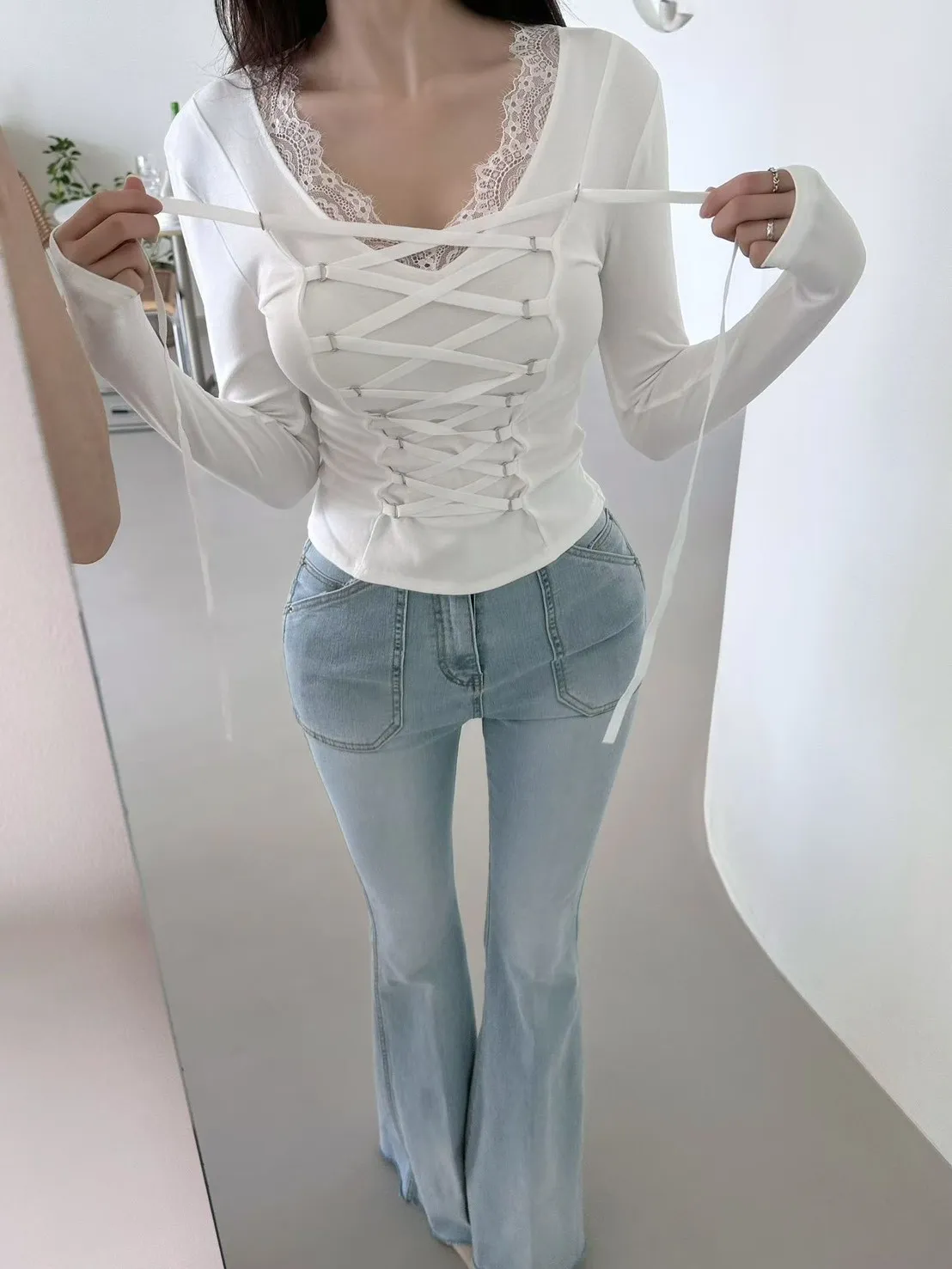 棉+聚酯彈力 薄款親膚 大彈性 胸口蕾絲 綁帶可調整鬆緊綁帶設計