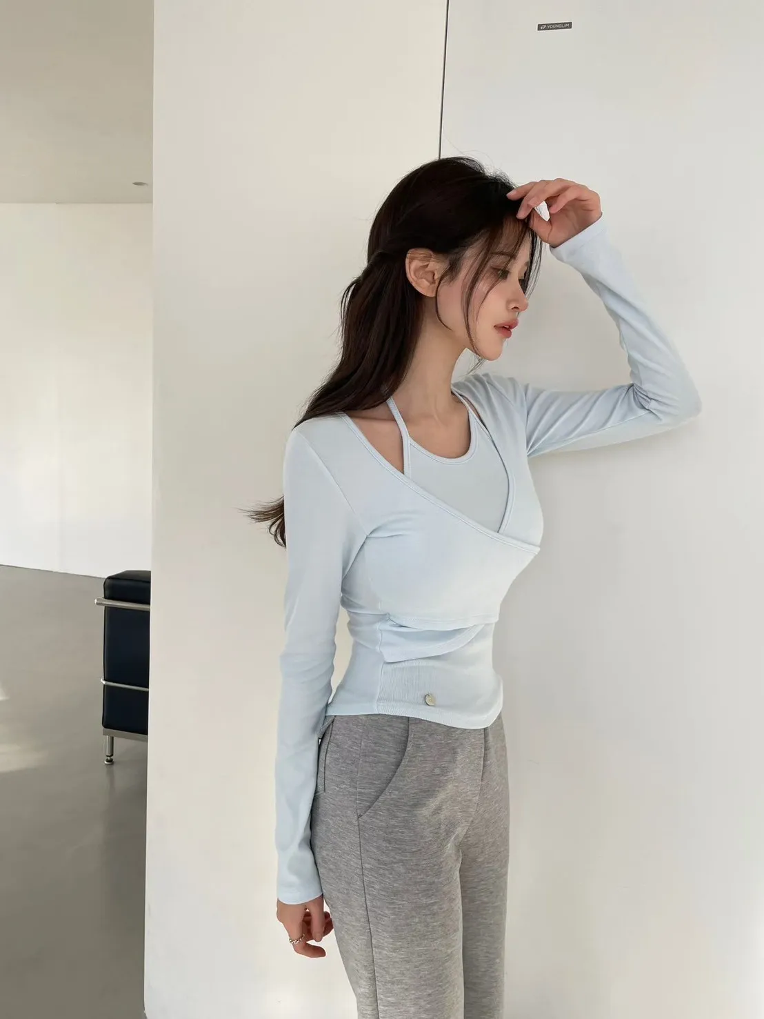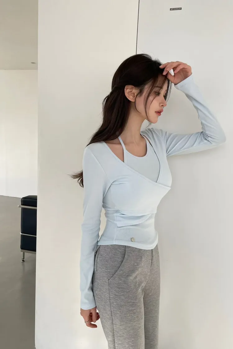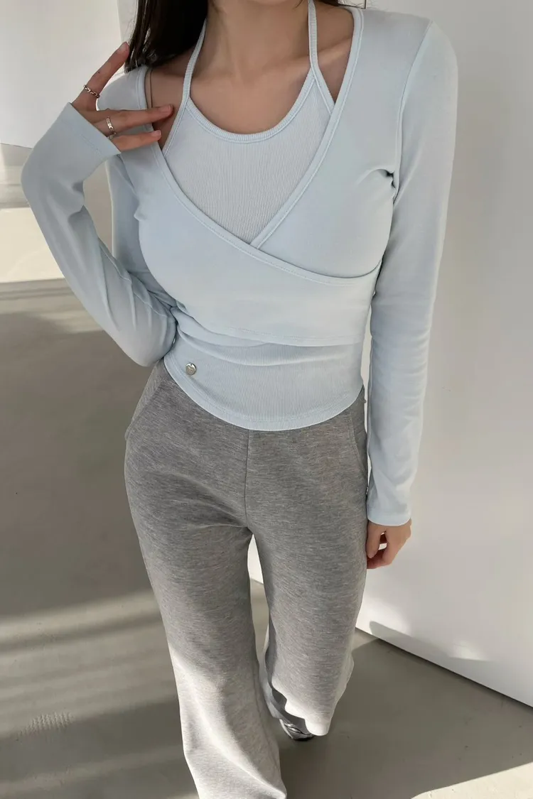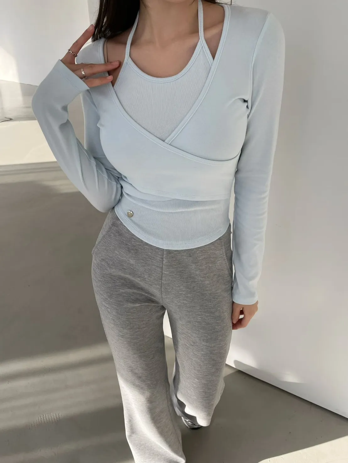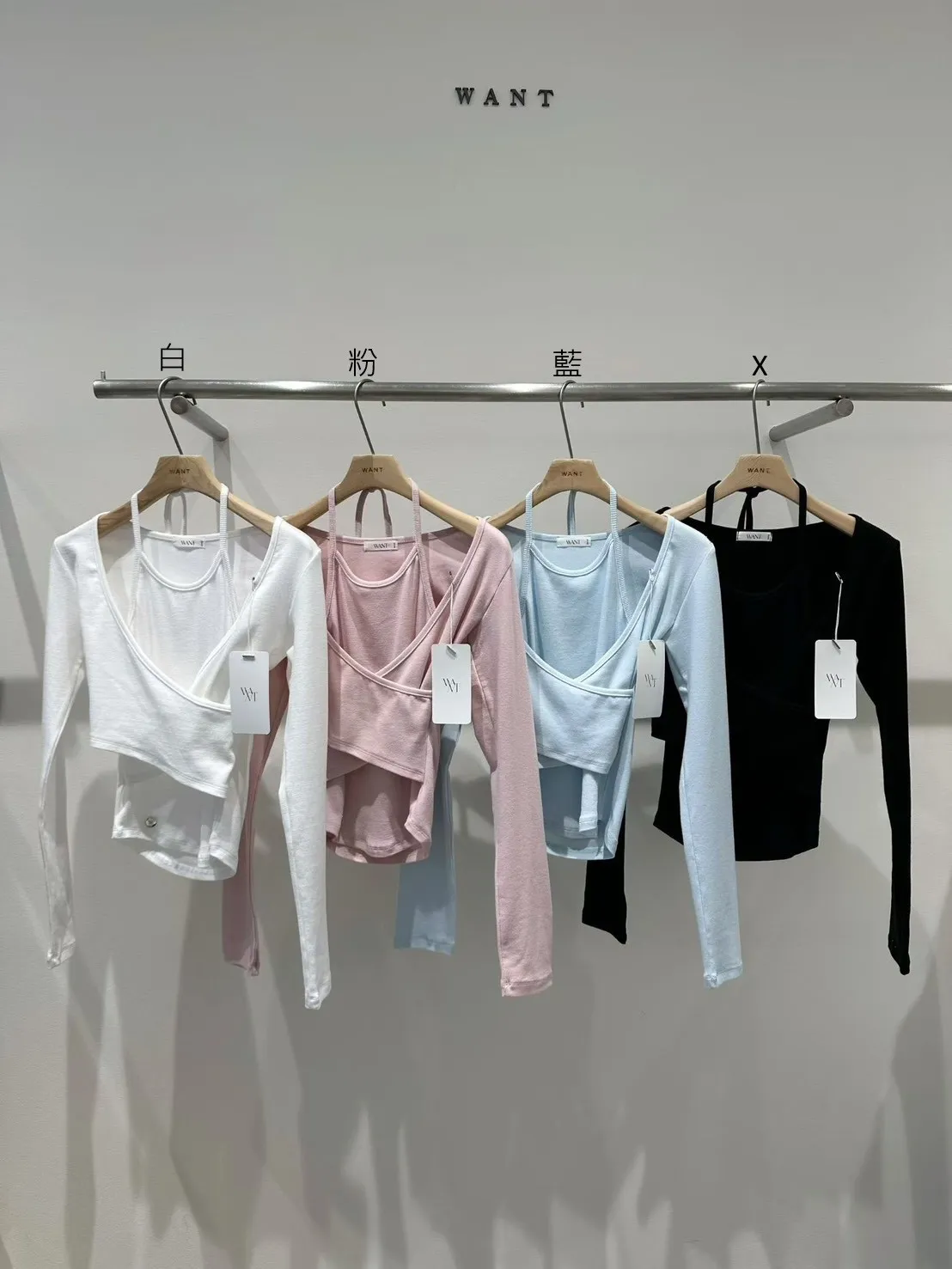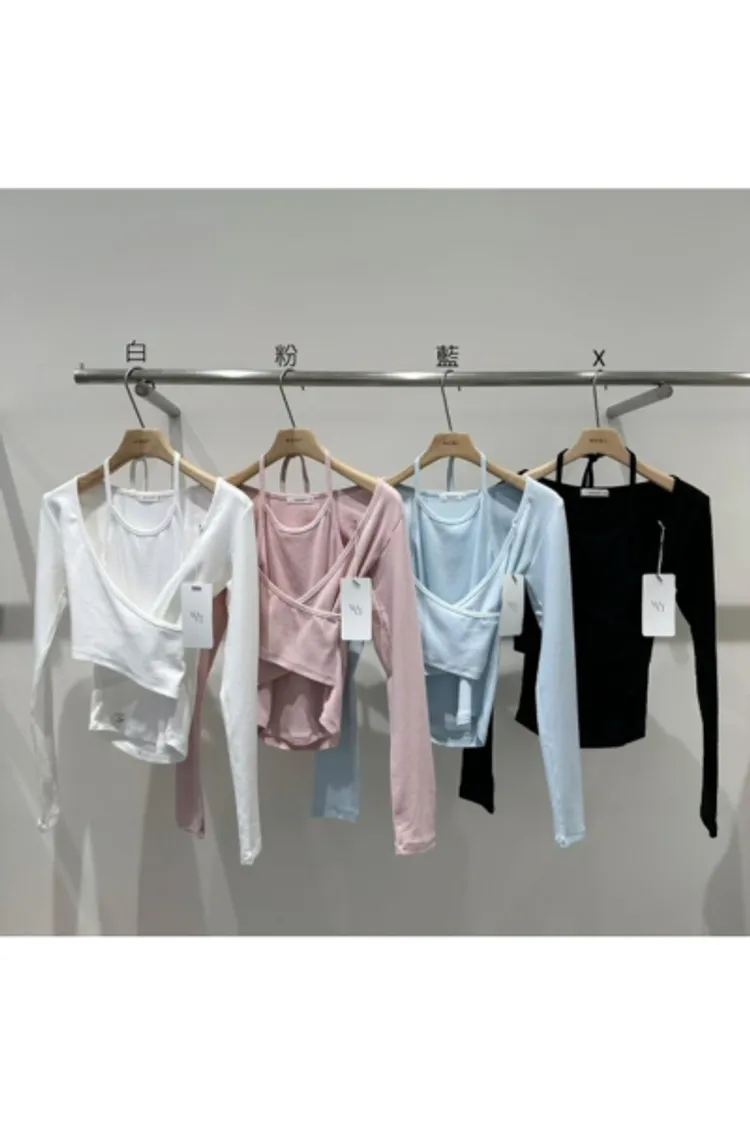 棉+聚酯+彈力 薄款透氣 有彈性 繞後頸綁帶 U型下擺 兩件不可拆