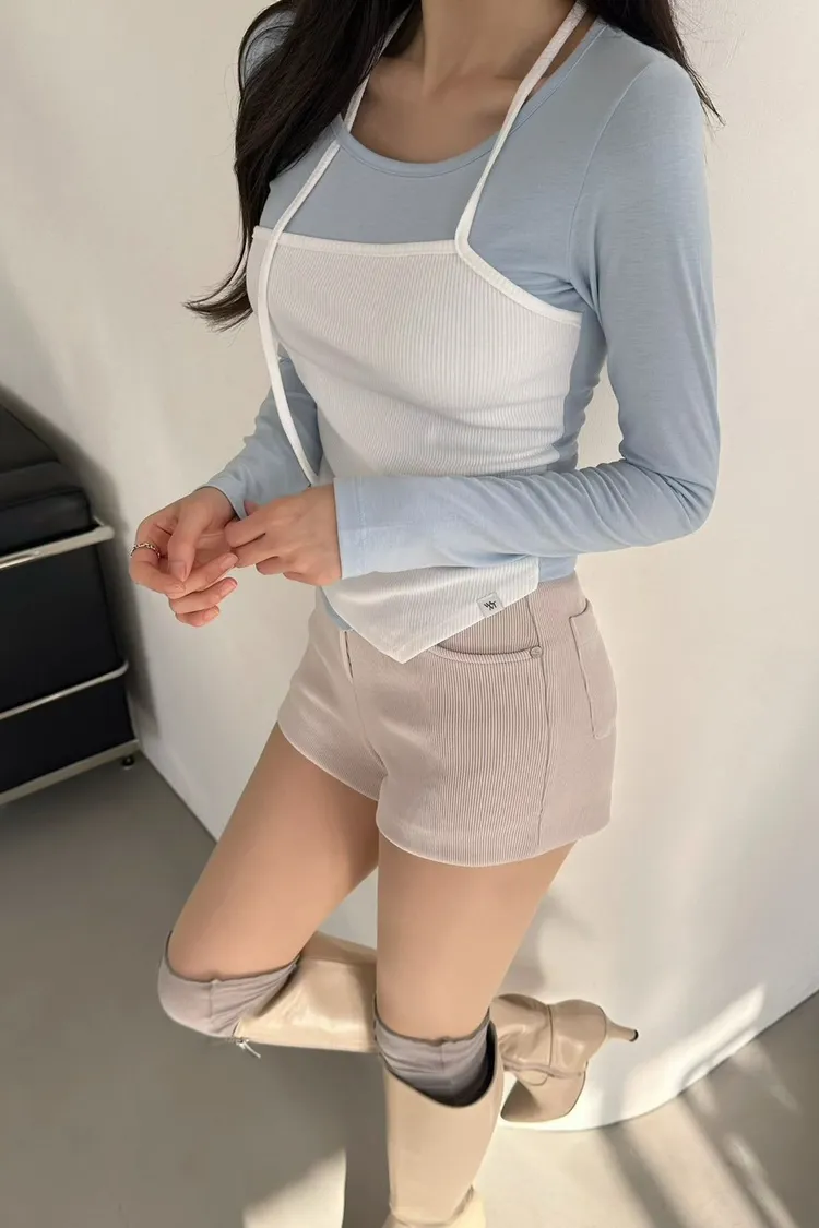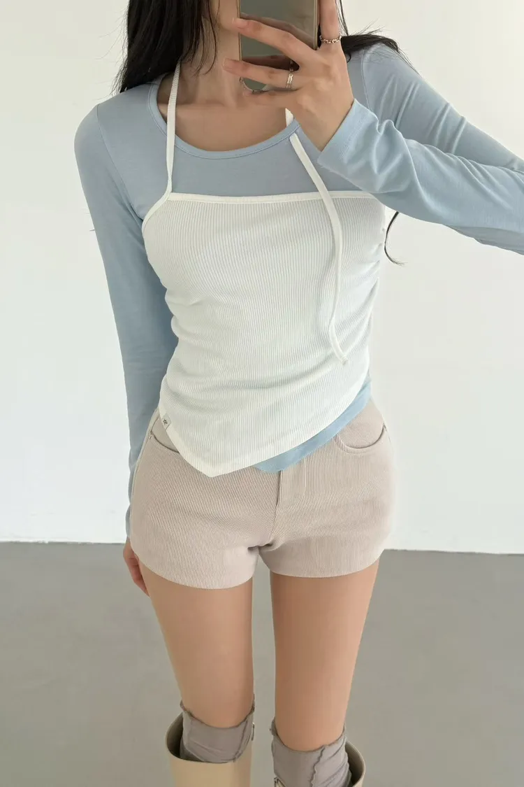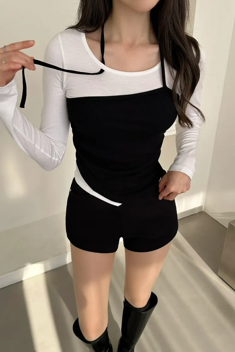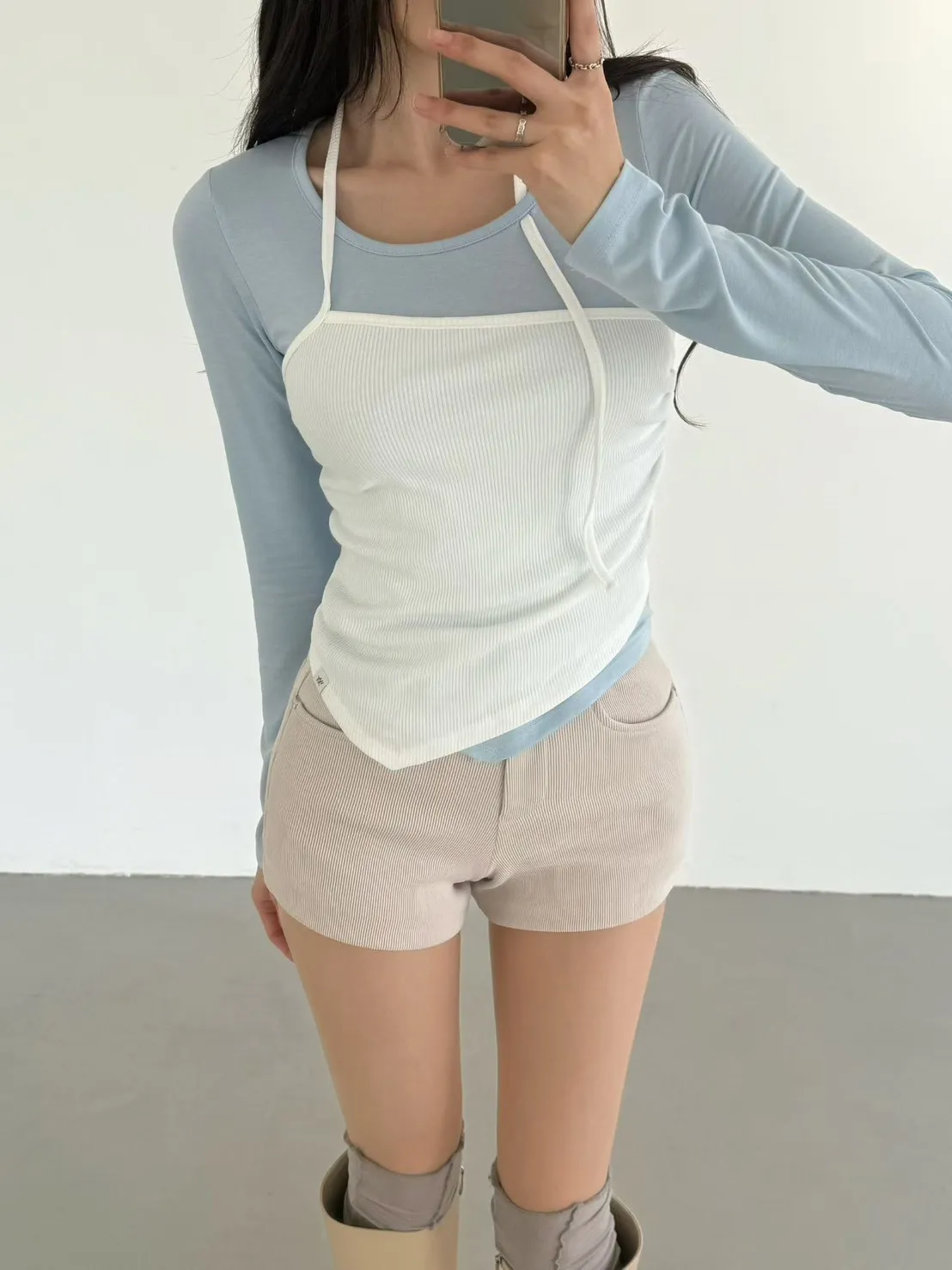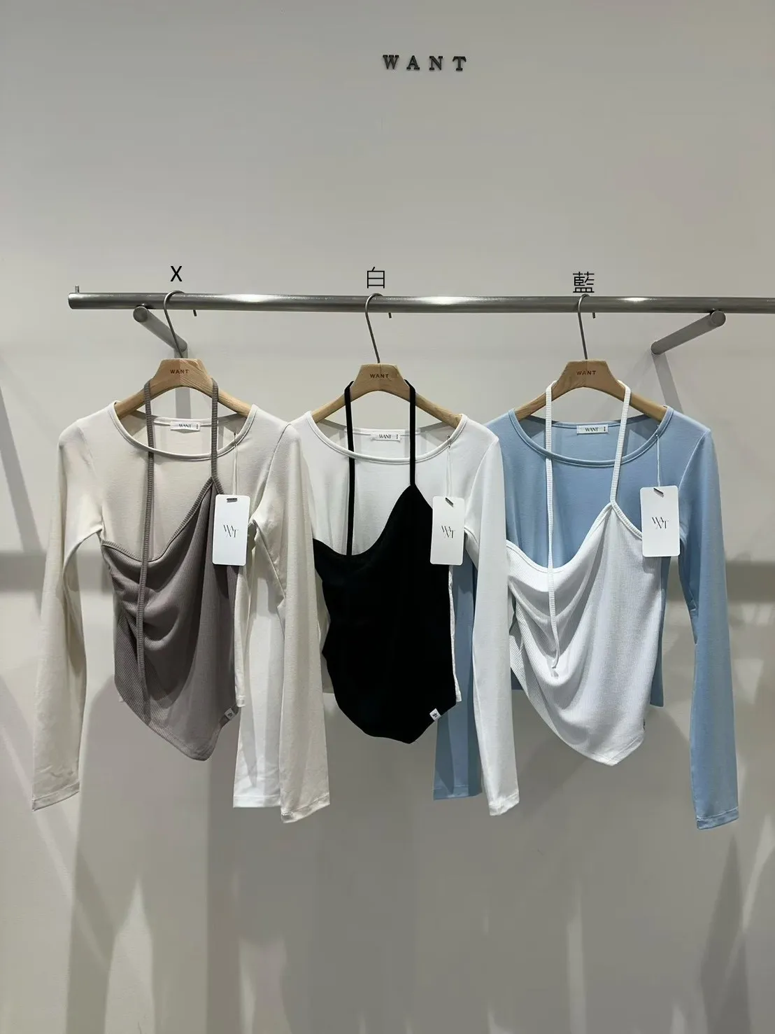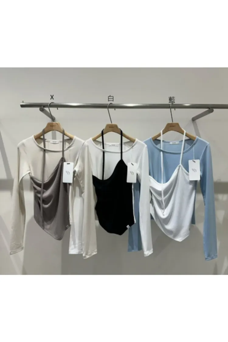 棉+聚酯+彈力 非常薄款 親膚透氣 細繩繞頸穿透內層衣 兩件不可拆