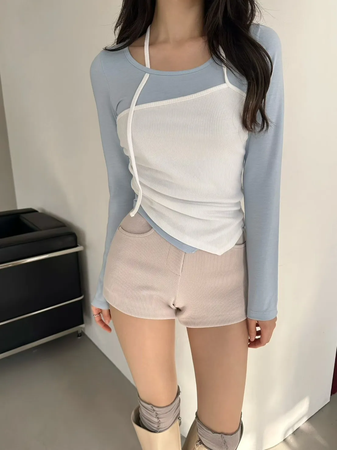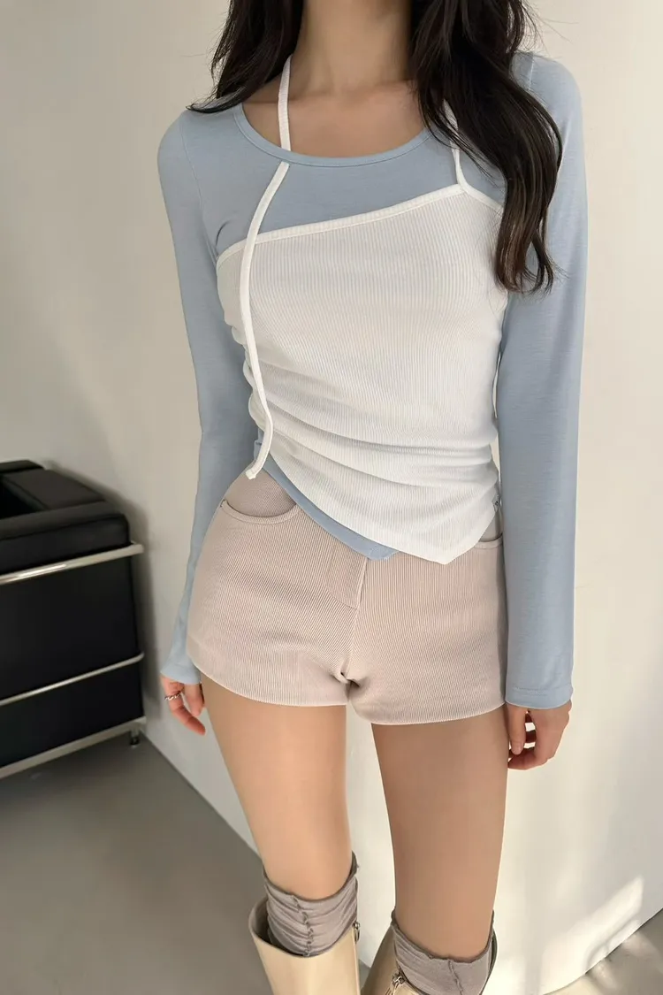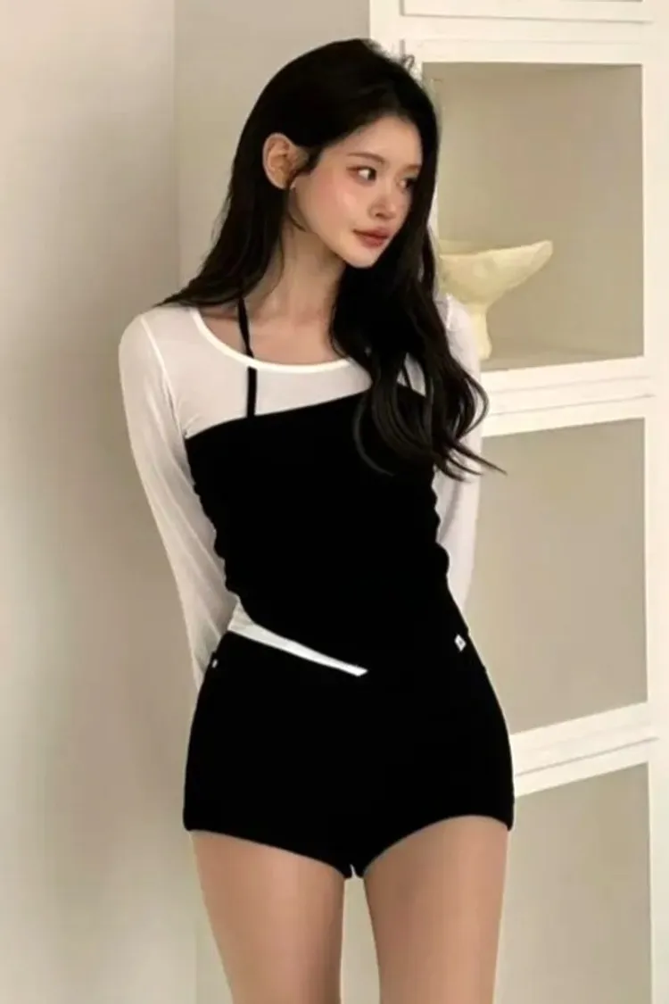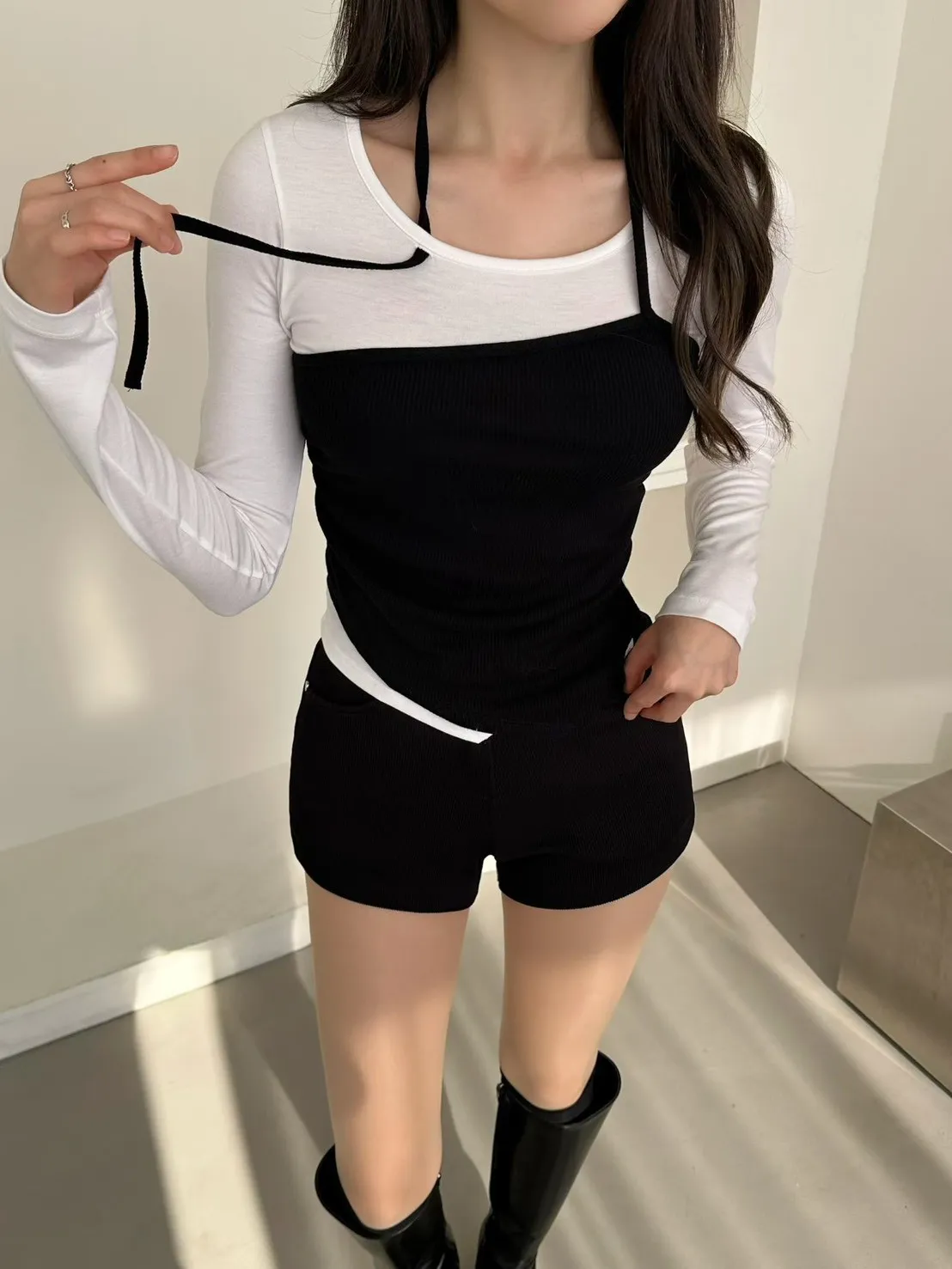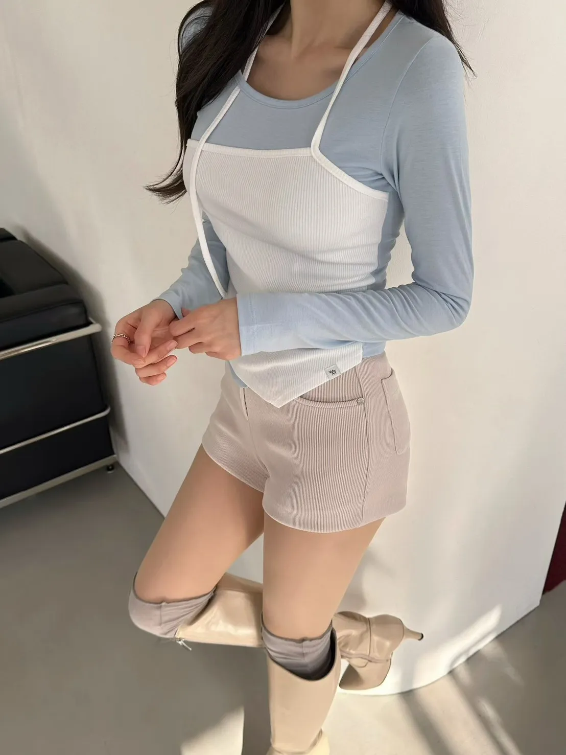 棉+聚酯+彈力 非常薄款 親膚透氣 細繩繞頸穿透內層衣 兩件不可拆