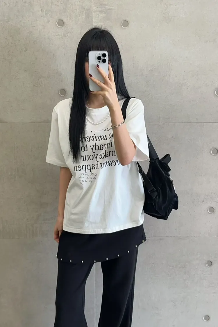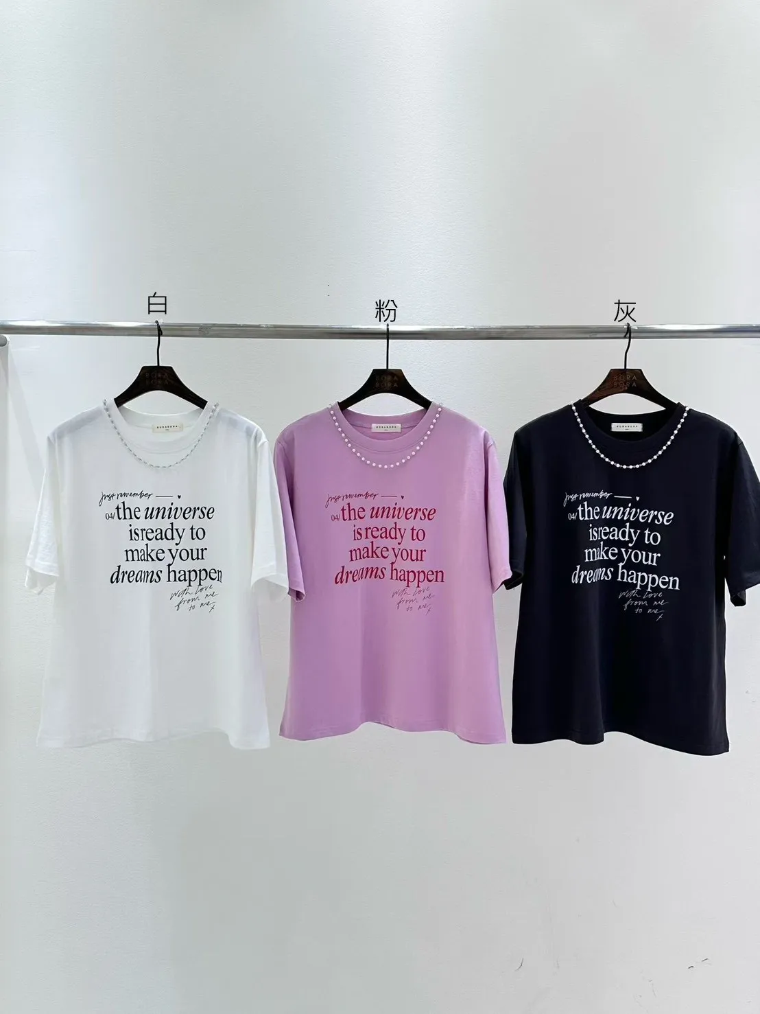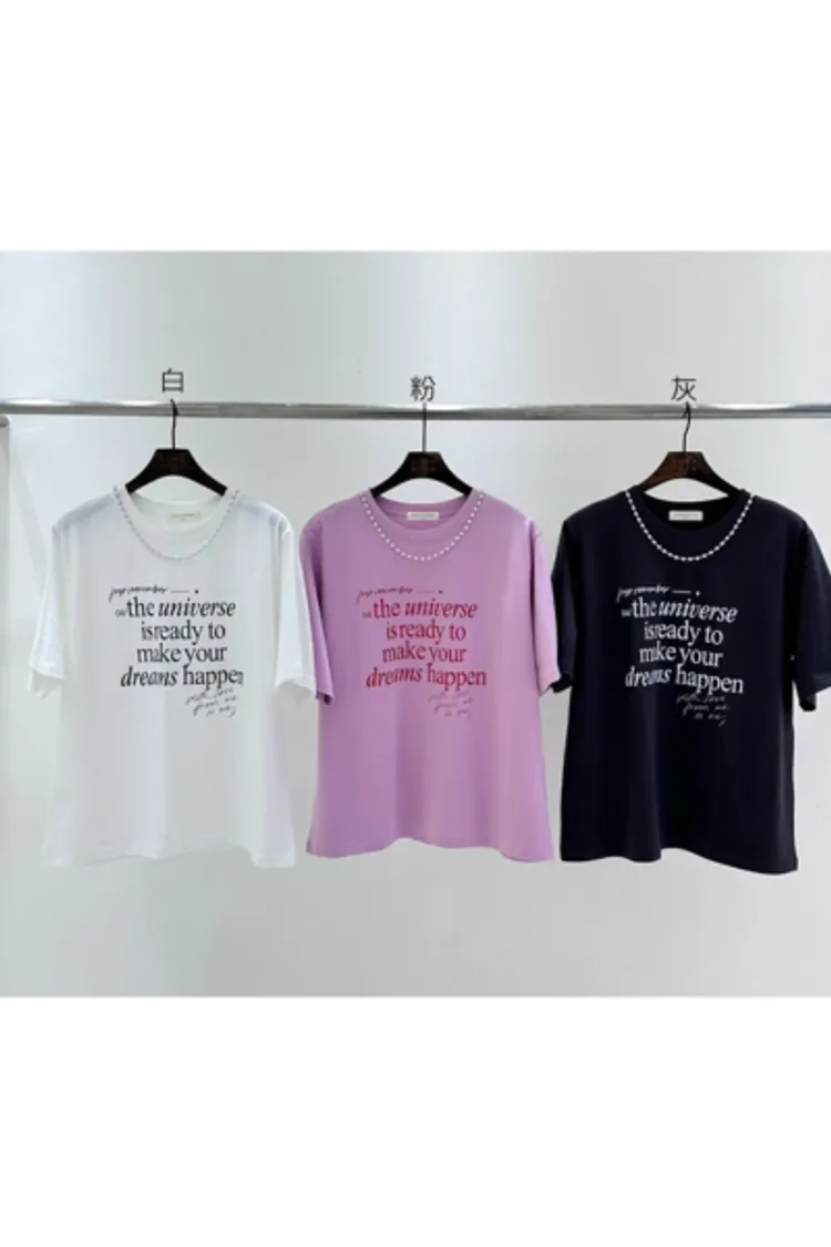 棉 薄款舒適 珍珠鍊可拆 百搭英文T 經典設計款 L號友善 bora