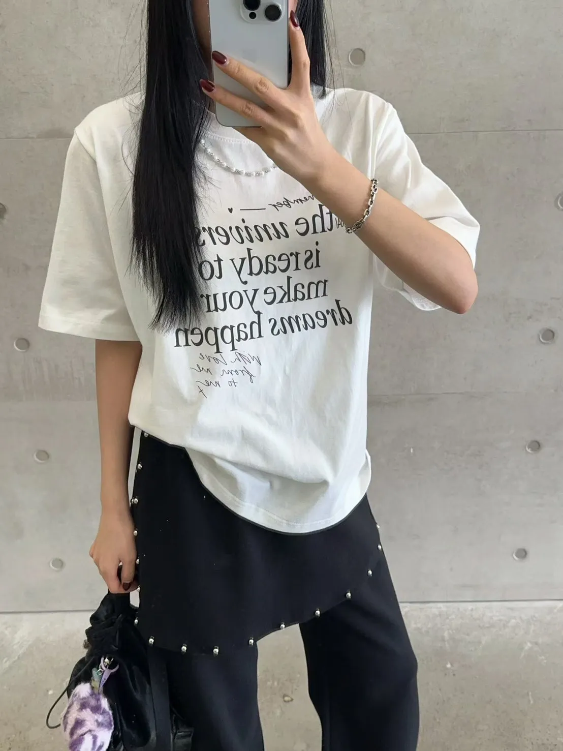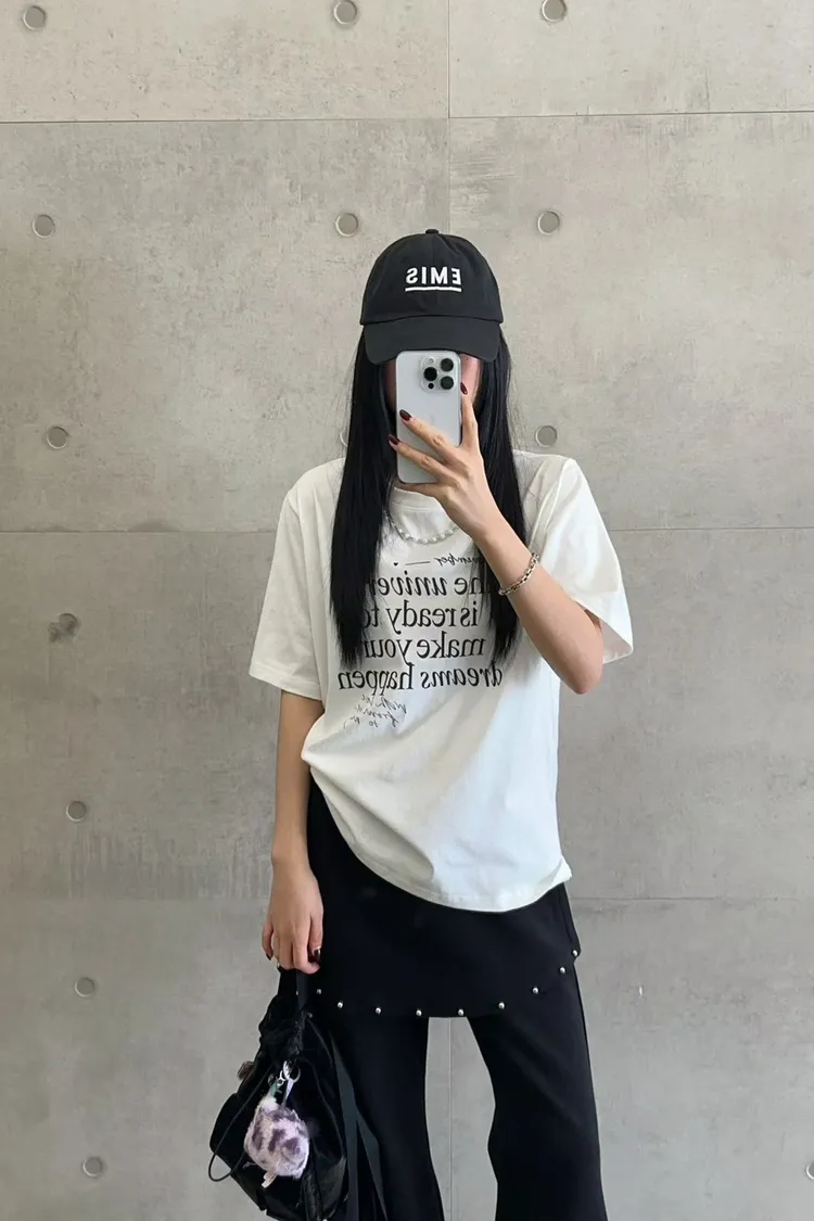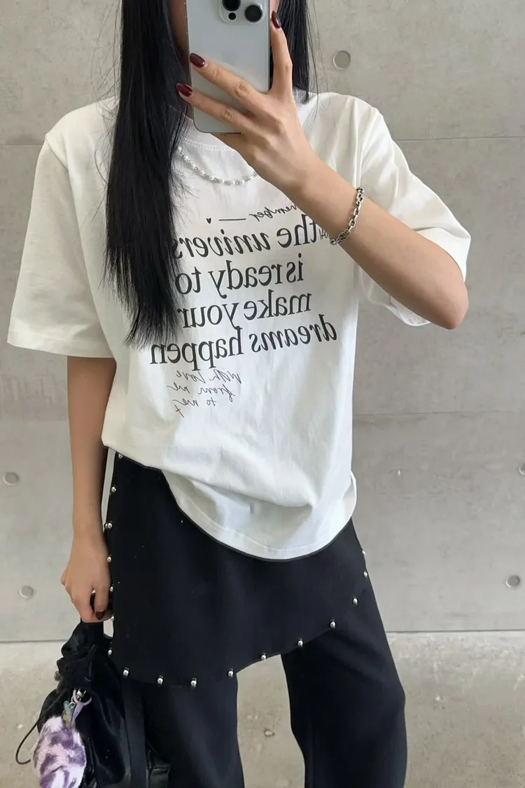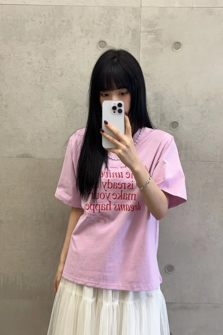 棉 薄款舒適 珍珠鍊可拆 百搭英文T 經典設計款 L號友善 bora
