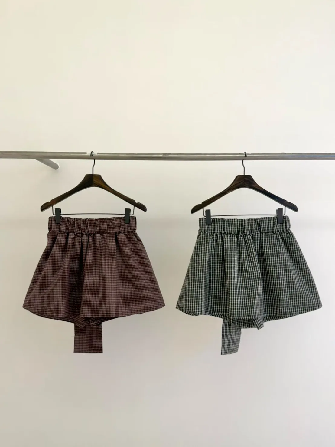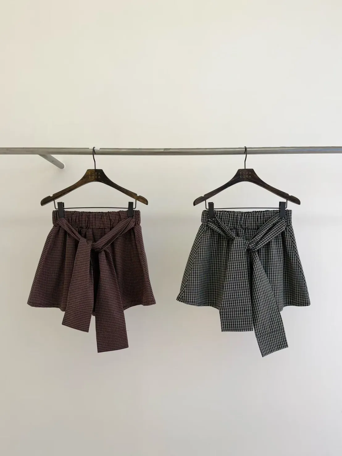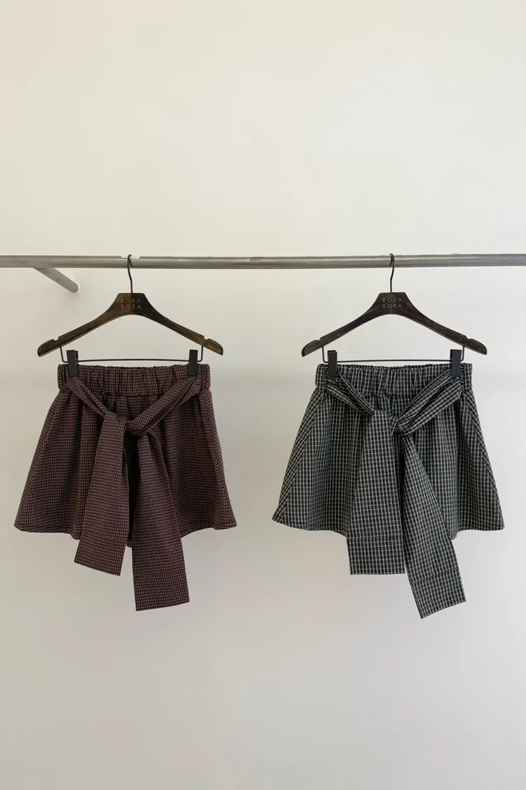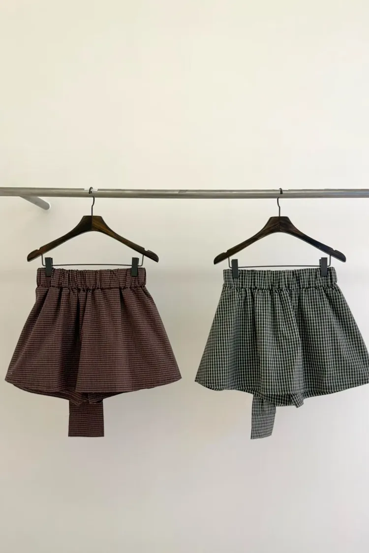 棉+聚酯 薄款細格面料 Aline顯瘦 簡單好看 全腰寬鬆緊 bora