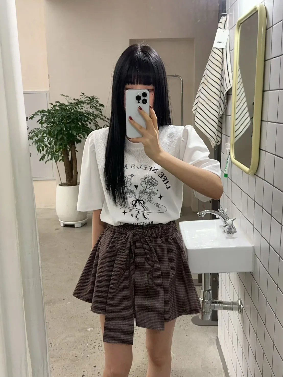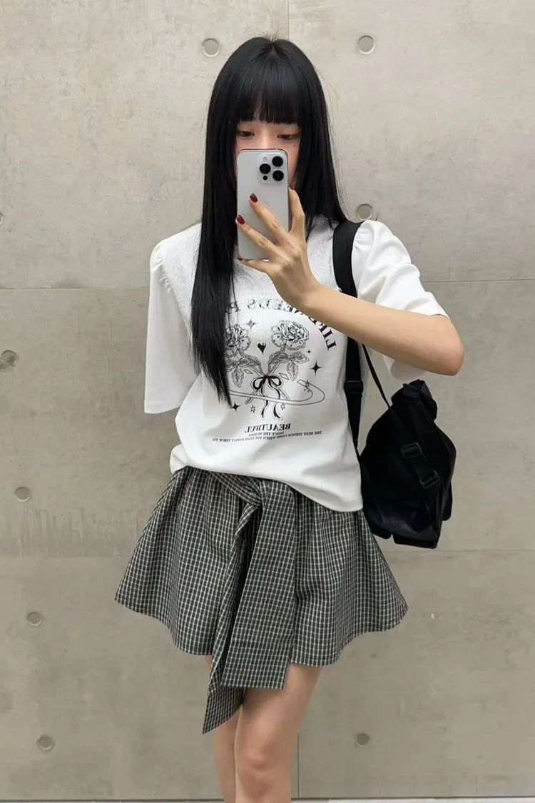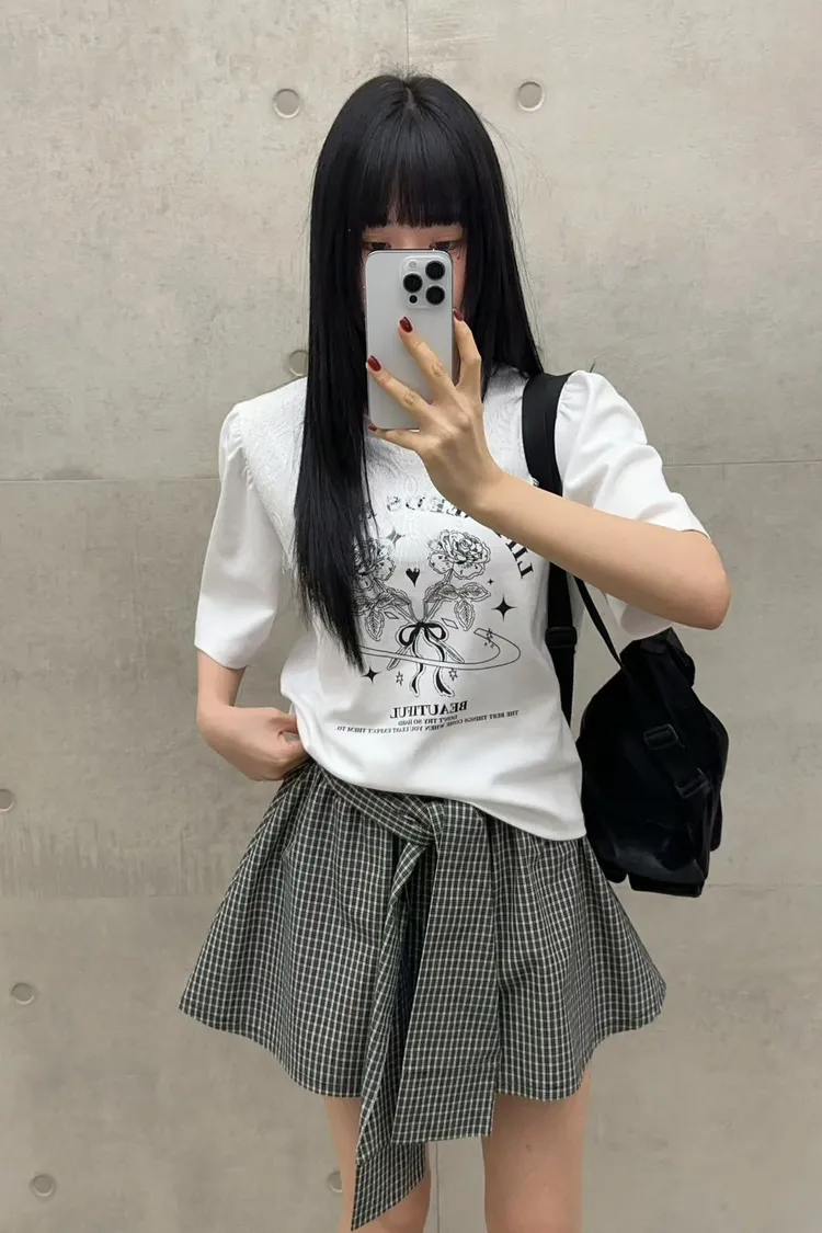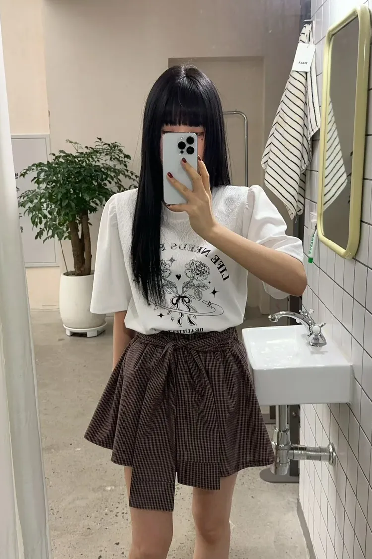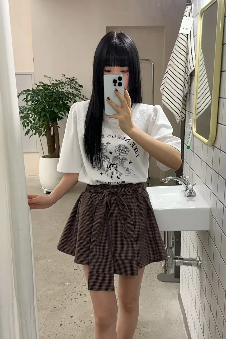棉+聚酯 薄款細格面料 Aline顯瘦 簡單好看 全腰寬鬆緊 bora