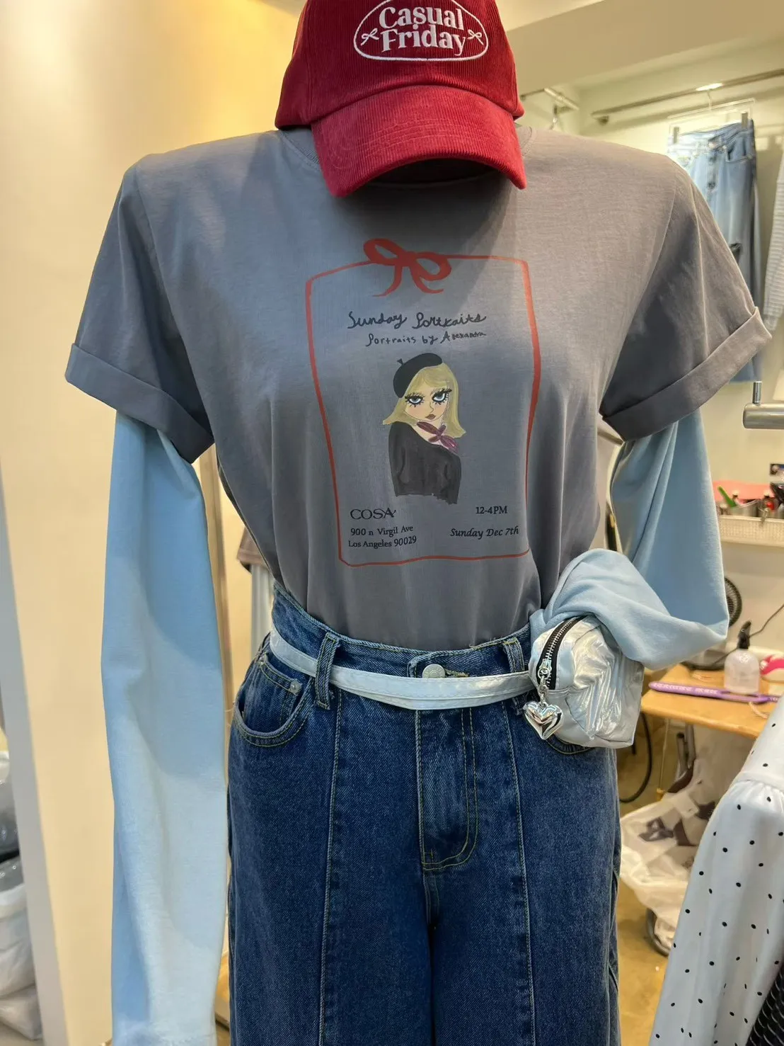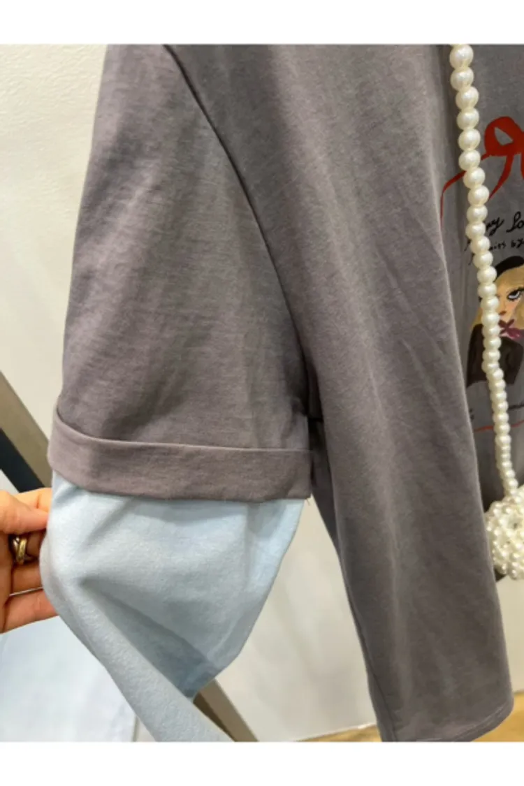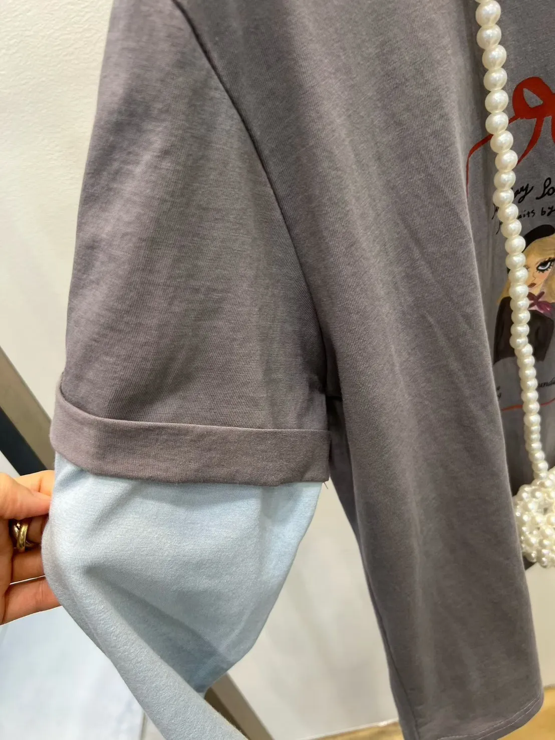 棉+彈力 薄款親膚 袖子是莫代爾觸感 假兩件不可拆 blue
