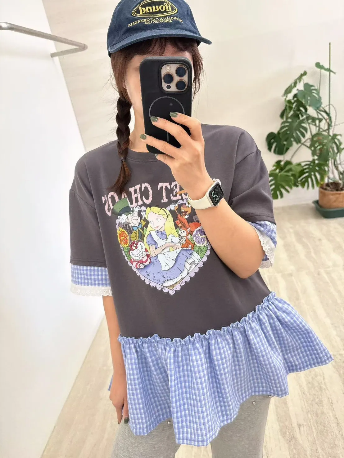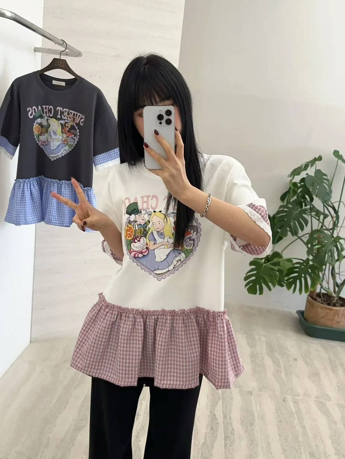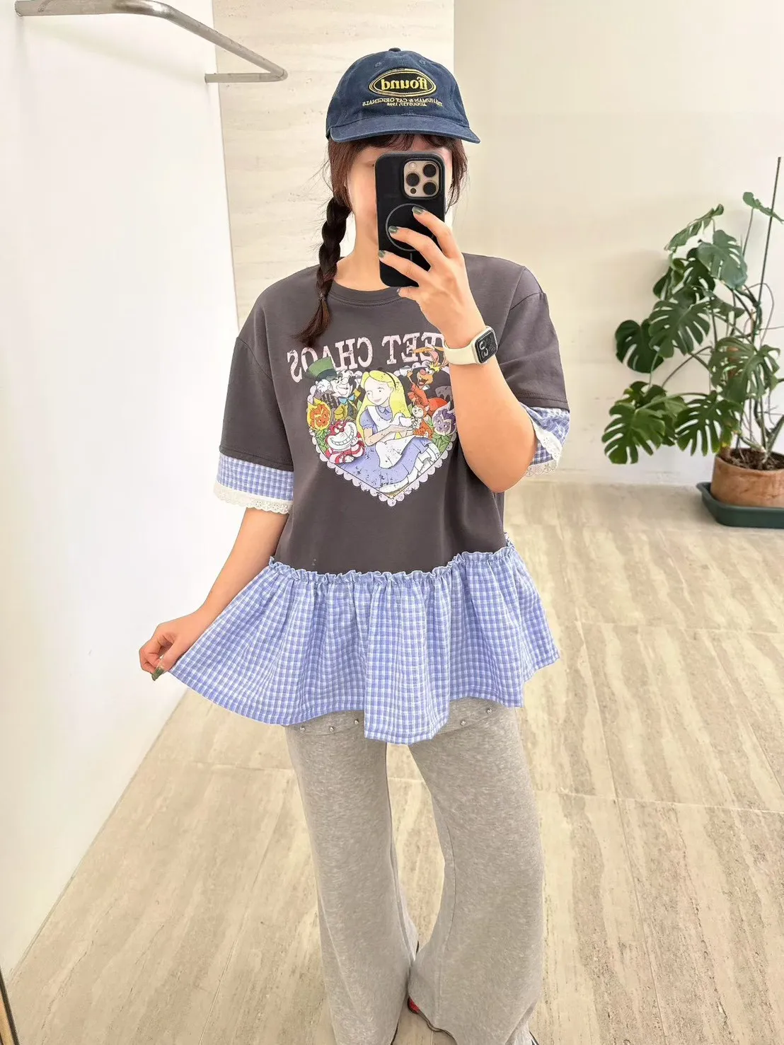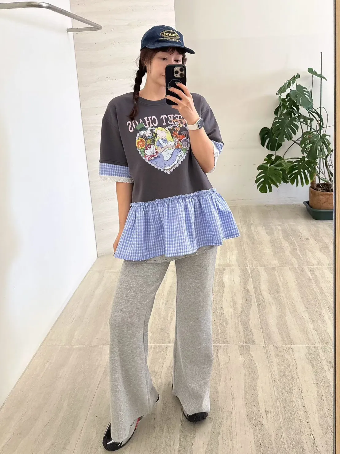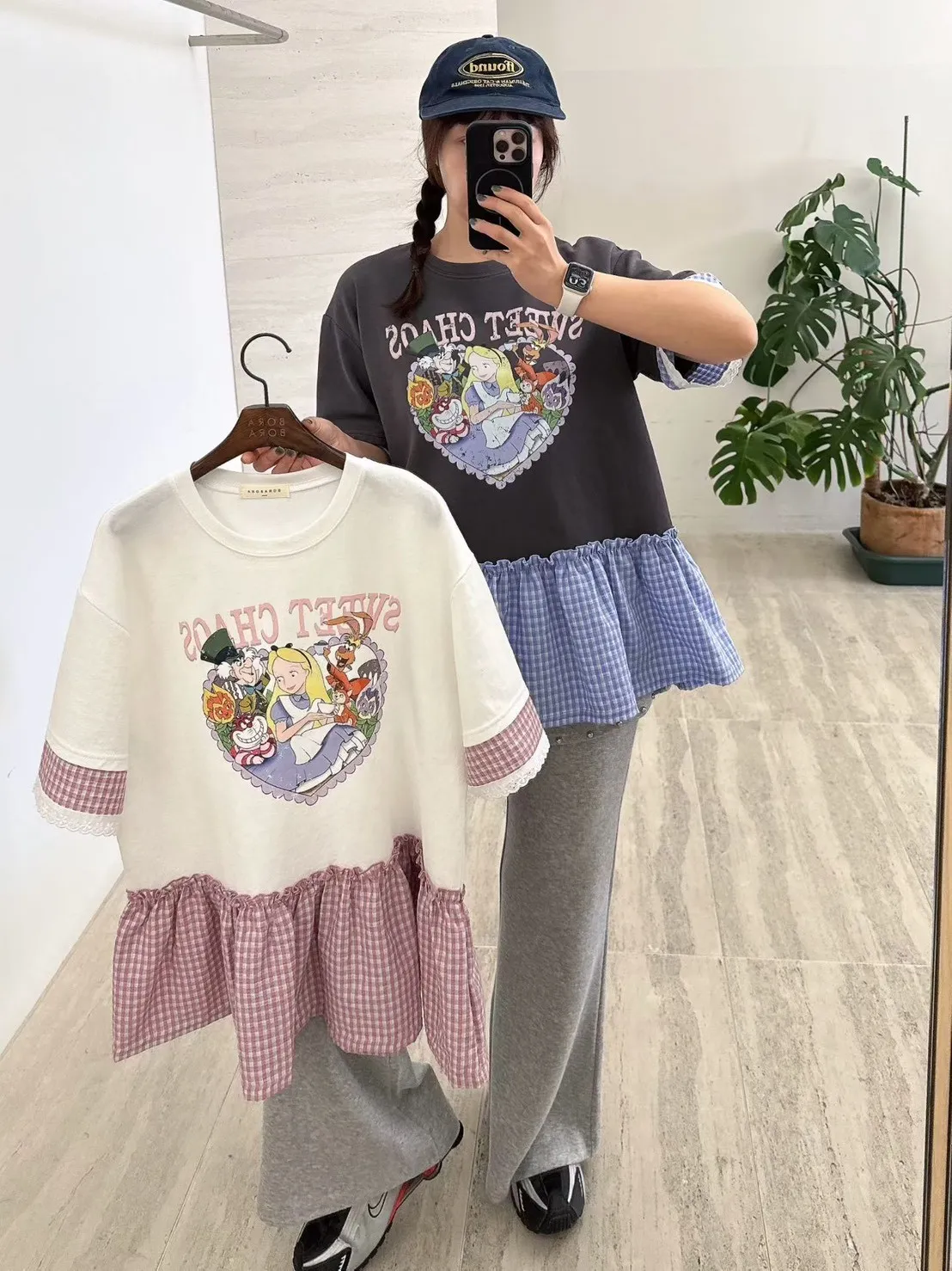 棉 薄款透氣 袖口蕾絲 拼接細格 厚度適中 適合台灣天氣 bora