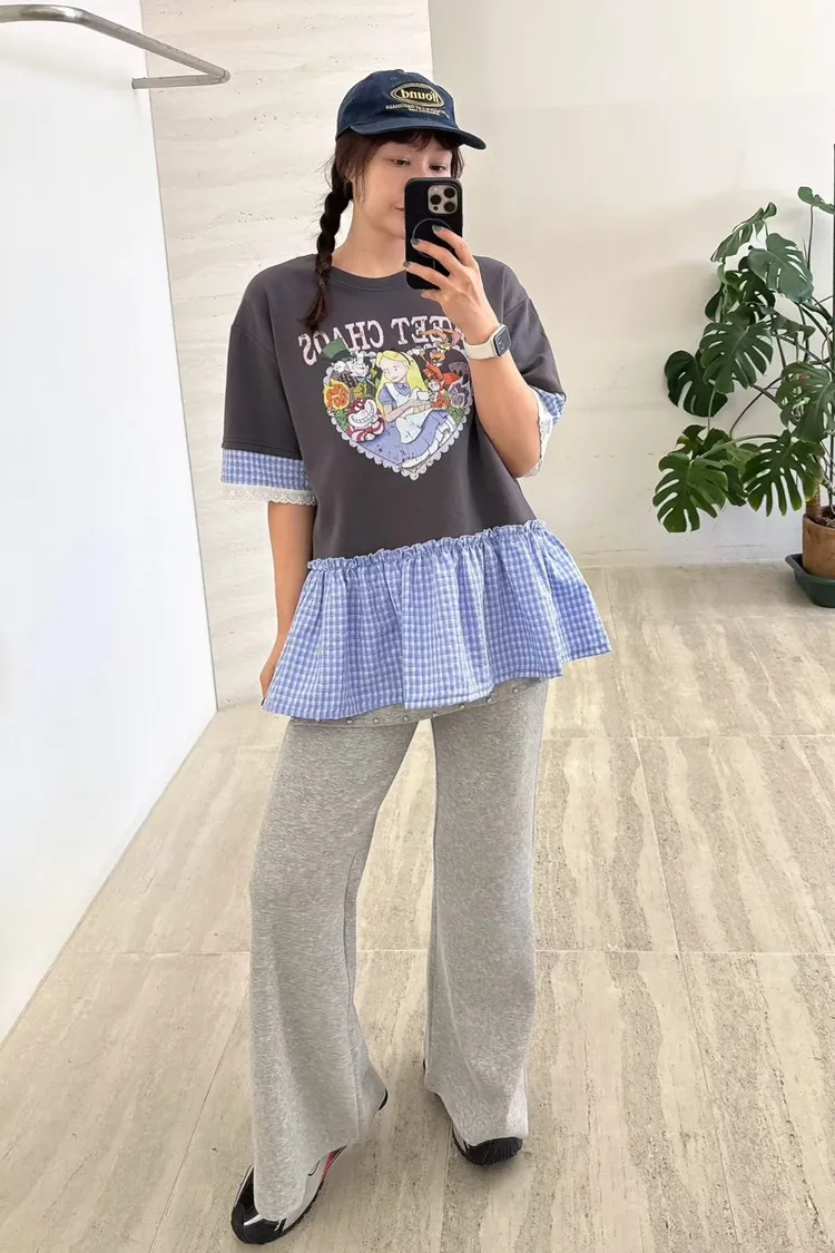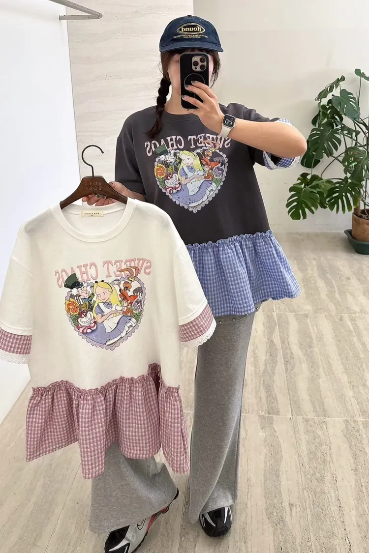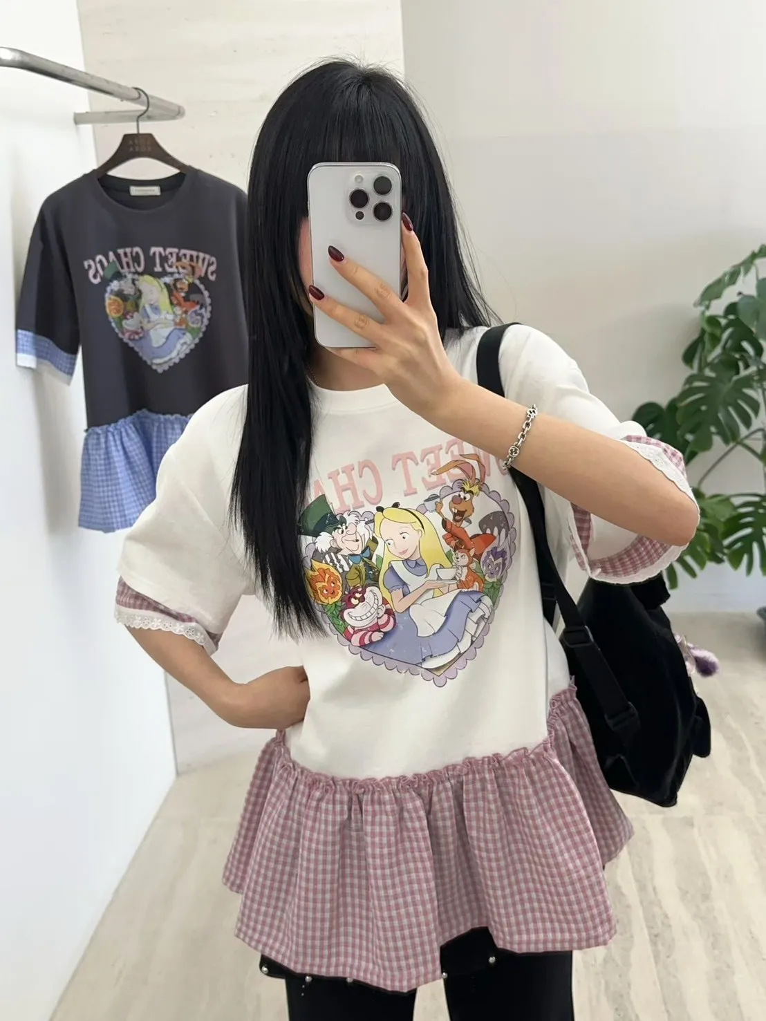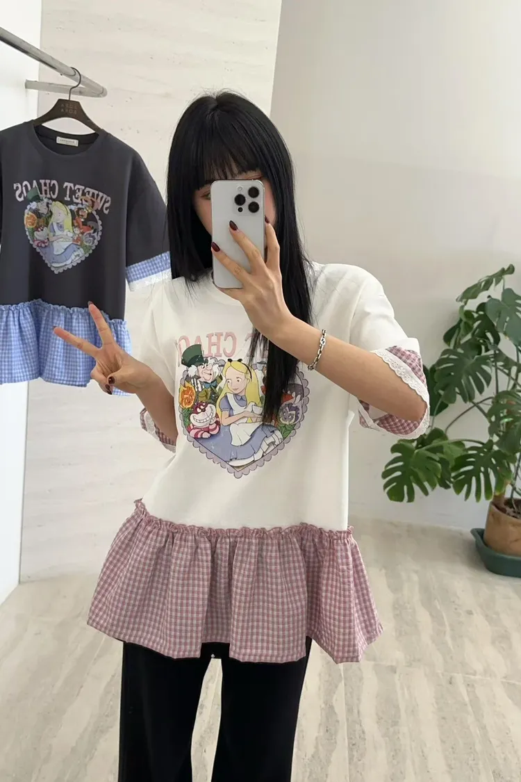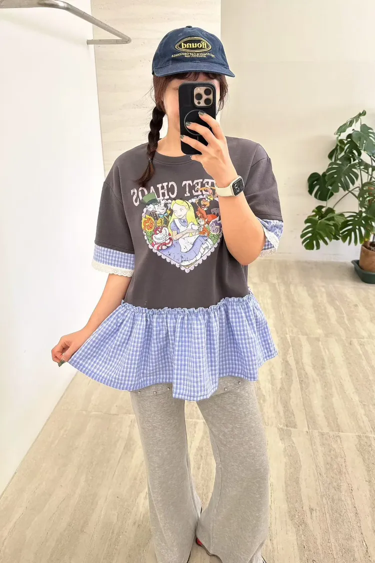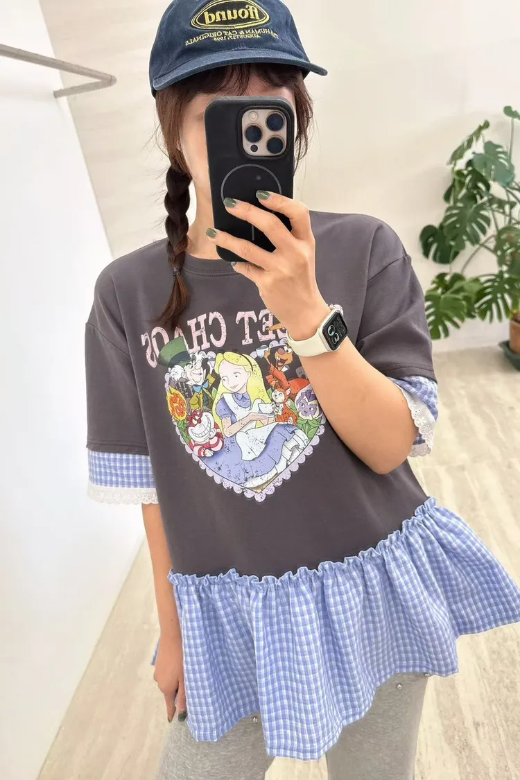 棉 薄款透氣 袖口蕾絲 拼接細格 厚度適中 適合台灣天氣 bora