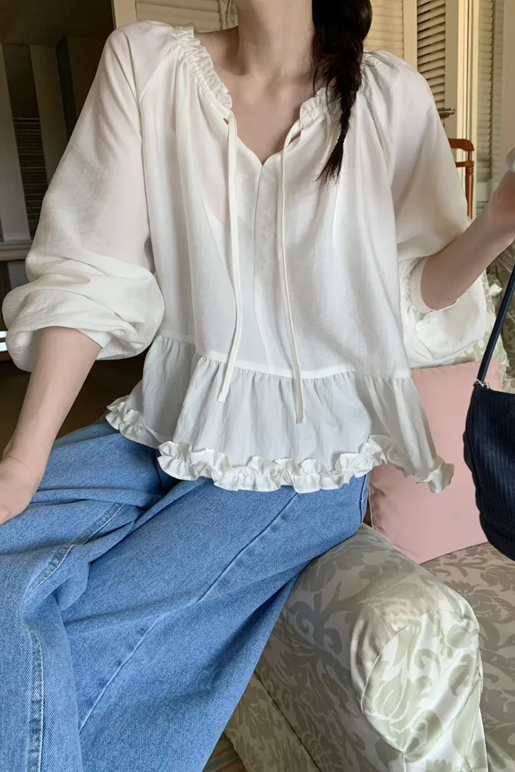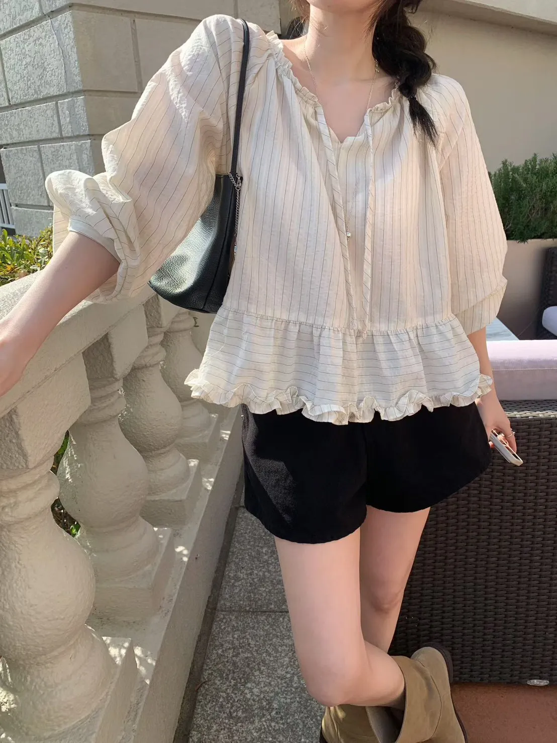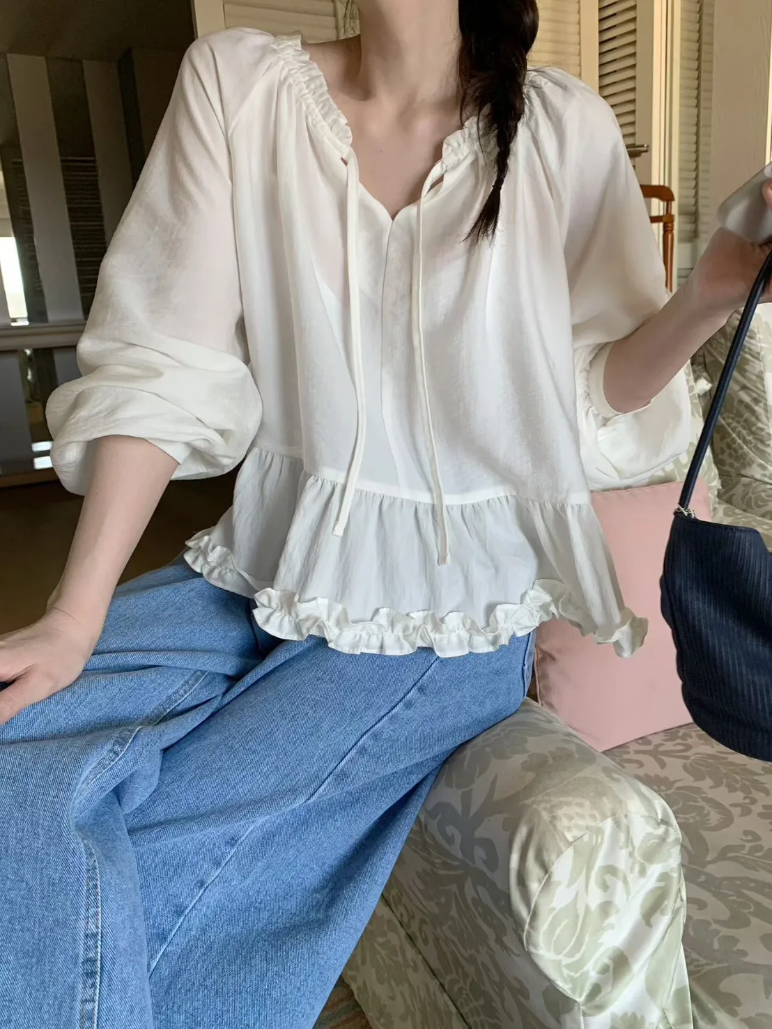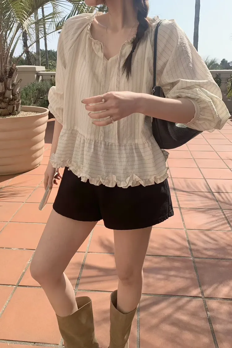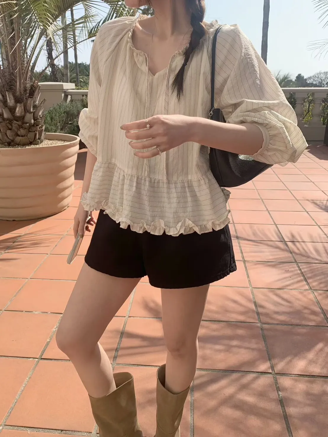 棉+聚酯 薄款輕盈透氣 娃娃裝下擺 荷葉領 胸綁帶 不易皺