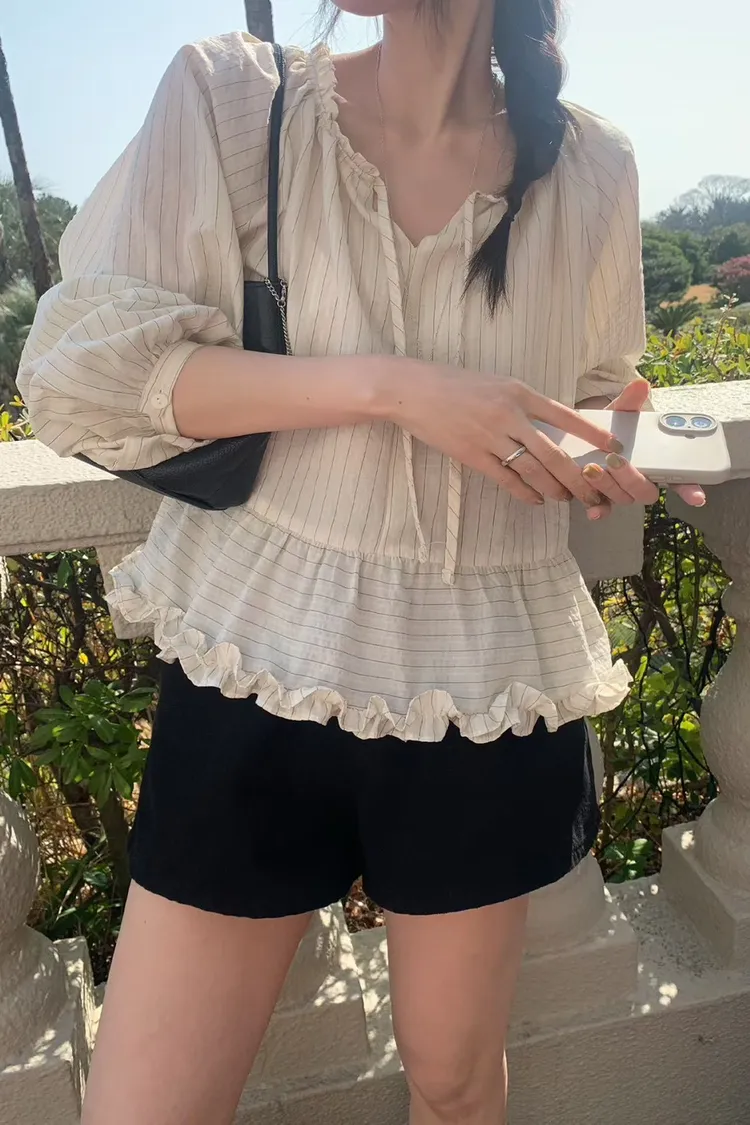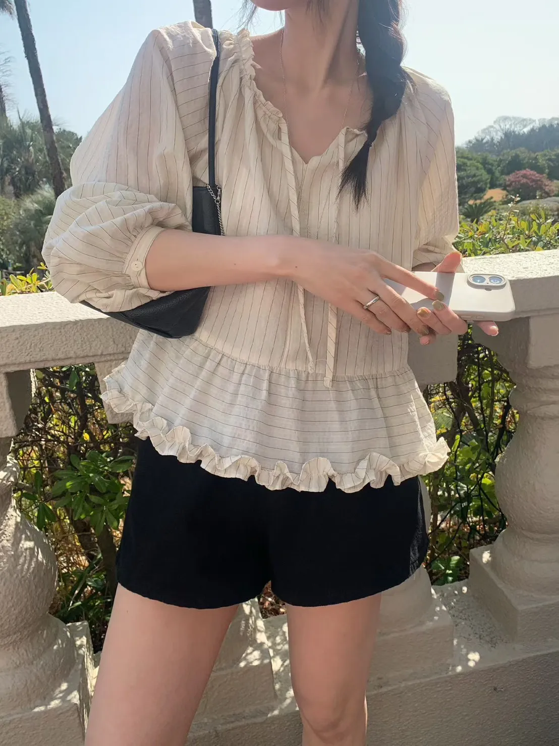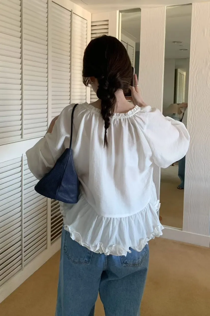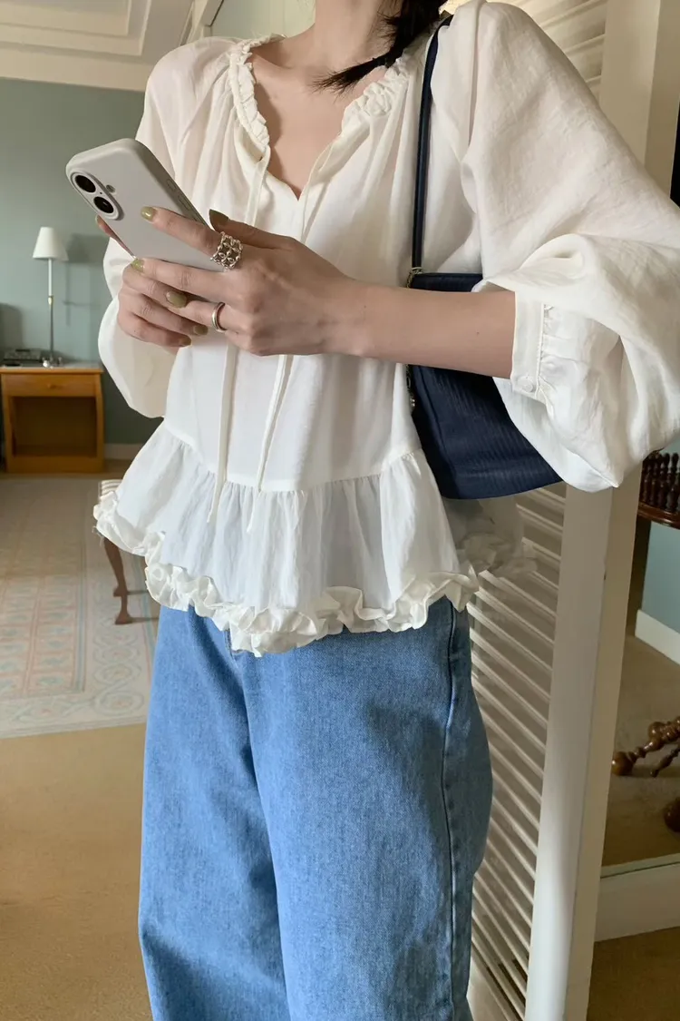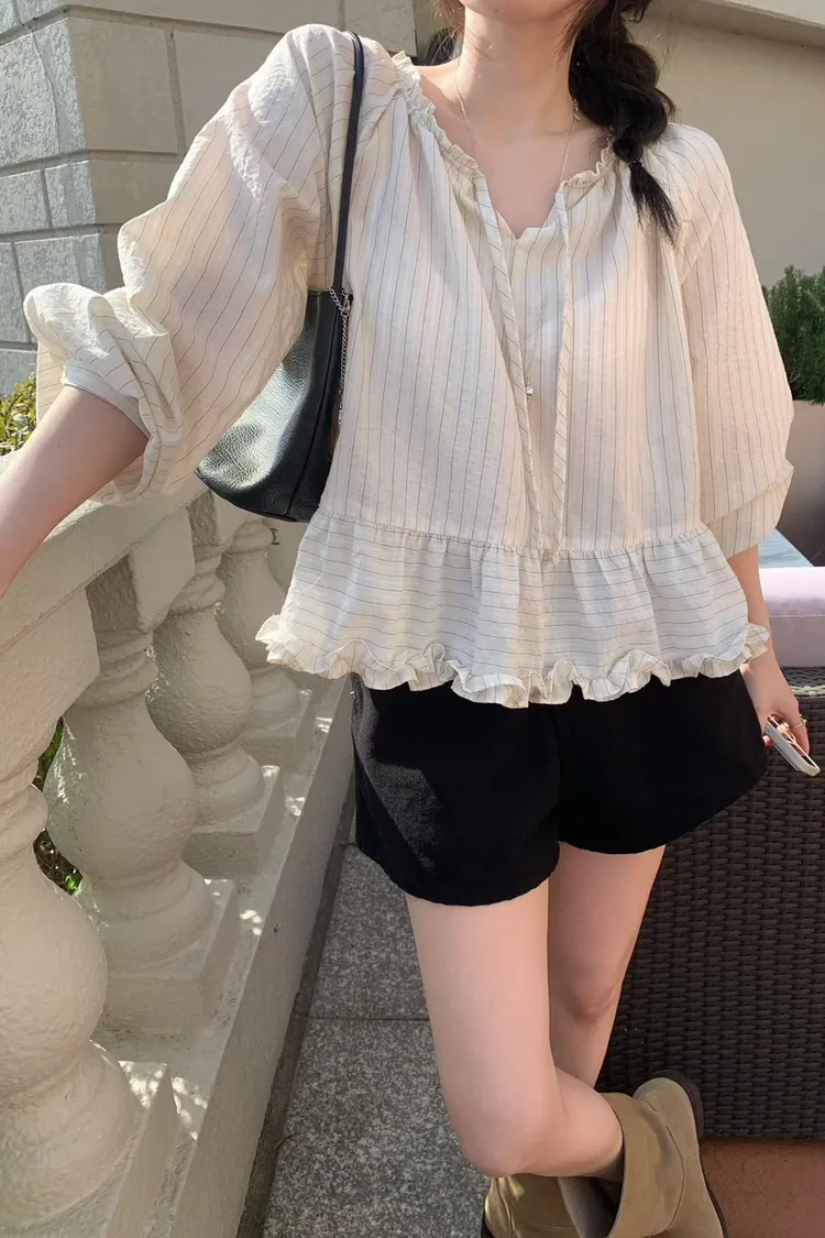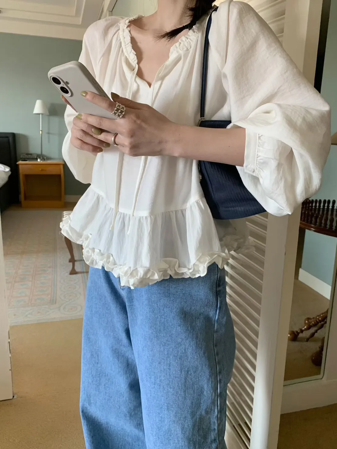 棉+聚酯 薄款輕盈透氣 娃娃裝下擺 荷葉領 胸綁帶 不易皺